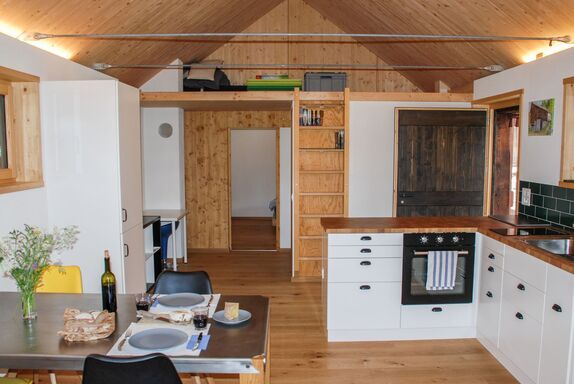 Rustico Rudico, 2-Zimmer-Landhaus 65 m2 im 1. Stock, Nordostlage. Objekt geeignet für 2 Erwachsene + 2 Kinder. Hell, teilweise abgeschrägt, komfortabel und mit viel Holz eingerichtet: offenes grosses Wohn-/Schlafzimmer mit 1 Diwanbett (140 cm, Länge 200 cm), Esstisch und Radio. Ausgang zur Veranda. 1 Doppelzimmer mit 1 Doppelbett (140 cm, Länge 200 cm). Kleine, offene Küche (Backofen, 3 Glaskeramikplatten, Tiefkühler, elektrische Kaffeemaschine, Kapseln für die Kaffeemaschine (Nespresso) extra). Dusche/WC. E-Heizung. Parkettboden. Gartensitzplatz. Sitzplatz. Sehr schöne Panoramasicht auf die Berge, das Tal und die Landschaft. Zur Verfügung: Waschmaschine, Kinderhochstuhl, Babybett bis 2 Jahre (extra), Haartrockner. Bitte beachten: Nichtraucher-Haus. Maximal 1 Haustier/Hund erlaubt. Feuerlöscher. NL-