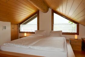 Rustico Cleo, 4-Zimmer-Haus. Teilweise abgeschrägt, komfortabel und rustikal eingerichtet: offenes Esszimmer mit offenem Kamin und Esstisch. Ausgang zum Garten. Offene Küche (Geschirrspüler, 4 Glaskeramikplatten, Toaster, Wasserkocher, Mikrowelle, elektrische Kaffeemaschine, Kapseln für die Kaffeemaschine (Nespresso) extra, Racletteofen, Fondue Set (Chinoise, Käse)). Dusche/WC. E-Heizung, Holzheizung. Unteres Geschoss: Wohnzimmer mit Sat-TV und Flachbildschirm. Obergeschoss: 2 abgeschrägte Doppelzimmer, jedes Zimmer mit 1 Doppelbett (1 x 160 cm, Länge 200 cm). Terrassenmöbel, Gartengrill (mobil), Liegestühle (1), Sitzplatz. Sehr schöne Sicht auf die Berge, das Tal und die Landschaft. Zur Verfügung: Waschmaschine, Wäschetrockner, Kinderhochstuhl, Babybett bis 2 Jahre (extra), Haartrockner. Bitte beachten: geeignet für Familien. Nichtraucher-Unterkunft. 1 kleines Haustier/Hund erlaubt. Feuerlöscher. NL-
