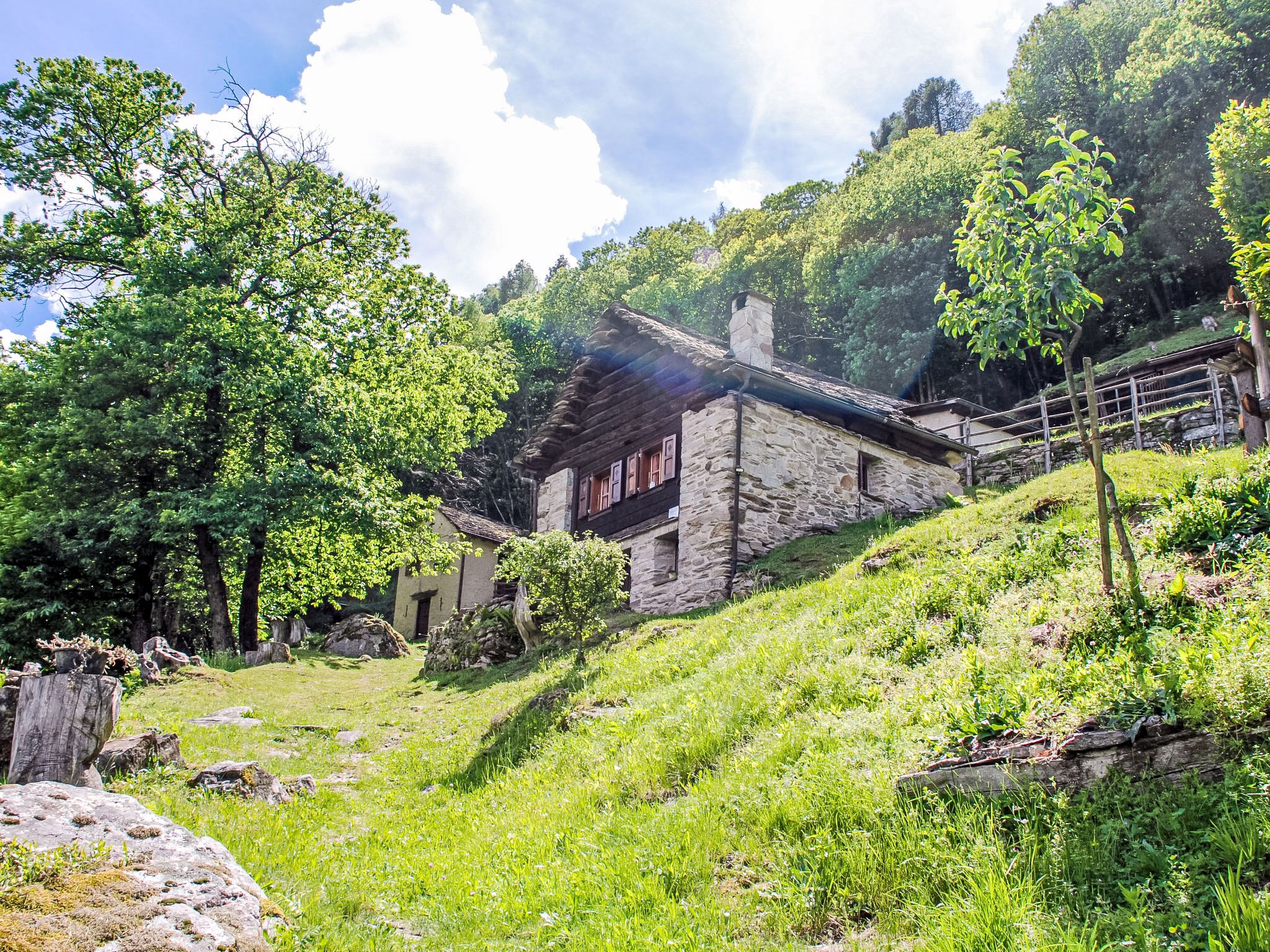 Semione 5 km von Malvaglia: Kleines, gemütliches Einfamilienhaus Rustico Fey, 700 m.ü.M., renoviert im Jahre 2017, umgeben von Bäumen, Wiesen und Feldern. Oberhalb von Semione, in einem Weiler mit 4 Häusern, im Bezirk Valle di Blenio, ruhige, sonnige, erhöhte Lage, 10 m vom Waldrand, im Grünen. Zur Mitbenutzung: naturbelassenes Grundstück mit Rasen. Zur Alleinbenutzung: Sitzplatz. Im Hause: Einstellraum für Fahrräder. 150 m lange Zufahrt bis zum Haus (Bergstrasse). 150 m Fussweg bis zum Haus. Öffentliche Parkplätze 150 m auf der Strasse. Supermarkt 5 km, Restaurant 2 km, Bäckerei 5 km, Bushaltestelle Semione Cantonetto bus 132 3.8 km, Bahnstation Biasca 8 km. Wanderwege ab Haus 1 m, Luftseilbahn 6 km. Nahe gelegene Sehenswürdigkeiten: Museo della Valle di Blenio, Castelli di Bellinzona (UNESCO), Castello di Seravalle, Navone, Parco Tamaro, Splash & Spa Rivera, Ascona, Locarno, Ponte Tibetano, Monte Carasso. Bekannte Seen in der Umgebung sind gut erreichbar: Lago di Luzzone, Lago Maggiore, Lago di Lugano, Lago di Como. Wandergebiete: Nara, Val Malvaglia, Pian d'Alpe, Pizzo Matro, Campo Blenio, Greina, Lucomagno. Bitte beachten: Fahrzeug empfohlen. Babyausstattung auf Anfrage (extra). Tiere in der Umgebung.