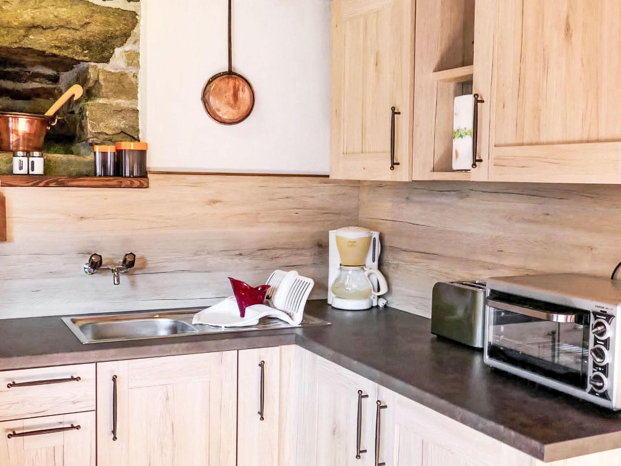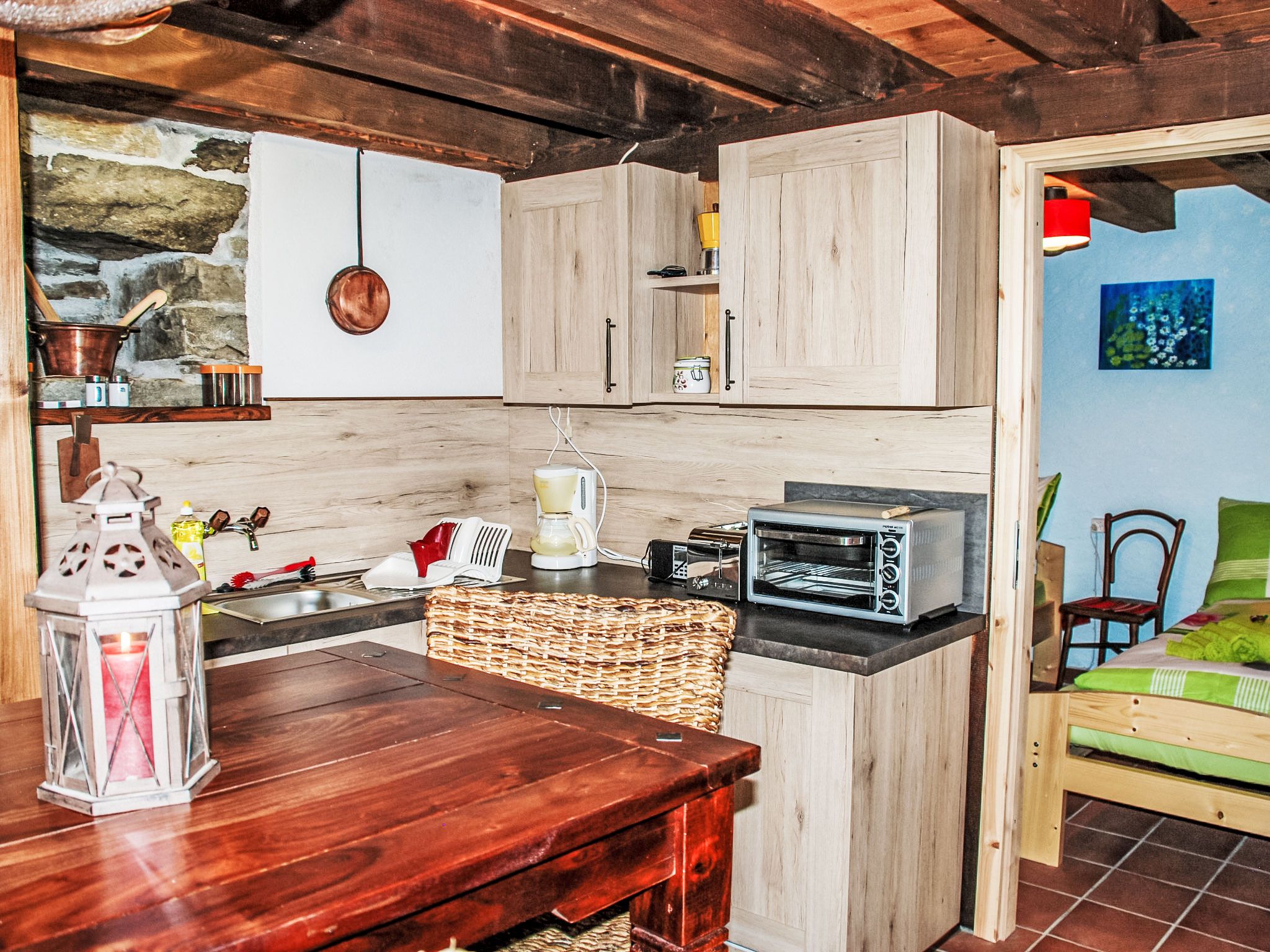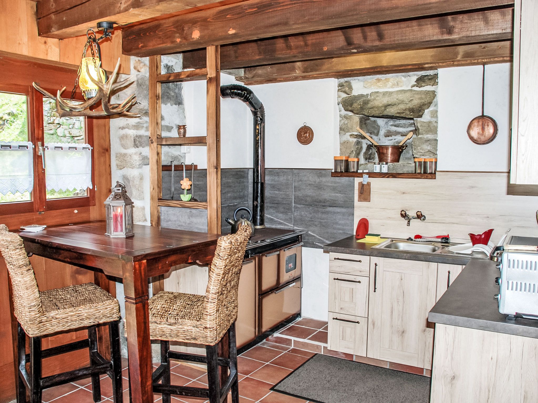 Rustico Fey, 2-Zimmer-Landhaus 50 m2 auf 2 Stockwerken, Südlage. Komfortabel und gemütlich eingerichtet: offenes Wohn-/Esszimmer mit offenem Kamin, Esstisch und TV (Flachbildschirm), Radio. 1 Zimmer mit 2 Betten (90 cm, Länge 200 cm). Offene Küche (Mini-Backofen, Gasherd, 3 Flammen, Toaster, elektrische Kaffeemaschine) mit Bar und Holzofen. Ausgang zum Gartensitzplatz. Unteres Geschoss: (steile Treppe). Dusche/WC. Terrassenmöbel, Gartengrill (mobil), Liegestühle (2). Herrliche Panoramasicht auf die Berge, das Tal und die Landschaft. Zur Verfügung: Kinderhochstuhl, Babybett bis 2 Jahre (extra), Haartrockner. Bitte beachten: Nichtraucher-Haus. Maximal 1 kleines Haustier/Hund erlaubt. Feuerlöscher. NL-