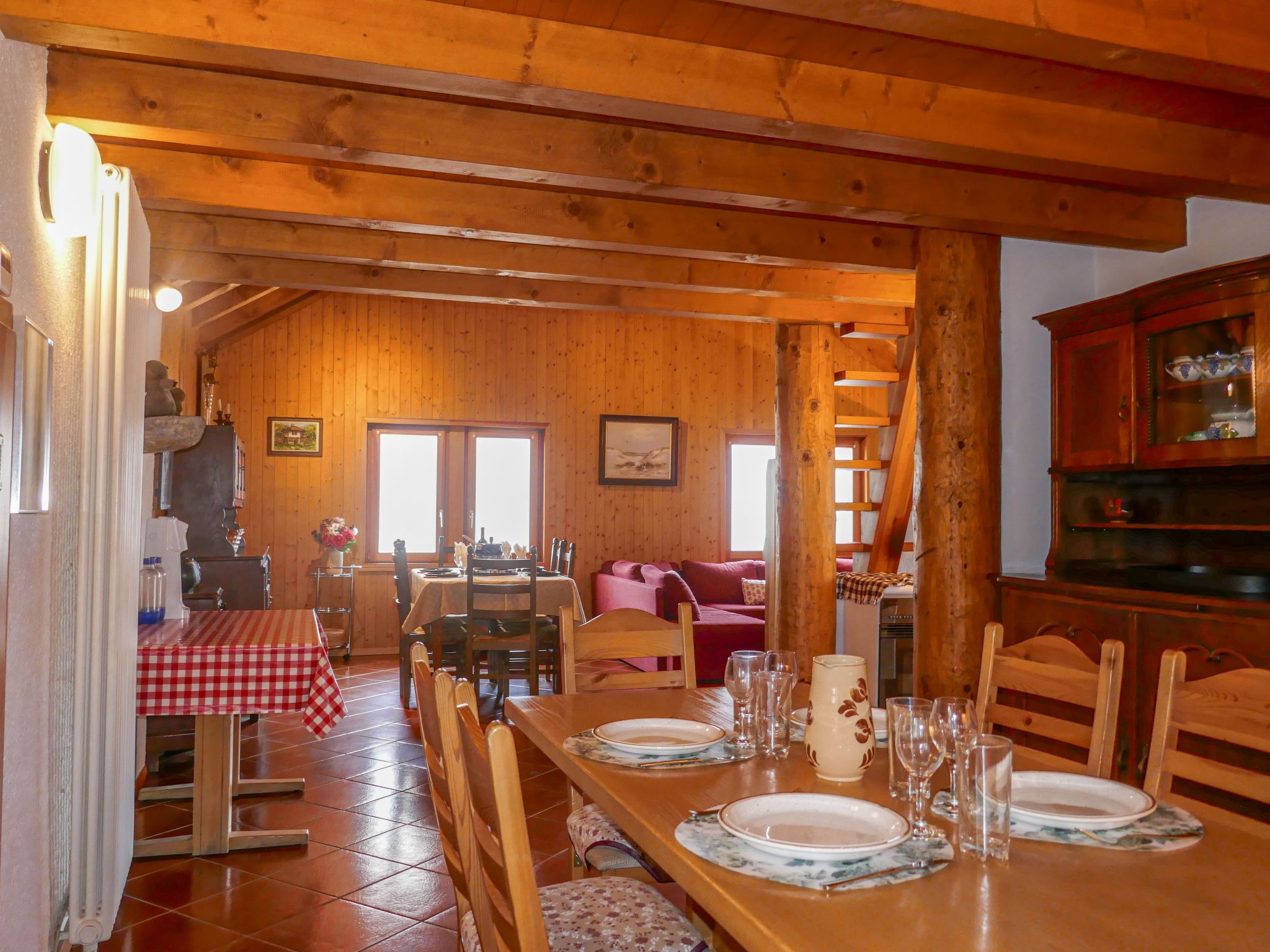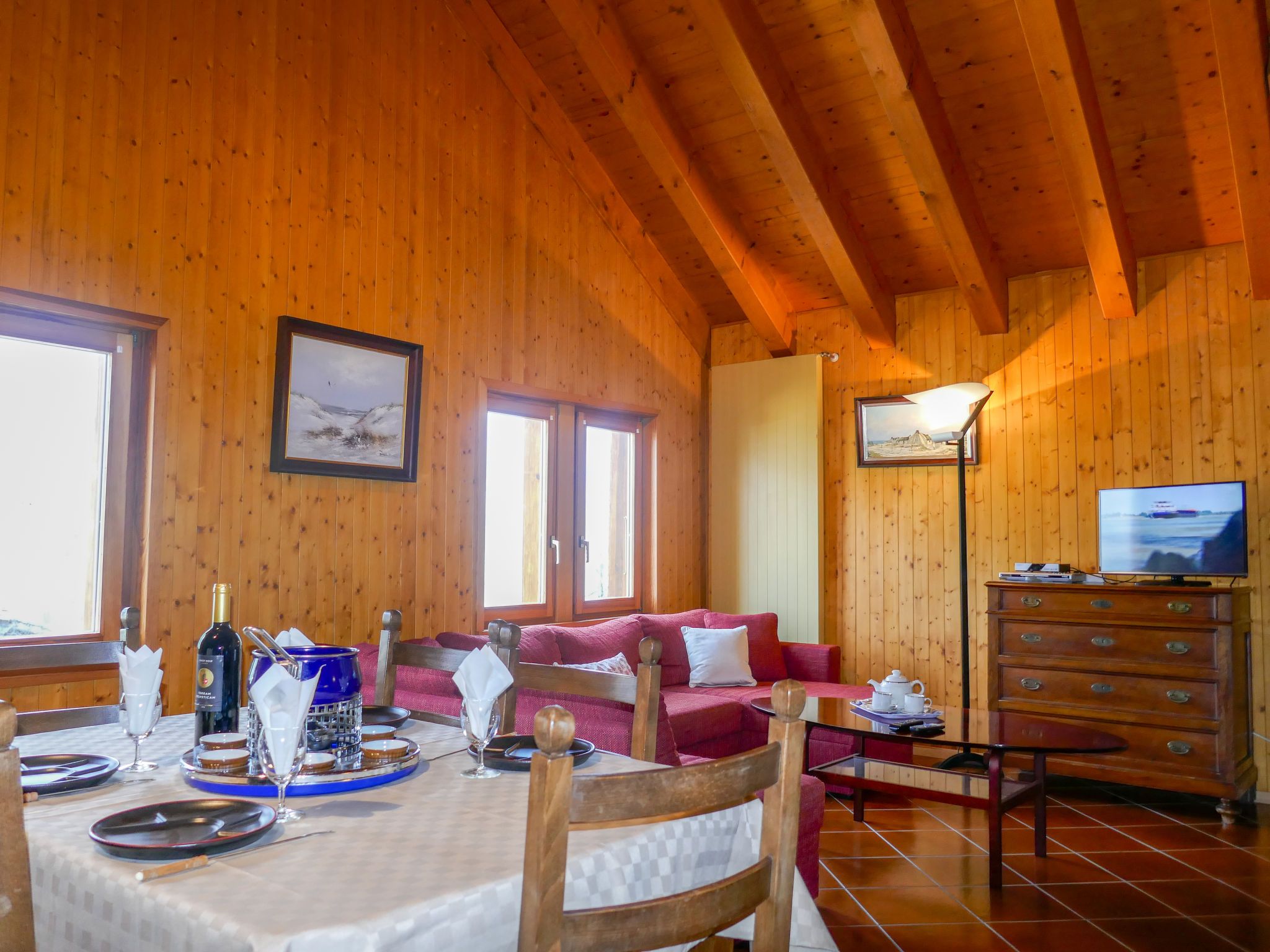 Mona, 4-Zimmer-Haus 100 m2 auf 3 Stockwerken. Geräumig, teilweise abgeschrägt, sehr komfortabel und gemütlich eingerichtet: offenes grosses Wohnzimmer mit offenem Kamin, Esstisch, Sat-TV, Flachbildschirm und Radio. Grosse, offene Küche (Backofen, Geschirrspüler, 3 Glaskeramikplatten, Mikrowelle, elektrische Kaffeemaschine, Kapseln für die Kaffeemaschine (delizia) extra, Racletteofen, Fondue Set (Chinoise, Käse)) mit Esstisch, E-Heizung und G-Heizung. Ausgang Pergola. Dusche/WC. Unteres Geschoss: 1 Zimmer mit 1 Doppelbett. 2 Zimmer, jedes Zimmer mit 1 x 2 Etagenbetten. Dusche/WC. Grosse Terrasse 66 m2, Südlage. Terrassenmöbel, Balkonmöbel, Gartengrill, Liegestühle (4), Abstellkammer. Schöne Sicht auf die Berge und die Landschaft. Zur Verfügung: Kinderhochstuhl, Babybett bis 3 Jahre (extra), Haartrockner, Holz (extra). Internet (WLAN, extra). Bitte beachten: geeignet für Familien. Nichtraucher-Haus. Maximal 2 Haustiere/Hunde erlaubt. NL-
