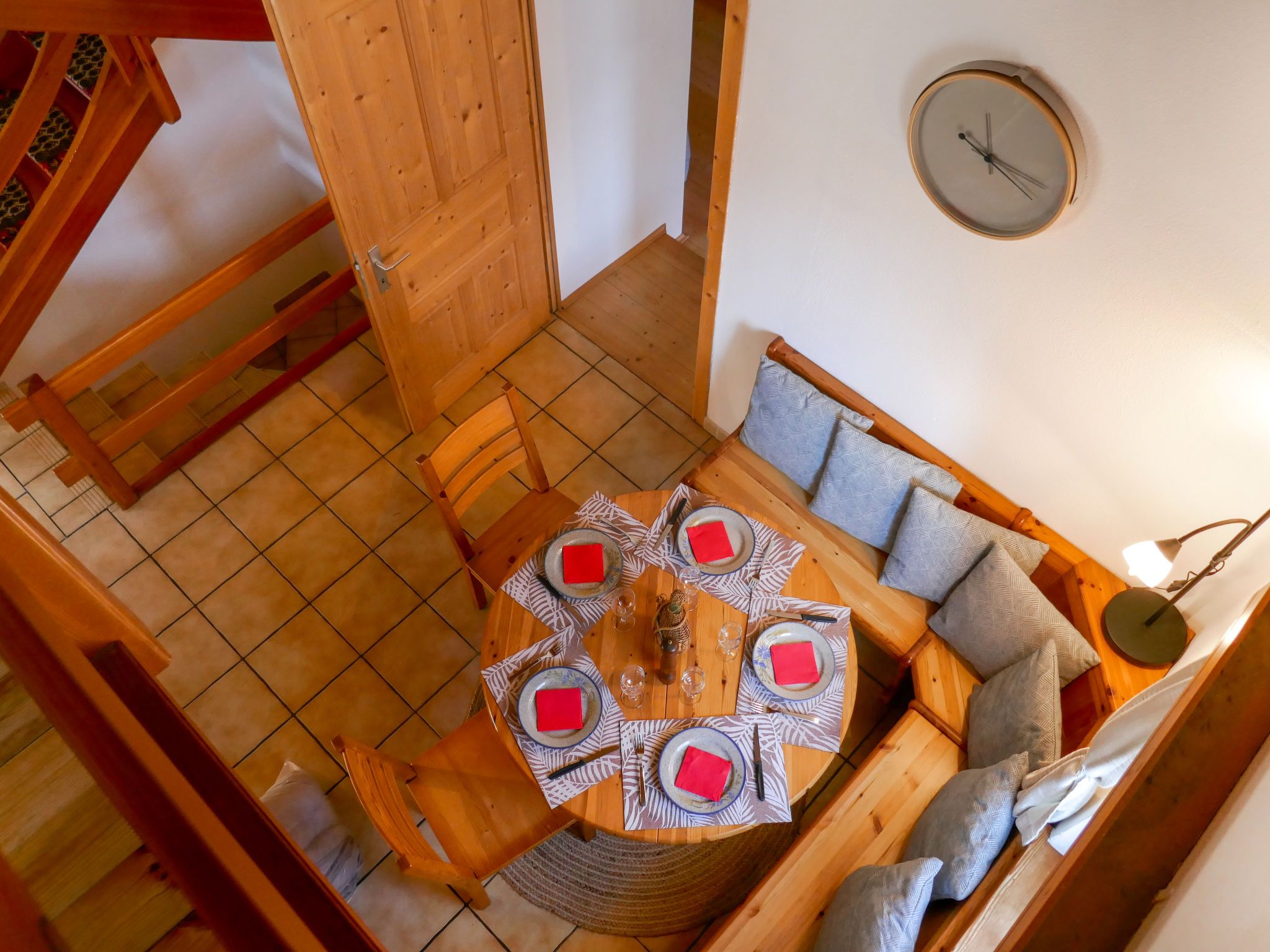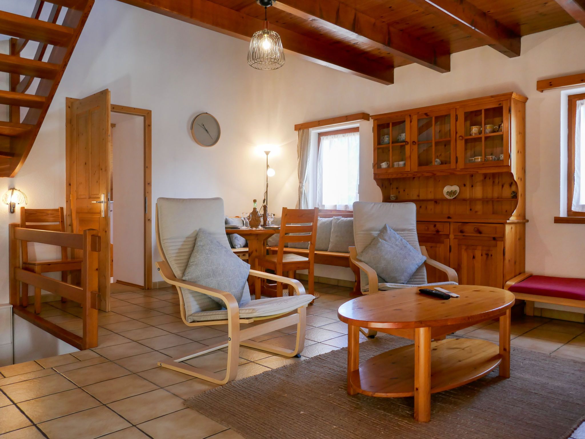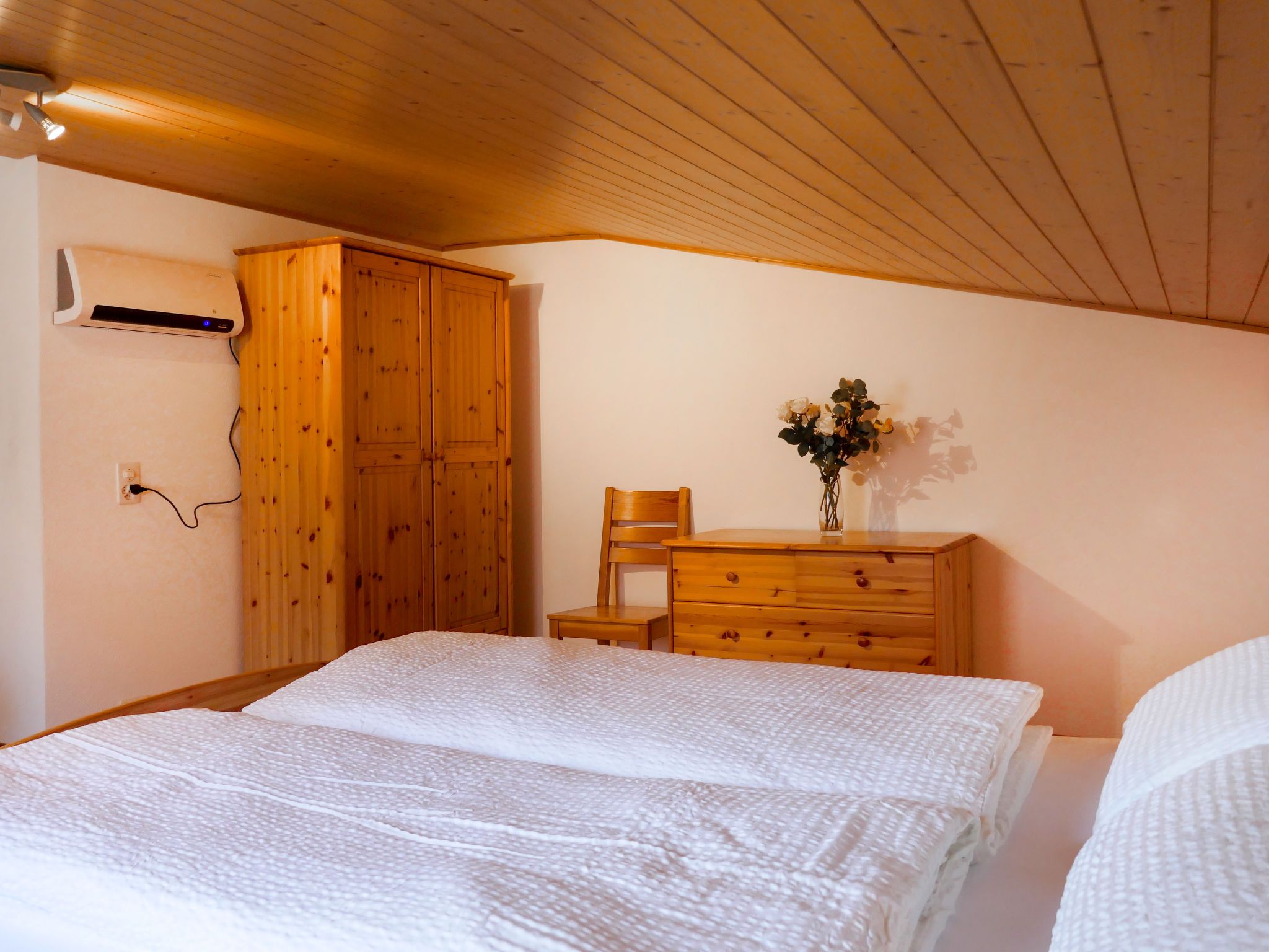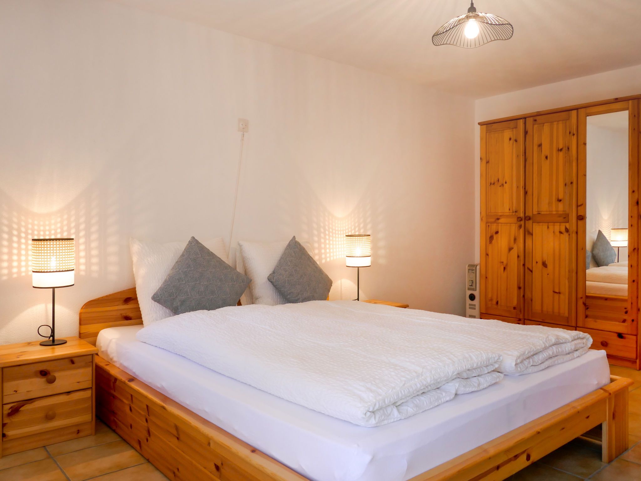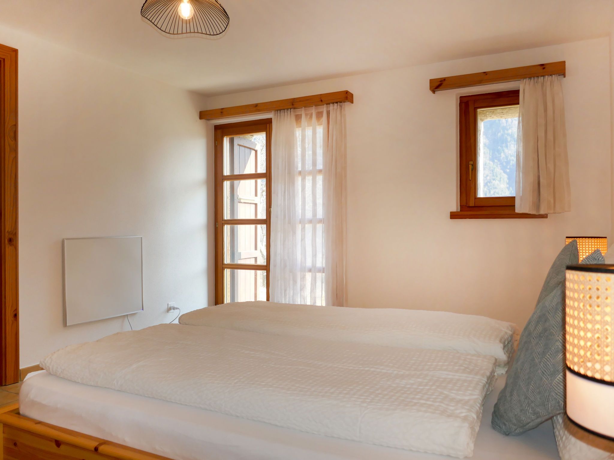 Simano, 4-Zimmer-Haus 120 m2. Geräumig, teilweise abgeschrägt, komfortabel und rustikal eingerichtet: offenes Wohn-/Esszimmer mit Essecke, TV und Holzofen. 1 Zimmer mit 1 Doppelbett (1 x 160 cm, Länge 200 cm). Offene Küche (Backofen, Geschirrspüler, 4 Glaskeramikplatten, Toaster, Wasserkocher, Tiefkühler, elektrische Kaffeemaschine, Racletteofen, Fondue Set (Käse)). Dusche/WC. E-Heizung, Holzheizung. Unteres Geschoss: 1 Zimmer mit 1 Doppelbett (1 x 160 cm, Länge 200 cm), Bad/WC. Ausgang zum Garten. Obergeschoss: abgeschrägtes, offenes Wohnzimmer mit TV. 1 abgeschrägtes Zimmer mit 2 Betten (90 cm, Länge 200 cm). Garten. Gartengrill, Liegestühle. Sehr schöne Panoramasicht auf die Berge und das Tal. Zur Verfügung: Waschmaschine, Wäschetrockner, Kinderhochstuhl, Babybett bis 2 Jahre (extra), Haartrockner. Internet (WLAN, gratis). Bitte beachten: Nichtraucher-Haus. Maximal 1 Haustier/Hund erlaubt. NL-