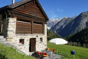 Rustico Enrico, 2-Zimmer-Haus auf 2 Stockwerken. Rustikal und gemütlich eingerichtet: offenes Wohn-/Esszimmer mit 1 Diwanbett, Esstisch und Holzofen. Offene Küche (Backofen, 4 Glaskeramikplatten, Toaster, Wasserkocher, Fondue Set (Käse)). Unteres Geschoss: 1 Doppelzimmer mit 1 Bett (90 cm, Länge 190 cm), 1 Doppelbett (1 x 160 cm, Länge 200 cm). Ausgang zum Garten, zum Gartensitzplatz. Dusche/WC. E-Heizung, Holzheizung, Boiler (200 Liter). Natursteinboden. Terrassenmöbel, Gartengrill (mobil), Sitzplatz. Herrliche Panoramasicht auf die Berge, die Landschaft und Stausee. Zur Verfügung: Waschmaschine, Kinderhochstuhl, Babybett bis 2 Jahre (extra), Haartrockner. Internet (Wireless LAN, extra). Bitte beachten: Nichtraucher-Haus. Maximal 2 Haustiere/Hunde erlaubt. Feuerlöscher. NL-