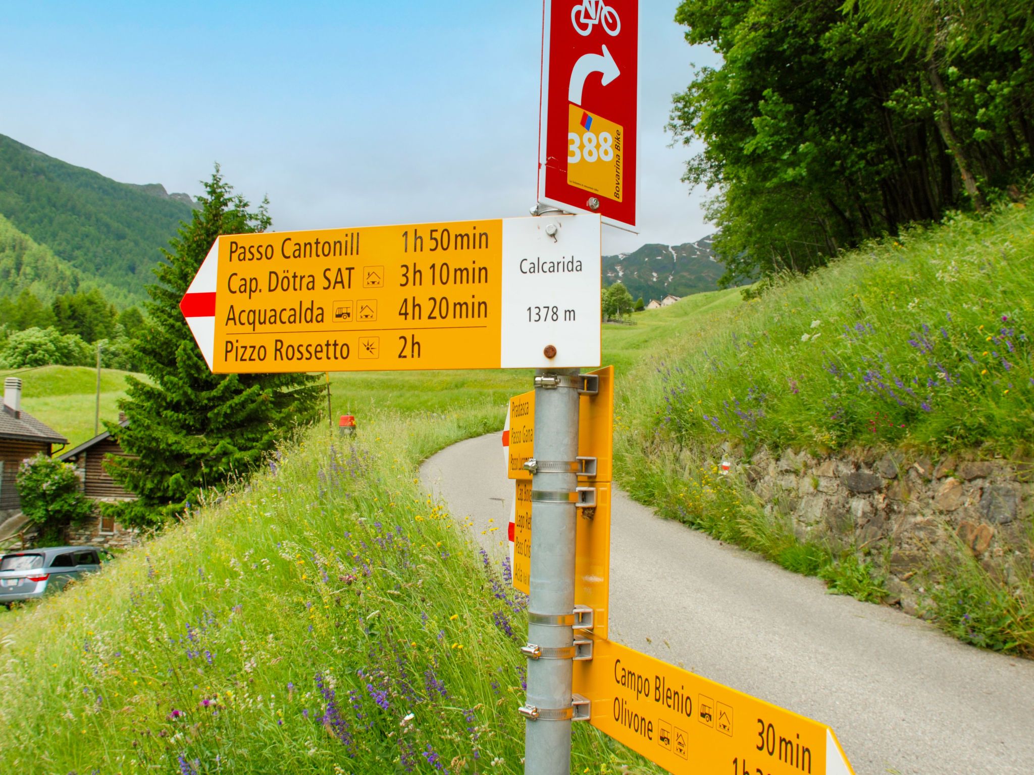 Calcarida Campo Blenio 24 km von Malvaglia: Gemütliches, rustikales, freistehendes Einfamilienhaus Rustico Enrico, 1'400 m.ü.M., auf 2 Stockwerken, umgeben von Wiesen. Im Weiler Calcarida, im Bezirk Valle di Blenio, ruhige, sonnige, erhöhte Lage, 100 m vom Waldrand, im Grünen. Zur Alleinbenutzung: naturbelassenes Grundstück, Garten (nicht eingezäunt), Wiese. Sitzplatz, Gartenmöbel. Schmale Zufahrt bis zum Haus (1.8 km Bergstrasse). 60 m Fussweg bis zum Haus. Parkplatz beim Haus, im Winter 60 m. Supermarkt 6.5 km, Restaurant 3 km, Bäckerei 6.5 km, Bushaltestelle Linie 135 1.8 km, Bahnstation Biasca SBB-CFF 31 km. Wanderwege ab Haus 10 m. Nahe gelegene Sehenswürdigkeiten: Castelli di Bellinzona (UNESCO), Mercato 49 km, Castello di Serravalle 20 km, Museo della Valle di Blenio 12.3 km, Archivio Fotografico Donetta 19.2 km, Chiesa di S. Ambrogio, Negrentino 19 km, Splash & SPA 60.5 km. Bekannte Seen in der Umgebung sind gut erreichbar: Lago di Luzzone, Lago Retico, Lago Ritom, Lago Maggiore (Locarno), Lago di Lugano. Wandergebiete: Greina, Pizzo Rossetto, Cab. CAS Boverin, Cab. CAS Scaletta, Alpe Predasca, Valle di Blenio, Val Malvaglia. Bitte beachten: Fahrzeug empfohlen. Tiere in der Umgebung. ,Kleines, einfaches Rustico für Wander,- und Bike begesteisterte. Herrlicher Blick auf die saftigen grünen Wiesen und Sicht auf die Stauseemauer.