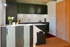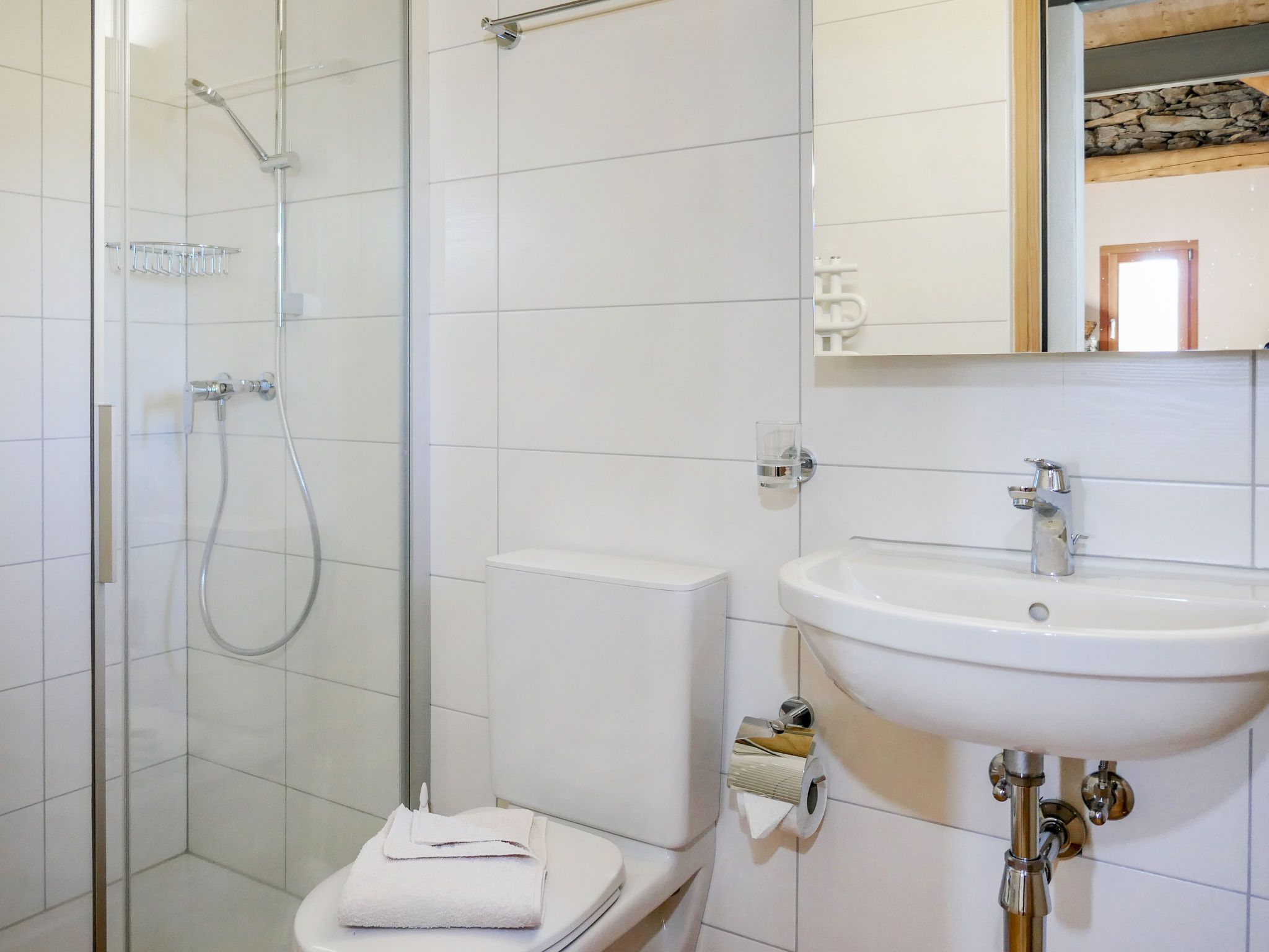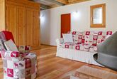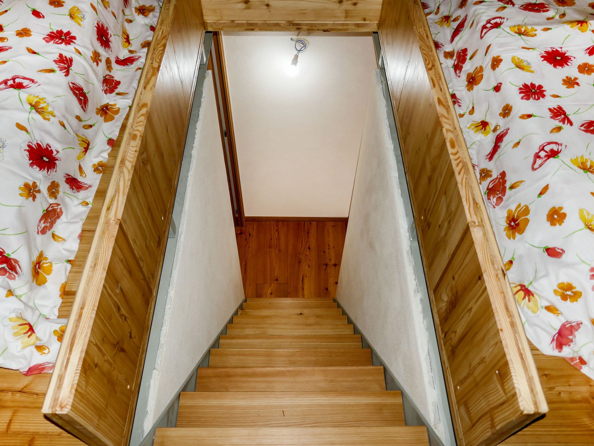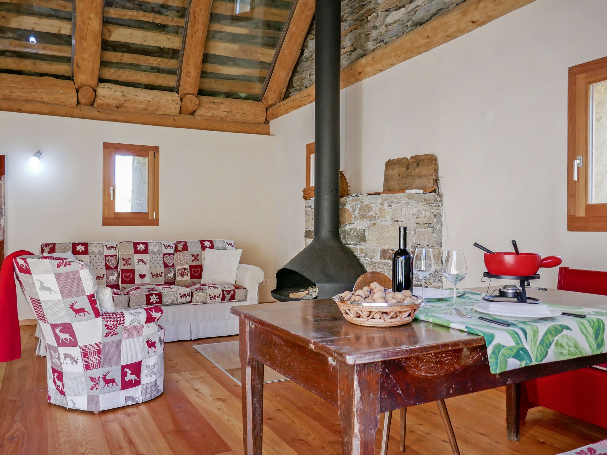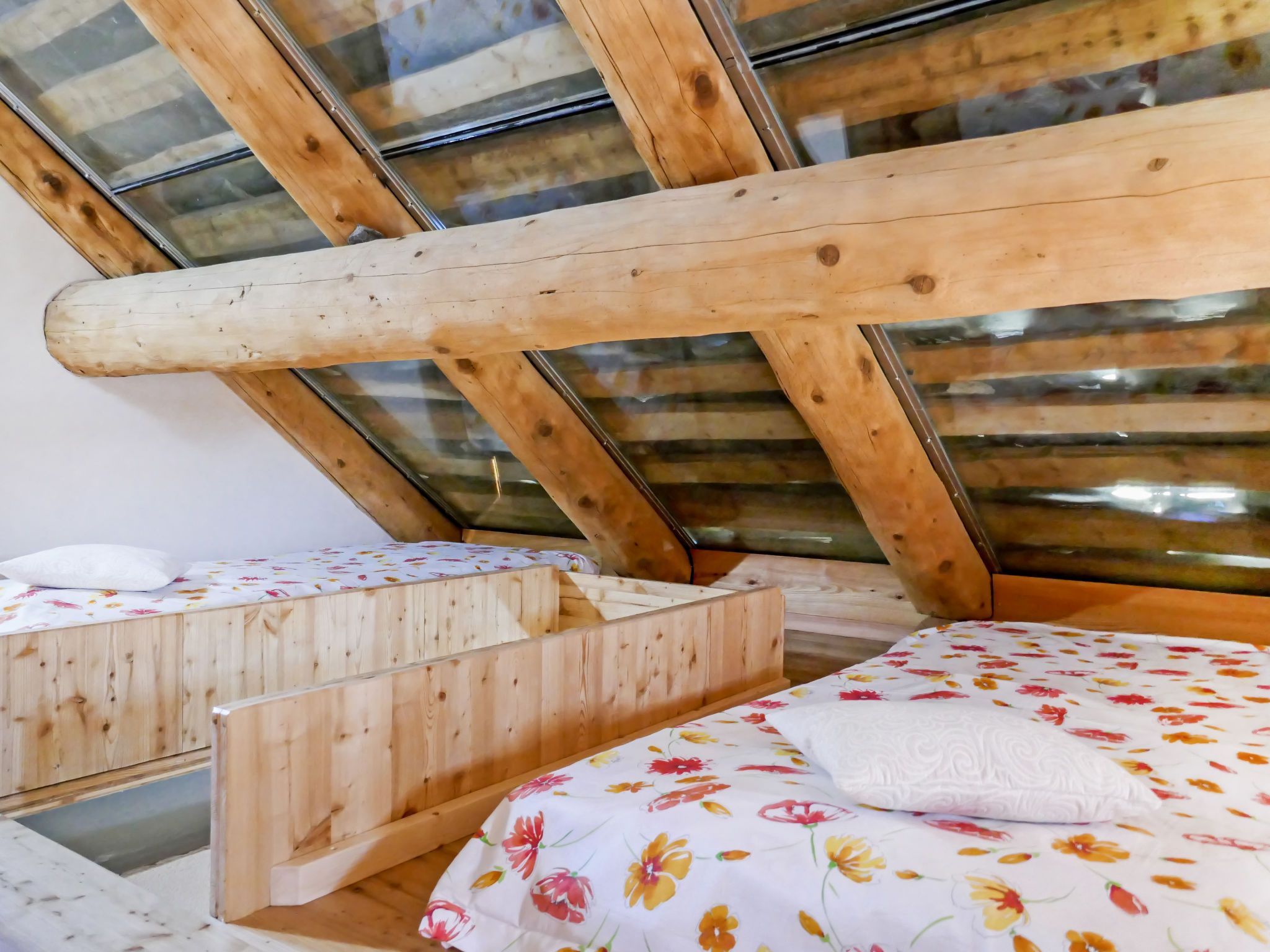 Rustico Andrea, 2-Zimmer-Haus Südlage. Hell, teilweise abgeschrägt, geschmackvoll und gemütlich eingerichtet: offenes Wohn-/Esszimmer mit offenem Kamin, TV und E-Heizung. Ausgang zum Garten. Offene Küche (Backofen, Geschirrspüler, 4 Glaskeramikplatten, Tiefkühler, Racletteofen, Fondue Set (Käse)) mit Bar. Ausgang zur Terrasse. Dusche/WC. Holzheizung. Obergeschoss: (steile Treppe) 1 abgeschrägtes, offenes Zimmer mit 2 Betten (90 cm, Länge 200 cm), 1 Doppelbett (1 x 200 cm, Länge 210 cm). Holzdielenboden. Gartengrill (mobil), Liegestühle (2). Herrliche Panoramasicht auf die Berge und das Tal. Zur Verfügung: Haartrockner. Internet (WLAN). Bitte beachten: Nichtraucher-Haus. Maximal 2 Haustiere/Hunde erlaubt. Feuerlöscher. NL-