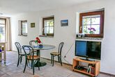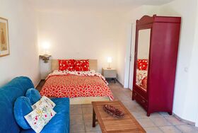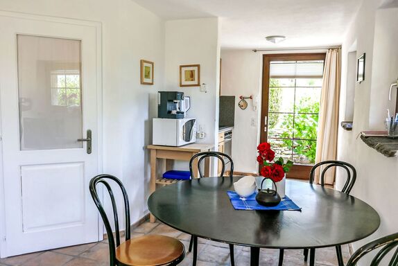 Nelly, 1-Zimmer-Wohnung 28 m2, im Erdgeschoss. Zweckmässig und gemütlich eingerichtet: Wohn-/Schlafzimmer mit 1 Diwanbett und 1 franz. Bett (140 cm, Länge 200 cm), Kabel-TV, Flachbildschirm und Radio. Ausgang zur Terrasse. Offene Küche (Backofen, 4 Glaskeramikplatten, Mikrowelle, Grill, elektrische Kaffeemaschine) mit Esstisch. Dusche/WC. Bodenheizung. Natursteinboden. Terrassenmöbel, Gartengrill (mobil), Liegestühle (2). Sehr schöne Sicht auf die Berge, das Tal und die Landschaft. Zur Verfügung: Kinderhochstuhl, Babybett bis 2 Jahre (extra), Haartrockner. Internet (WLAN, gratis). Parkplatz (überdacht). Bitte beachten: Nichtraucher-Haus. Maximal 1 Haustier/Hund erlaubt. Sep.Eingang. NL-