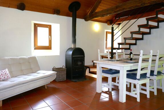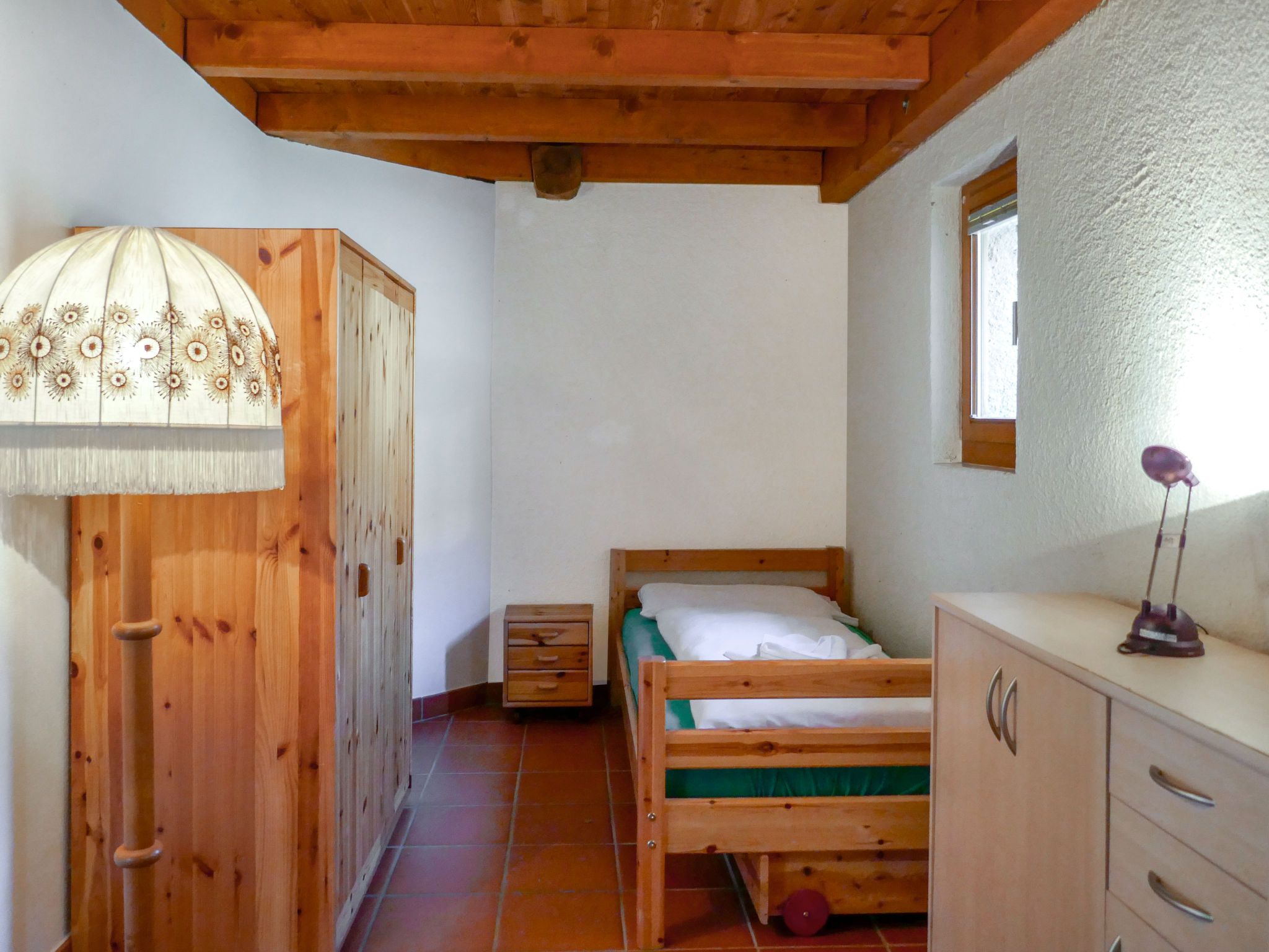 Rustico al Campett, 4-Zimmer-Haus 110 m2 auf 3 Stockwerken. Geräumig, teilweise abgeschrägt, zweckmässig und komfortabel eingerichtet: offenes Wohn-/Esszimmer mit Esstisch, TV, Radio und Holzofen. Ausgang zur Terrasse. 1 Zimmer mit 2 Betten (90 cm, Länge 200 cm). Offene Küche (4 Glaskeramikplatten, Mikrowelle, elektrische Kaffeemaschine, Racletteofen, Fondue Set (Käse)). Unteres Geschoss: 1 Doppelzimmer mit 1 Doppelbett (1 x 160 cm, Länge 200 cm). Ausgang zum Garten. Gepäckraum. Dusche/WC. Obergeschoss: offene Galerie. Terrassenmöbel, Liegestühle. Sehr schöne Sicht auf die Berge, das Tal und die Landschaft. Zur Verfügung: Waschmaschine, Bügeleisen, Kinderhochstuhl, Babybett bis 2 Jahre (extra), Haartrockner. Internet (Wireless LAN, extra). Bitte beachten: geeignet für Familien. Nichtraucher-Haus. Feuerlöscher. NL-