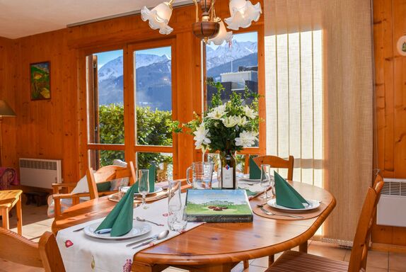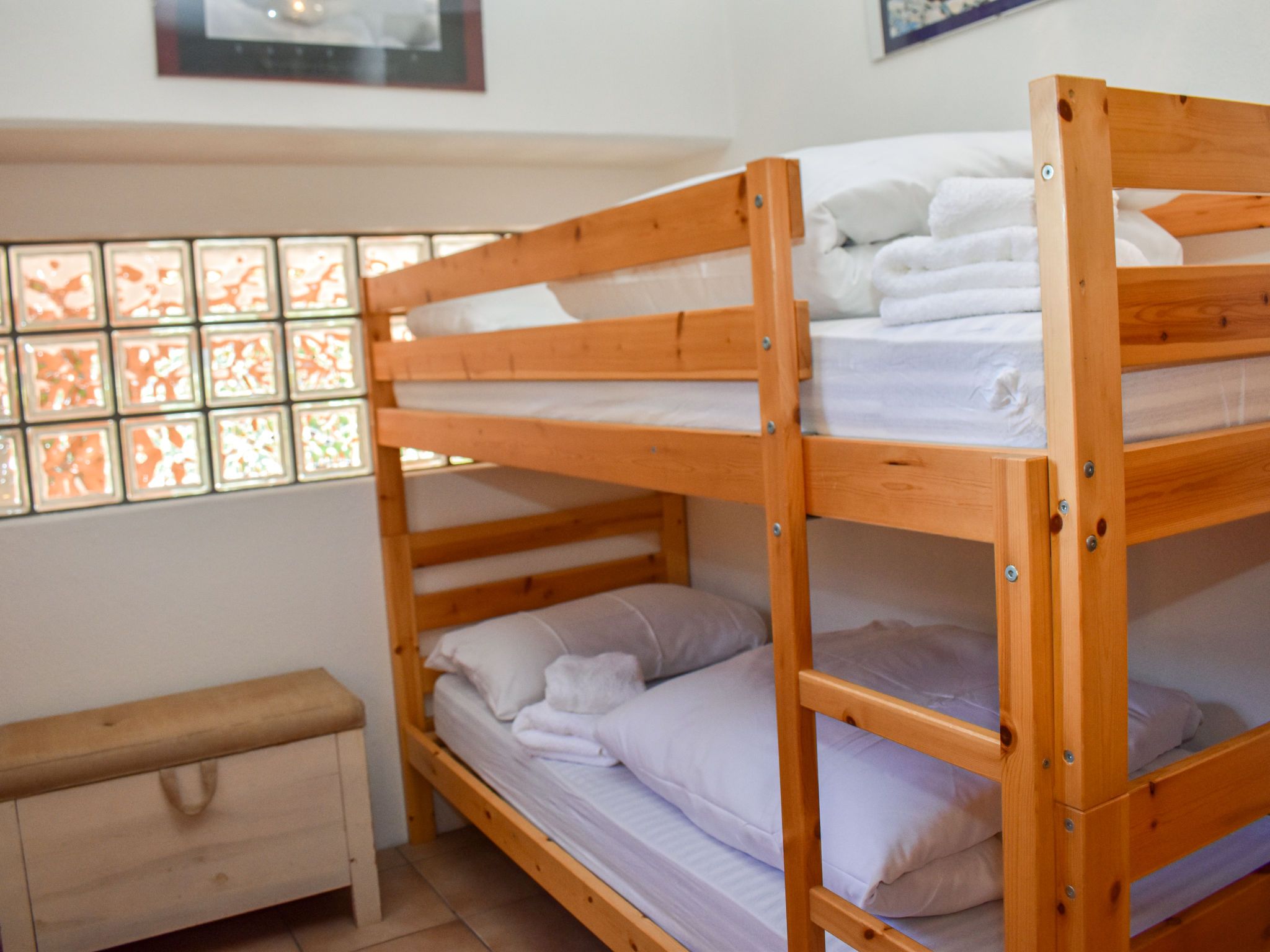 Rüthanet, 3-Zimmer-Wohnung 50 m2 im 1. Stock, Südostlage. Einfach und gemütlich eingerichtet: offenes Wohn-/Esszimmer mit offenem Kamin, Esstisch und TV (Flachbildschirm). Ausgang zum Gartensitzplatz. 1 Doppelzimmer mit 1 Doppelbett (2 x 80 cm, Länge 200 cm). 1 kleines Kinderzimmer mit 1 x 2 Etagenbetten (80 cm, Länge 200 cm). Kleine, offene Küche (4 Kochplatten, Backofen, Toaster, Wasserkocher, elektrische Kaffeemaschine, Kapseln für die Kaffeemaschine (nespresso) extra). Dusche/Bidet/WC. E-Heizung, Holzheizung. Kleiner Gartensitzplatz, Südlage und Ostlage. Terrassenmöbel. Schöne Sicht auf die Berge und die Landschaft. Zur Verfügung: Kinderhochstuhl, Babybett bis 2 Jahre (extra), Haartrockner. Internet (Wireless LAN, gratis). Bitte beachten: Nichtraucher-Unterkunft. NL-