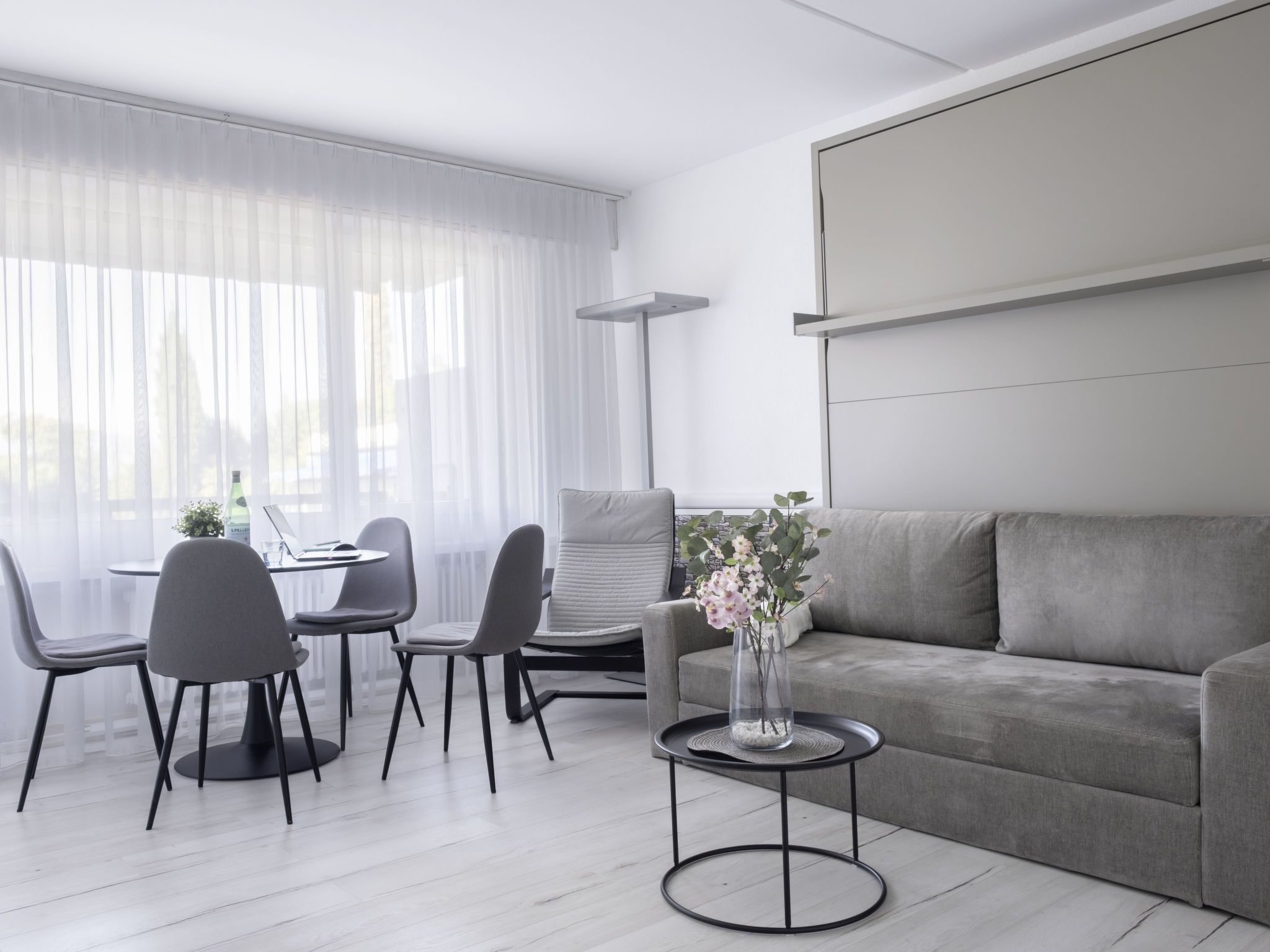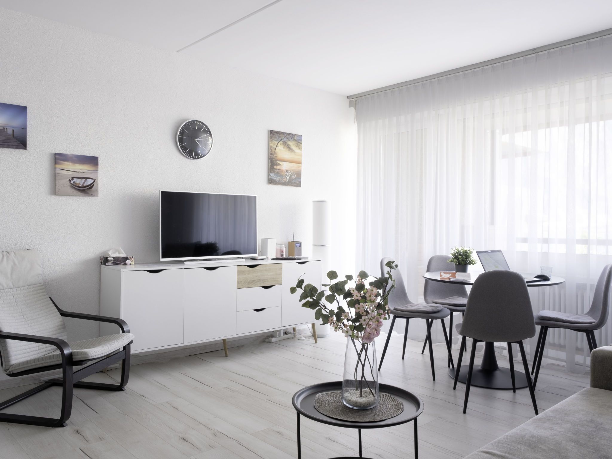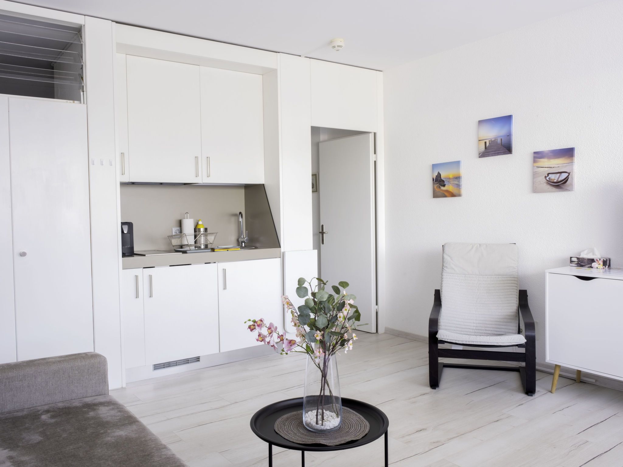 Lakeview App. 214, 2-Zimmer-Wohnung 40 m2 im 2. Stock. Hell, teilweise renoviert im Jahre 2023, komfortabel und modern eingerichtet: Wohn-/Schlafzimmer mit 1 Diwanbett (160 cm, Länge 200 cm), Esstisch, Digital-TV, Flachbildschirm und Klimaanlage. Ausgang zum Balkon. 1 kleines Zimmer, ohne Fenster mit 1 x 1 Etagenbetten (140 cm, Länge 200 cm), Ventilator. Kleine Küche (2 Induktionskochplatten, Toaster, Wasserkocher, Mikrowelle, elektrische Kaffeemaschine, Kapseln für die Kaffeemaschine (DELIZIO) extra, Fondue Set (Käse)). Bad/WC, Doppelwaschbecken. Heizung. Grosser Balkon, Nordlage und Westlage. Balkonmöbel. Schöne Sicht auf den See, die Berge und die Landschaft. Zur Verfügung: Kinderhochstuhl, Babybett bis 2 Jahre (extra), Haartrockner. Internet (Wireless LAN, gratis). Bitte beachten: geeignet für Familien. Nichtraucher-Unterkunft. Achtung: Fenster im Schlafzimmer zum Lüftugsschacht. NL-