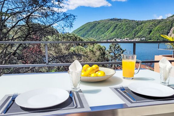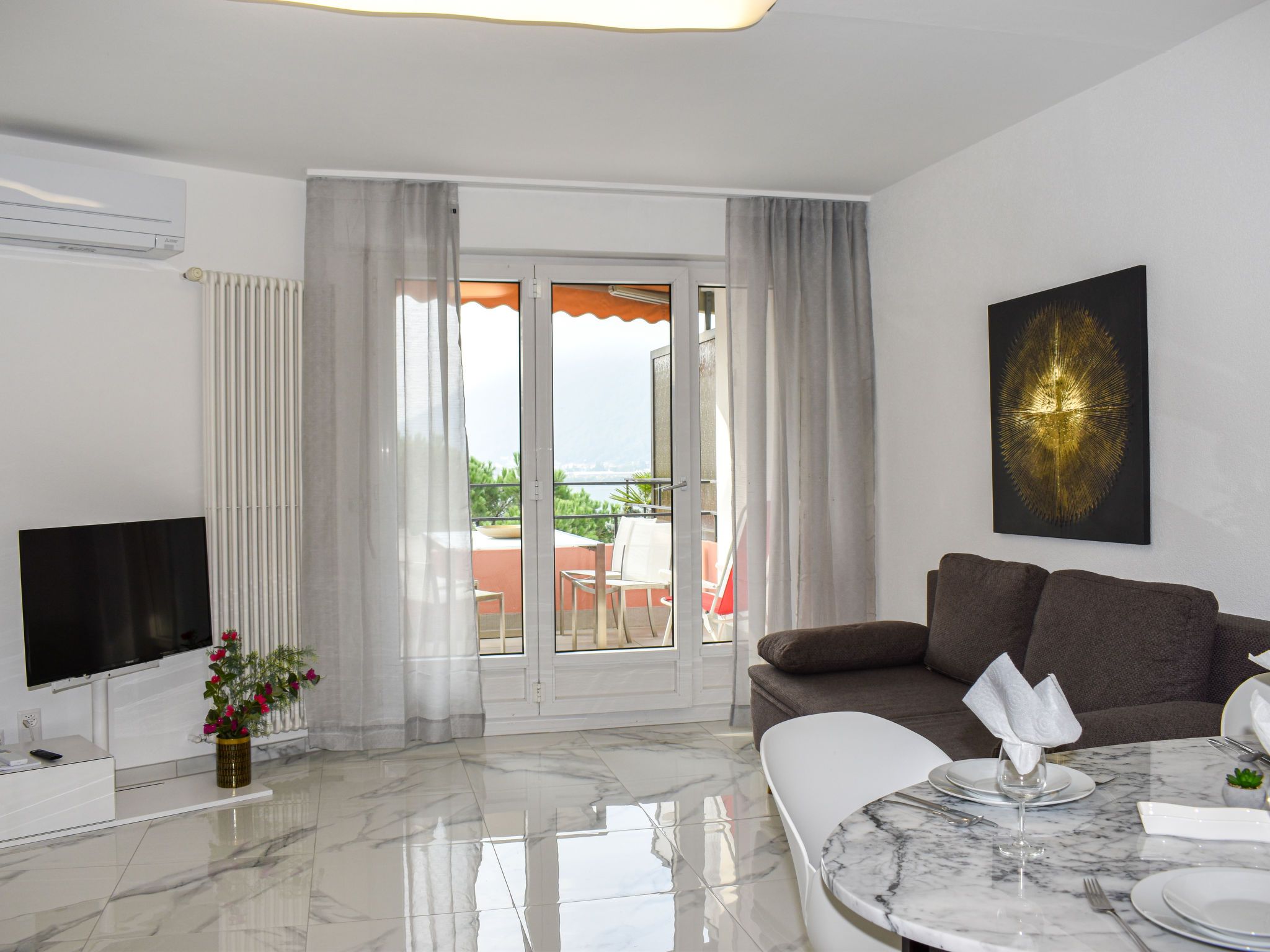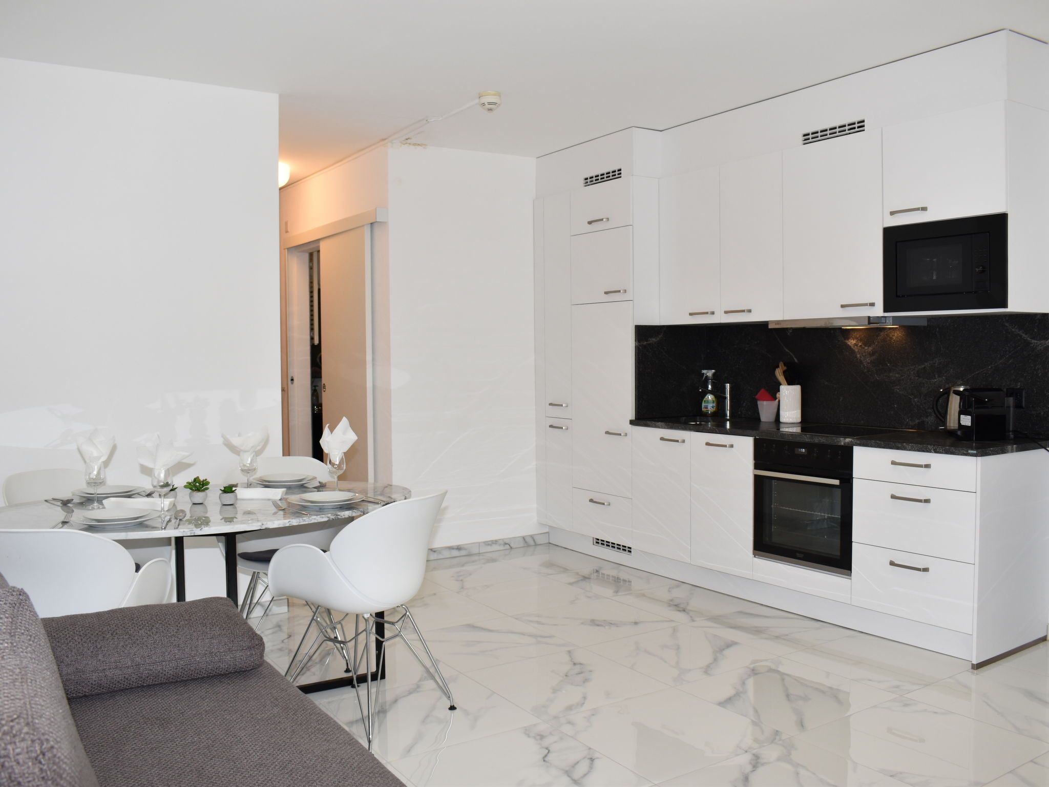 App. 704, 2-Zimmer-Wohnung 52 m2 im 7. Stock, Südlage. Vollständig renoviert im Jahre 2022, luxuriös und stilvoll eingerichtet: offenes grosses Wohn-/Esszimmer mit 1 Diwanbett (160 cm, Länge 200 cm), Kabel-TV und Internationale TV-Sender (Flachbildschirm), Klimaanlage. Ausgang zum Balkon. 1 kleines Doppelzimmer mit 1 Doppelbett (2 x 90 cm, Länge 200 cm). Grosse, offene Küche (Backofen, Geschirrspüler, 4 Glaskeramikplatten, Toaster, Wasserkocher, Tiefkühler, elektrische Kaffeemaschine, Kapseln für die Kaffeemaschine (Nespresso) extra, Racletteofen) mit Esstisch. Dusche/WC. Balkon 10 m2, Südlage. Balkonmöbel. Sehr schöne Sicht auf den See, die Berge und die Landschaft. Zur Verfügung: Waschmaschine (extra). Kinderhochstuhl, Babybett bis 2 Jahre (extra), Haartrockner. Internet (Wireless LAN, gratis). Parkplatz beim Haus. Bitte beachten: Nichtraucher-Unterkunft. Achtung: Fenster im Schlafzimmer geht in den Lüftungsschacht. NL-