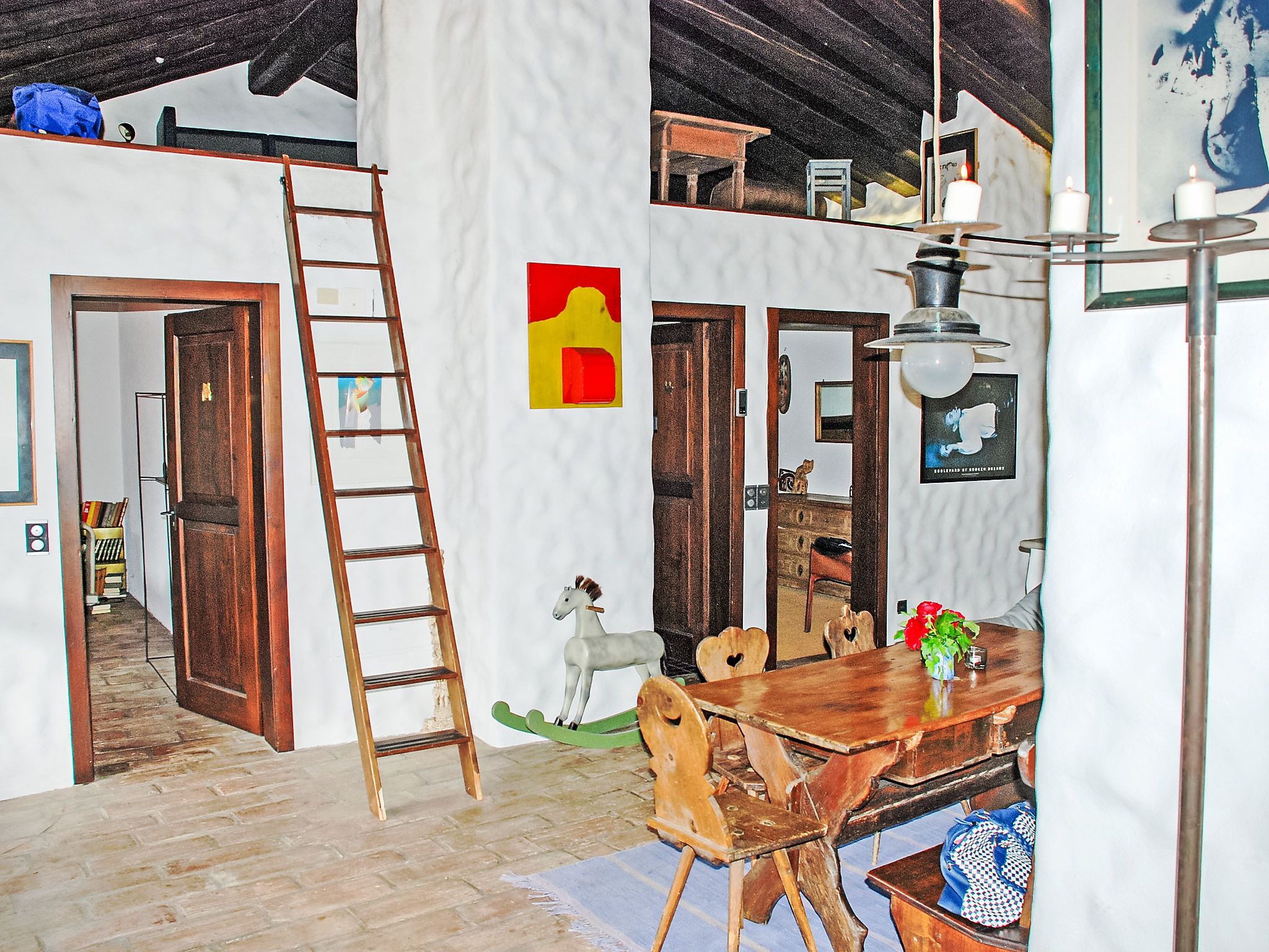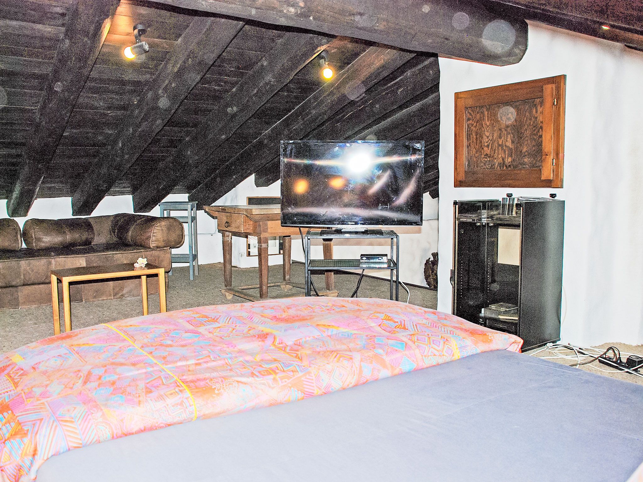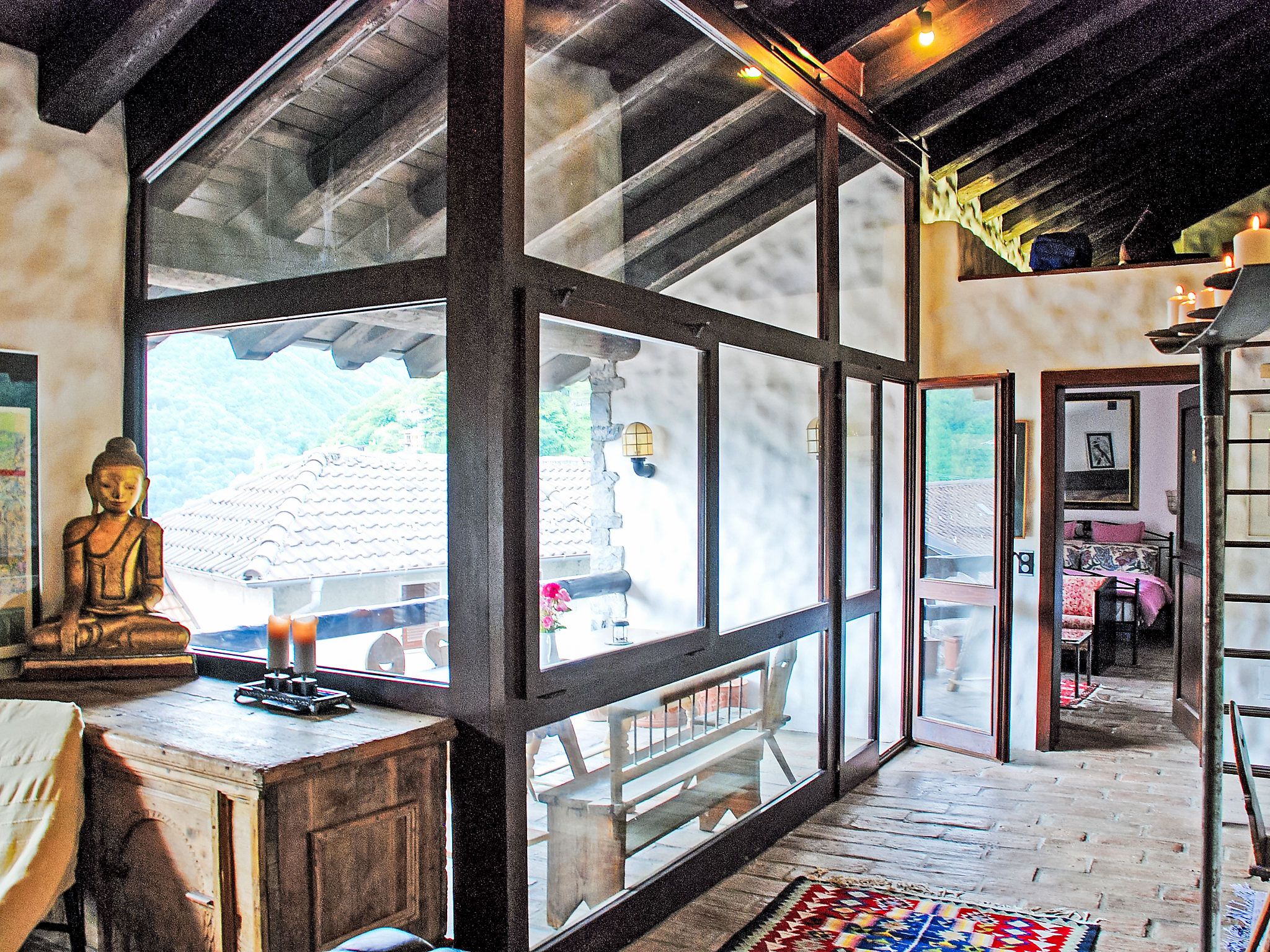 5-Zimmer-Haus auf 2 Stockwerken. Geräumig, teilweise abgeschrägt, komfortabel und geschmackvoll eingerichtet: 1 Doppelzimmer mit 1 Doppelbett (160 cm, Länge 200 cm). Grosses Esszimmer mit offenem Kamin. Wohnküche (Backofen, 4 Glaskeramikplatten, elektrische Kaffeemaschine, Kapseln für die Kaffeemaschine (NESPRESSO) extra) mit offenem Kamin. Dusche/WC. Bodenheizung. Obergeschoss: offenes grosses Wohn-/Esszimmer mit offenem Kamin, Essecke, Video und DVD Sammlung vorhanden. Ausgang zum Balkon. 1 Zimmer (100 cm, Länge 200 cm). (Leiter) abgeschrägte, offene Galerie, Deckenhöhe 170 - 190 cm mit 1 franz. Bett (160 cm, Länge 200 cm), Sat-TV und Flachbildschirm. 1 Doppelzimmer mit 1 Doppelbett (160 cm, Länge 200 cm). Bad/Dusche/WC, Doppelwaschbecken. Fussbodenheizung. Natursteinboden. Balkon 5 m2, grosser Gartensitzplatz, Garten. Liegestühle (5). Sehr schöne Sicht auf die Berge, das Tal und die Landschaft. Zur Verfügung: Bügeleisen, Haartrockner. Internet (WLAN, gratis). Bitte beachten: für Kleinkinder nicht geeignet. Nichtraucher-Haus. Maximal 2 Haustiere/Hunde erlaubt. Wichtig zu wissen: WIFI ist am besten im Poolbereich. Anstelle eines abgeschlossenen Schlafzimmers befinden sich manche Schlafplätze in einem offenen Bereich (Galerie, Nische etc.). NL-