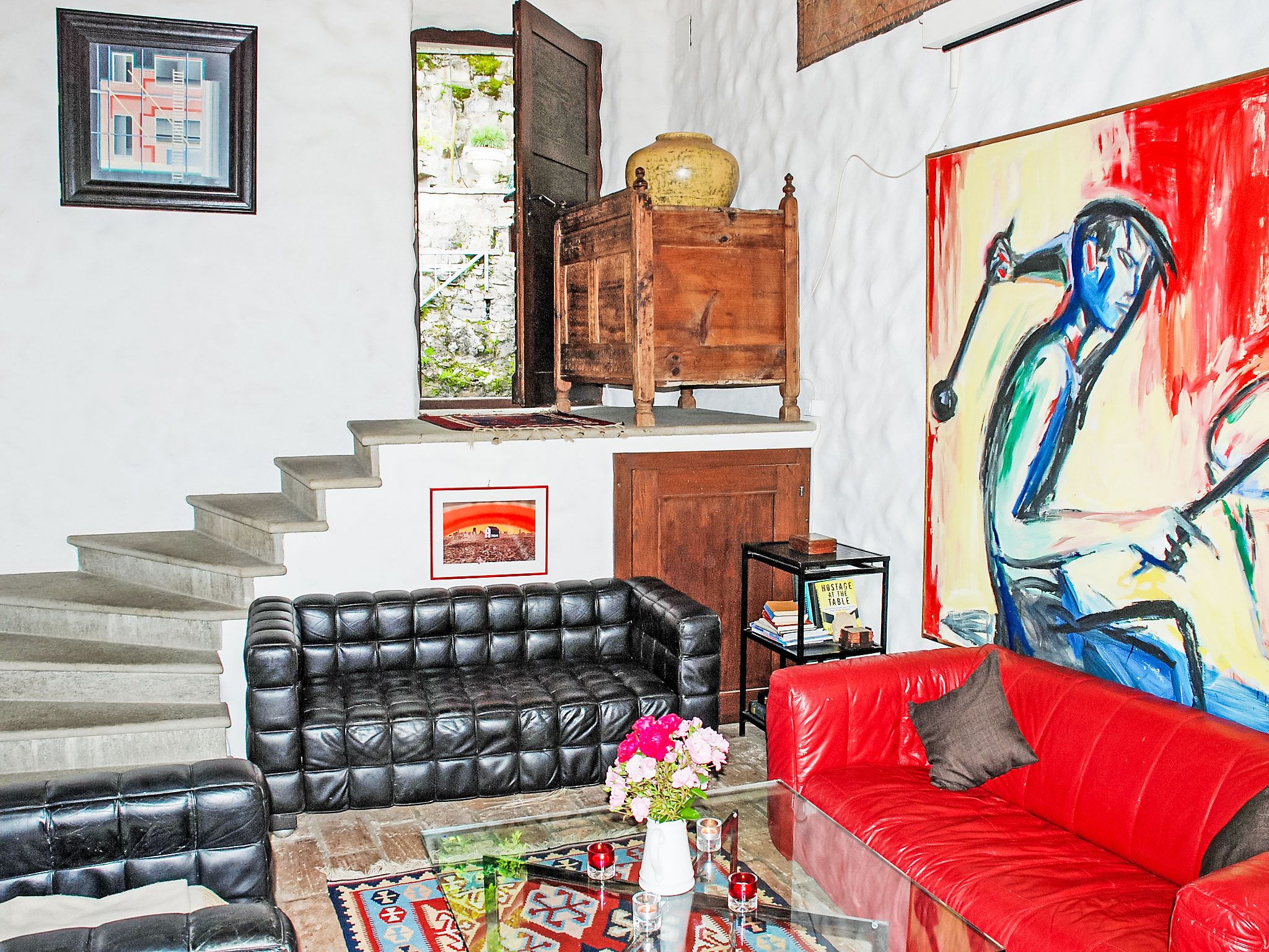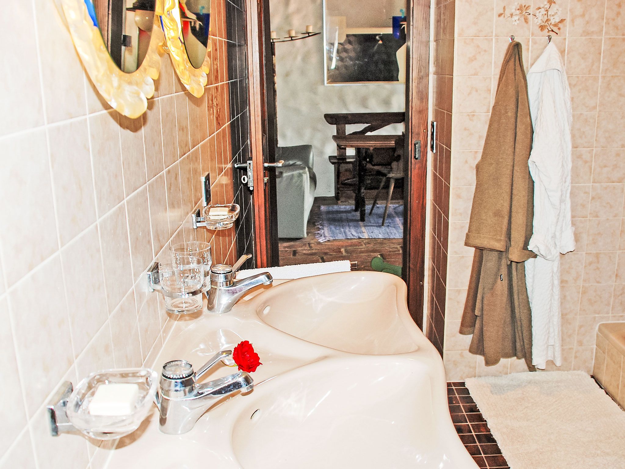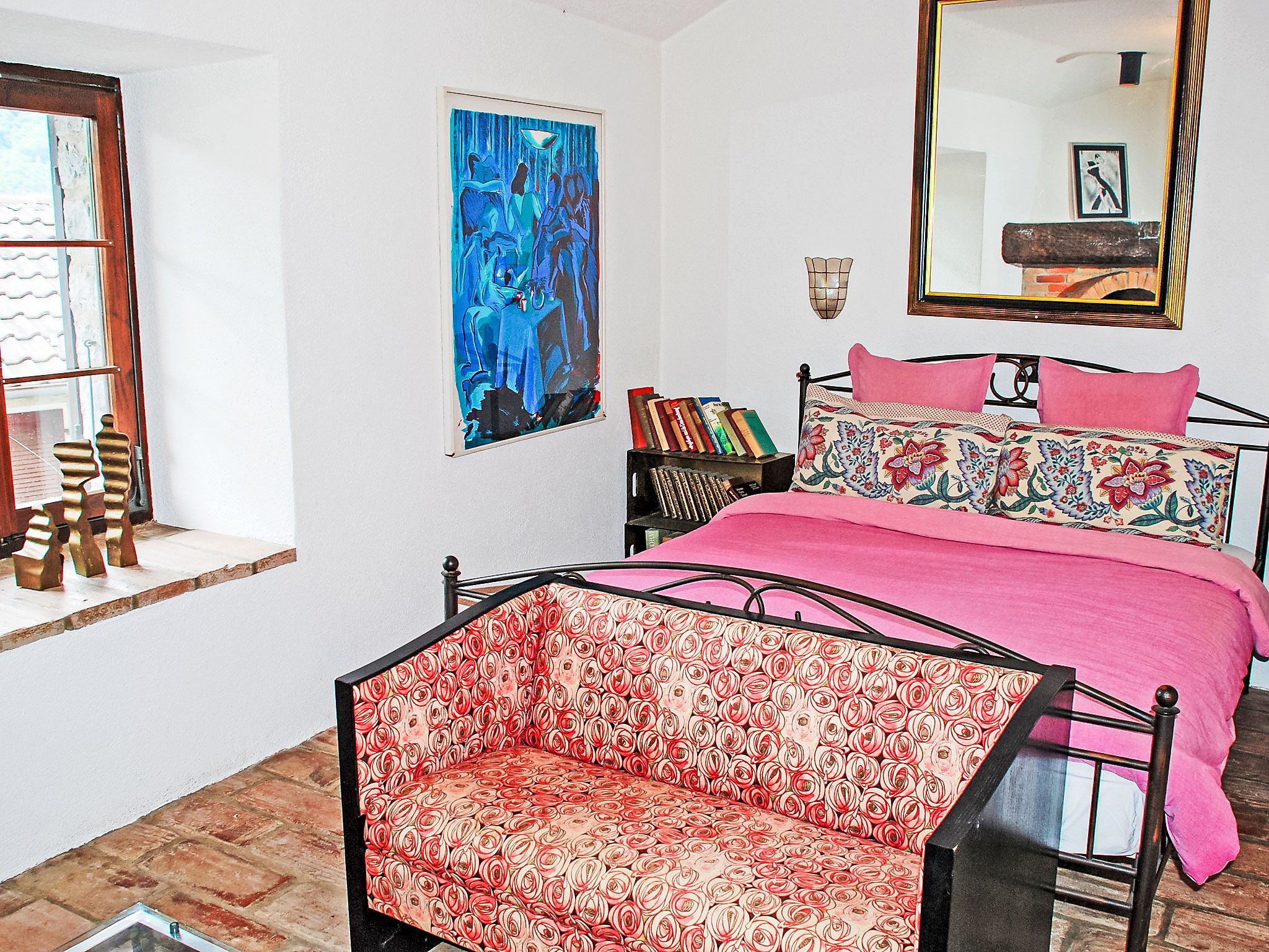 5-Zimmer-Haus auf 2 Stockwerken. Geräumig, teilweise abgeschrägt, komfortabel und geschmackvoll eingerichtet: 1 Doppelzimmer mit 1 Doppelbett (160 cm, Länge 200 cm). Grosses Esszimmer mit offenem Kamin. Wohnküche (Backofen, 4 Glaskeramikplatten, elektrische Kaffeemaschine, Kapseln für die Kaffeemaschine (NESPRESSO) extra) mit offenem Kamin. Dusche/WC. Bodenheizung. Obergeschoss: offenes grosses Wohn-/Esszimmer mit offenem Kamin, Essecke, Video und DVD Sammlung vorhanden. Ausgang zum Balkon. 1 Zimmer (100 cm, Länge 200 cm). (Leiter) abgeschrägte, offene Galerie, Deckenhöhe 170 - 190 cm mit 1 franz. Bett (160 cm, Länge 200 cm), Sat-TV und Flachbildschirm. 1 Doppelzimmer mit 1 Doppelbett (160 cm, Länge 200 cm). Bad/Dusche/WC, Doppelwaschbecken. Fussbodenheizung. Natursteinboden. Balkon 5 m2, grosser Gartensitzplatz, Garten. Liegestühle (5). Sehr schöne Sicht auf die Berge, das Tal und die Landschaft. Zur Verfügung: Bügeleisen, Haartrockner. Internet (WLAN, gratis). Bitte beachten: für Kleinkinder nicht geeignet. Nichtraucher-Haus. Maximal 2 Haustiere/Hunde erlaubt. Wichtig zu wissen: WIFI ist am besten im Poolbereich. Anstelle eines abgeschlossenen Schlafzimmers befinden sich manche Schlafplätze in einem offenen Bereich (Galerie, Nische etc.). NL-