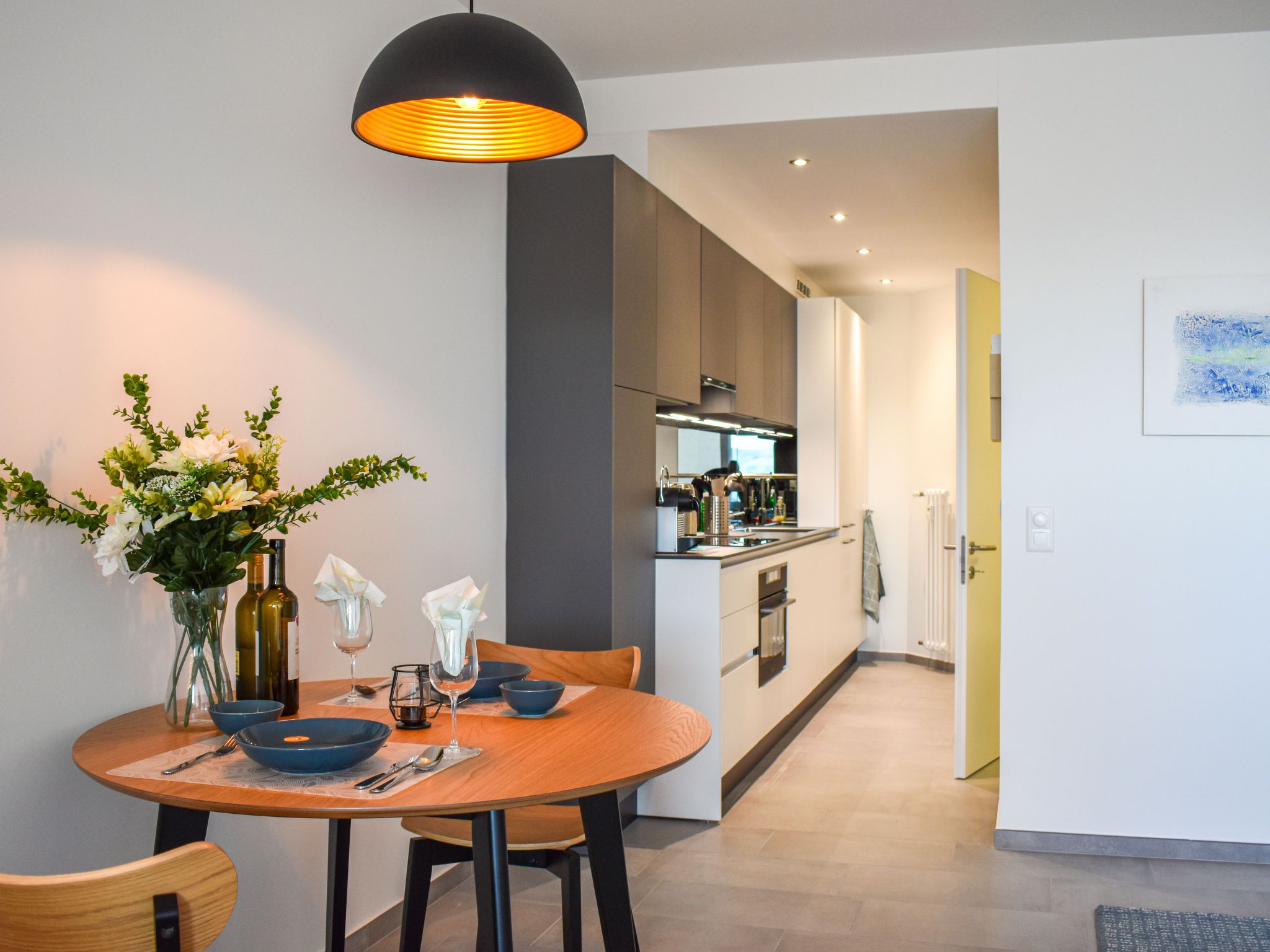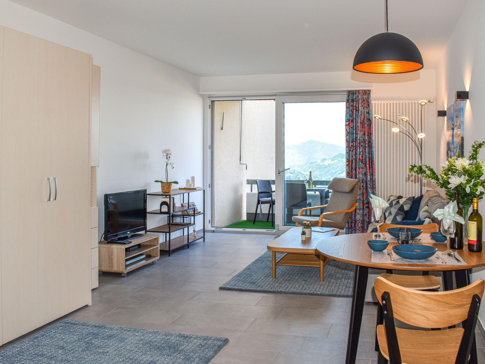 Residenza Monte Bré - Apt.204 Haus2, 1-Zimmer-Wohnung 26 m2 im 2. Stock, Südwestlage. Geräumig und hell, vollständig renoviert im Jahre 2022, komfortabel und stilvoll eingerichtet: offenes grosses Wohn-/Esszimmer mit 1 Doppelwandschrankbett (2 x 90 cm, Länge 200 cm), Esstisch, Kabel-TV, Internationale TV-Sender, Flachbildschirm und Radio. Ausgang zum Balkon. Grosse, offene Küche im Eingang (Geschirrspüler, 4 Induktionskochplatten, Toaster, Wasserkocher, Tiefkühler, elektrische Kaffeemaschine, Kapseln für die Kaffeemaschine (Nespresso) extra, Racletteofen, Kombinationsmikrowelle). Bad/WC. Heizung. Kleiner Balkon, Südwestlage. Balkonmöbel. Sehr schöne Panoramasicht auf den See, die Berge, die Landschaft, die Stadt und Lugano. Zur Verfügung: Kinderhochstuhl, Babybett bis 2 Jahre (extra), Haartrockner. Internet (Wireless LAN, gratis). Parkplatz (extra, überdacht) beim Haus. Bitte beachten: Nichtraucher-Unterkunft. Fahrstuhl! NL-