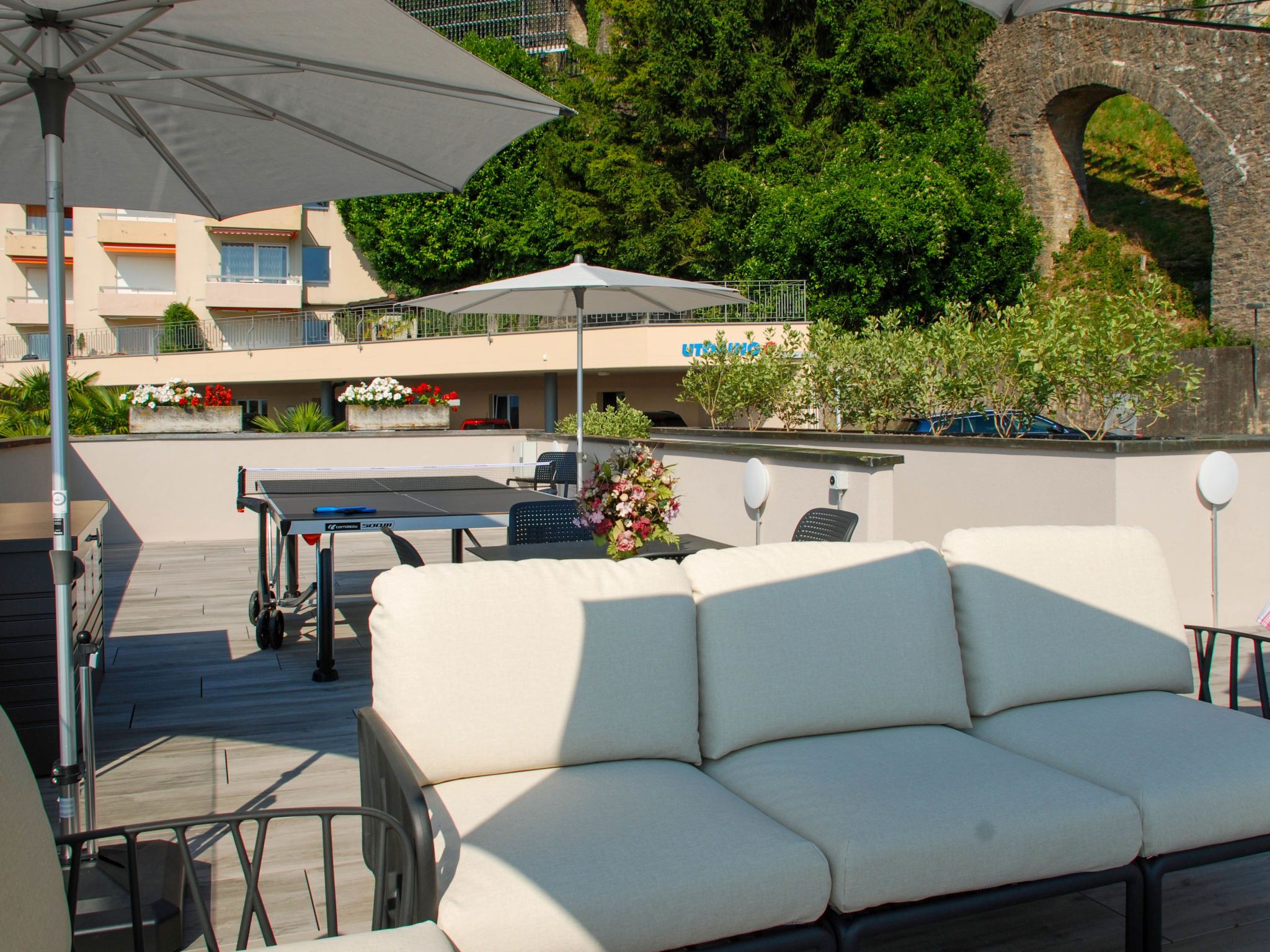 Aldesago 6 km von Lugano: Inmitten der Natur, am Monte Brè, befindet sich das komfortables Appartementhaus Residenza Monte Bré Aldesago. 34 Wohnungen in der Residenz. Oberhalb von Lugano, ruhige, sonnige Lage am Hang, 5 m vom Waldrand, 4.4 km vom See, in einer Sackgasse, im Grünen. Zur Mitbenutzung: Schwimmbad eckig beheizt (12 x 4 m, 154 - 160 cm tief, saisonale Verfügbarkeit: 19.Apr. - 25.Okt.) mit Innentreppe. Aussendusche, Tischtennis, Terrasse. Im Hause: Zentralheizung, Waschmaschine (zur Mitbenutzung). Zufahrt bis zum Haus (Bergstrasse). Parkplatz (extra) beim Haus. Lebensmittelgeschäft 6 km, Einkaufszentrum 12 km, Bushaltestelle Bus Nr. 12 200 m, Bahnstation Lugano SBB/FFS 7.2 km, See Lago di Lugano. Golfplatz (18 Loch) 15 km, Wanderwege ab Haus 1 m. Nahe gelegene Sehenswürdigkeiten: Gandria 5 km, Swiss Miniatur, Melide 13 km, Museum Hermann Hesse, Montagnola 11 km, Mercato Ponte Tresa, IT 17 km, Como 40 km. Bekannte Seen in der Umgebung sind gut erreichbar: Lago di Lugano, Lago di Como, Lago Maggiore. Wandergebiete: Monte Tamaro, San Salvatore-Carona-Parco san Grato, Alpe Vicania-Morcote. Bitte beachten: Fahrzeug empfohlen. Geeignet für Senioren. Weitere Unterkünfte sind buchbar. Ferienwohnung Ref. CH6974.102 befindet sich auf dem gleichen Grundstück. Teilweise Sicht auf Lugano. Seilbahn Utoring-Aldesago 50 m. Aufzug nur im Gebäude II. Überdachter Aussenparkplatz: CHF 10.00/Tag. Nicht überdachter Parkplatz: CHF 7.00/Tag., Reservierung bei Ankunft. WLAN an oder in der Nähe der Rezeption. Öffentliche Busverbindung und Standseilbahn nach Lugano tagsüber im Halbstundentakt.