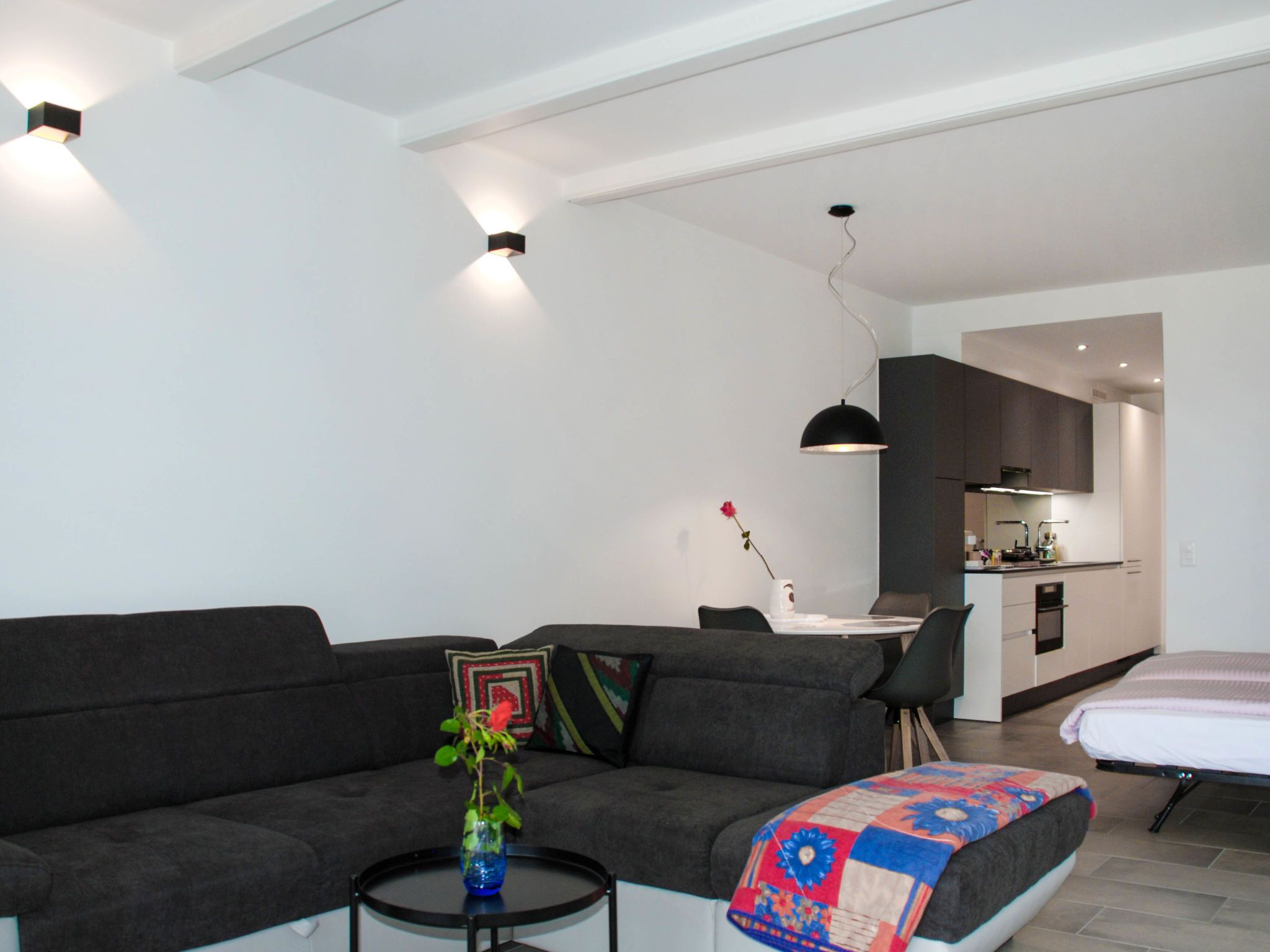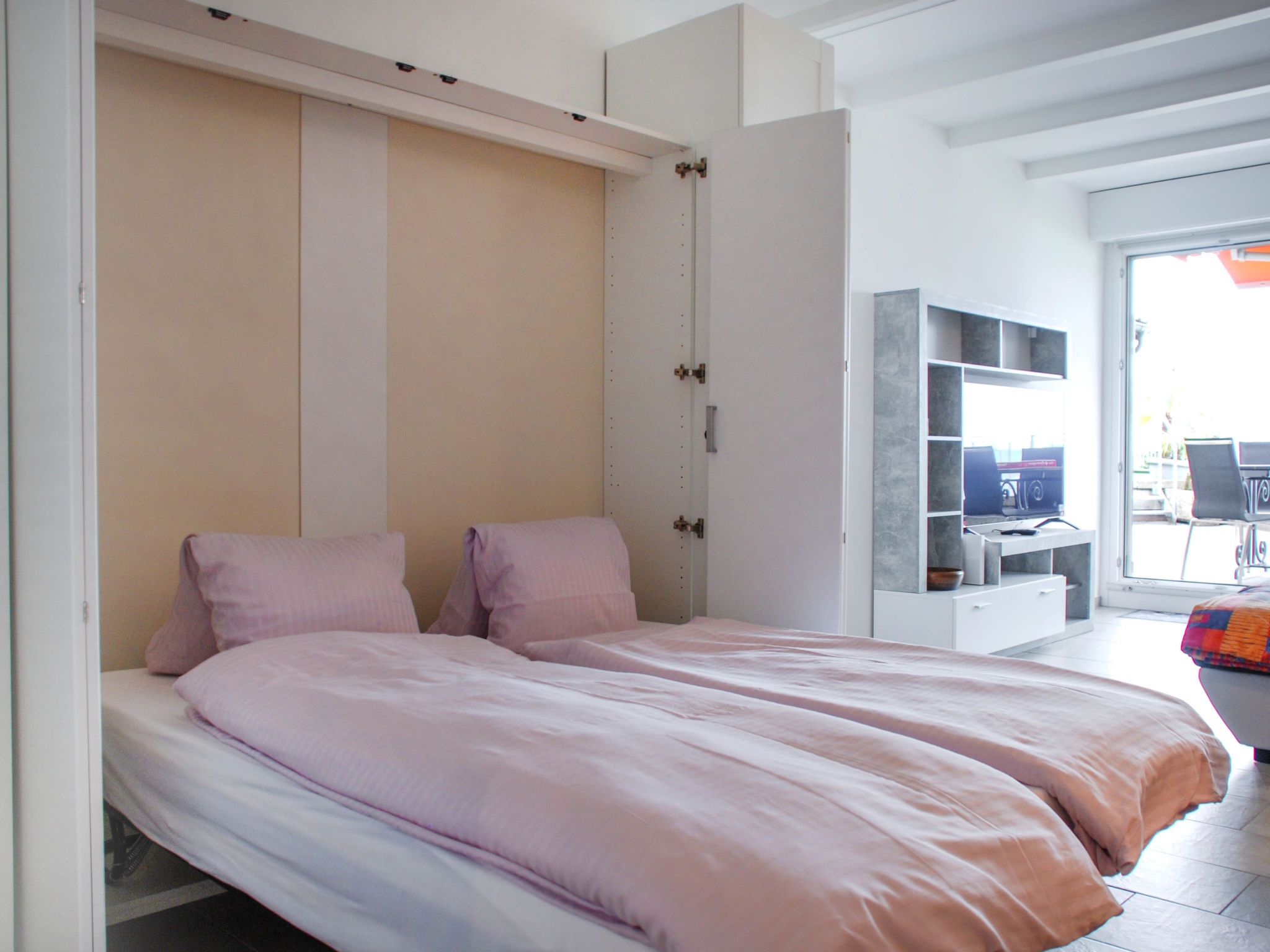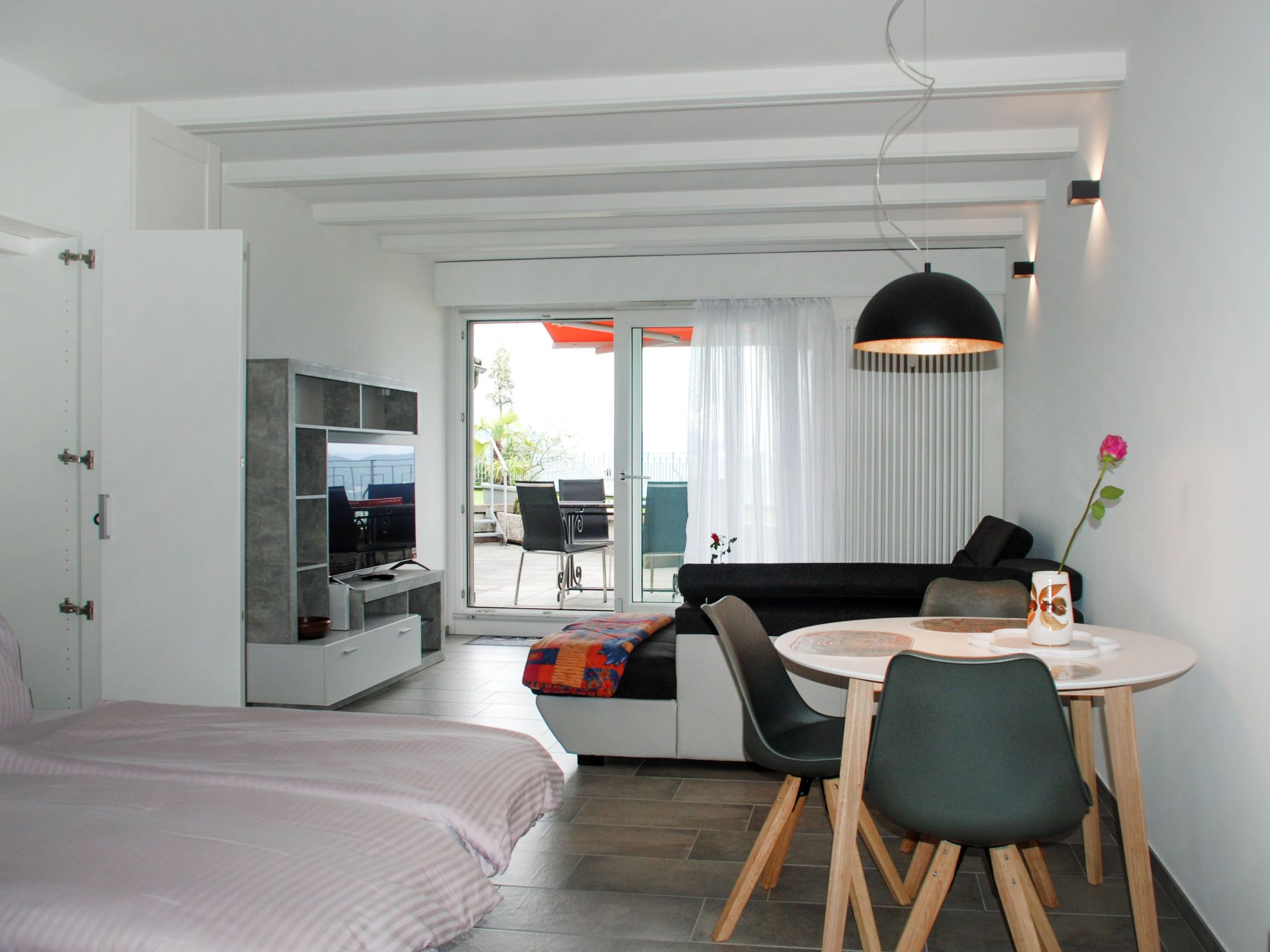 Lake-View cosy, 1-Zimmer-Wohnung 35 m2 im 1. Stock. Objekt geeignet für 2 Erwachsene + 1 Kind. Geräumig und hell, vollständig renoviert im Jahre 2021, sehr schön und geschmackvoll eingerichtet: offenes grosses Wohn-/Schlafzimmer mit 1 Diwanbett (160 cm, Länge 200 cm), 1 Doppelbett (140 cm, Länge 200 cm), Kabel-TV und Internationale TV-Sender (Flachbildschirm), Radio. Ausgang zum Garten, zur Terrasse, zum Gartensitzplatz. Offene Küche im Eingang (Backofen, Geschirrspüler, 4 Induktionskochplatten, Wasserkocher, Mikrowelle, Tiefkühler, elektrische Kaffeemaschine, Kapseln für die Kaffeemaschine (Delizio) extra, Racletteofen). Dusche/WC. Heizung. Grosse Terrasse teilweise überdacht. Terrassenmöbel, Gartengrill, Liegestühle (2). Herrliche Panoramasicht auf den See, die Berge, die Landschaft und die Ortschaft. Zur Verfügung: Kinderhochstuhl, Babybett bis 2 Jahre (extra), Haartrockner. Internet (WLAN, gratis). Parkplatz Nr. 101. Bitte beachten: Nichtraucher-Unterkunft. NL-