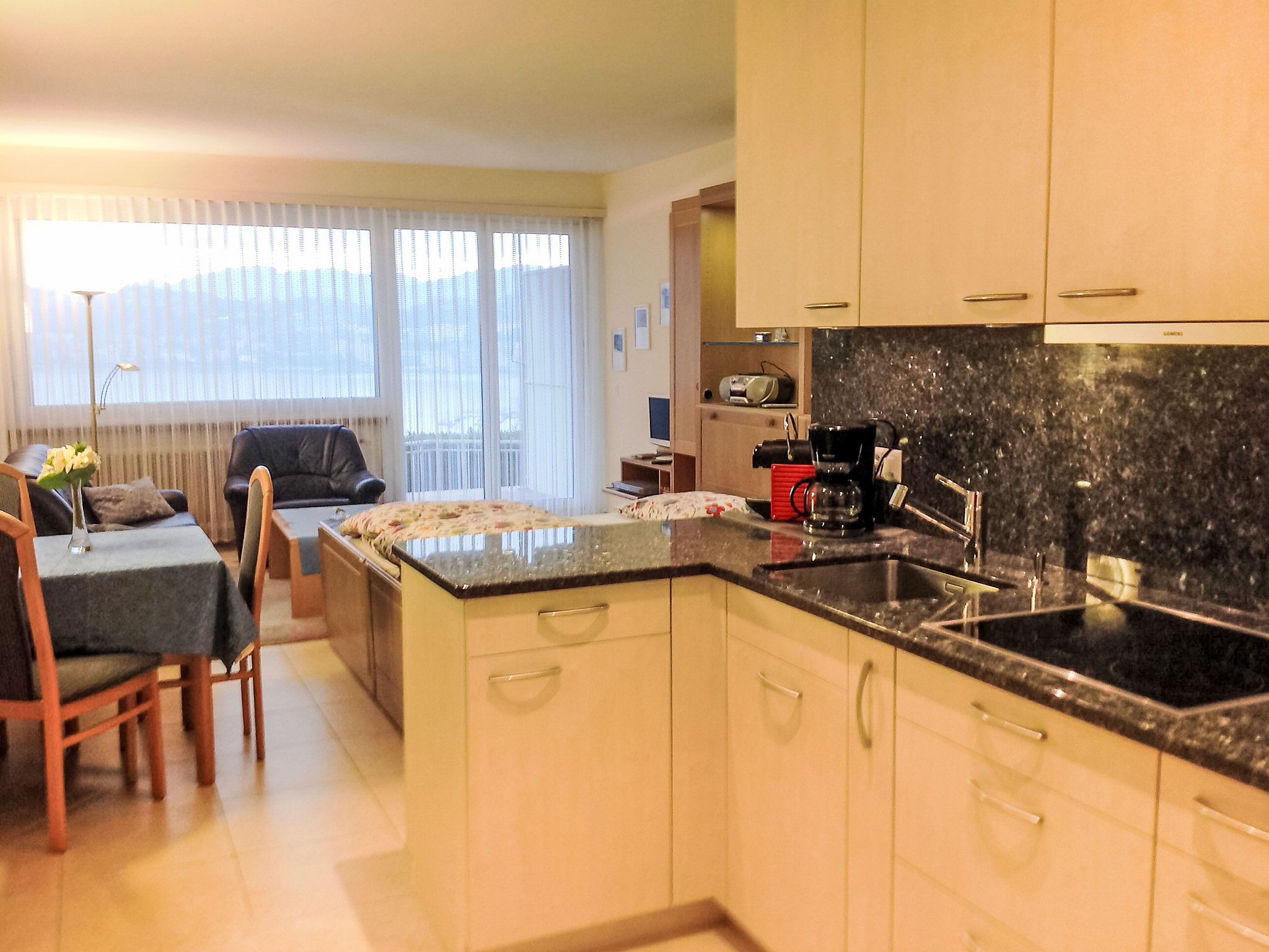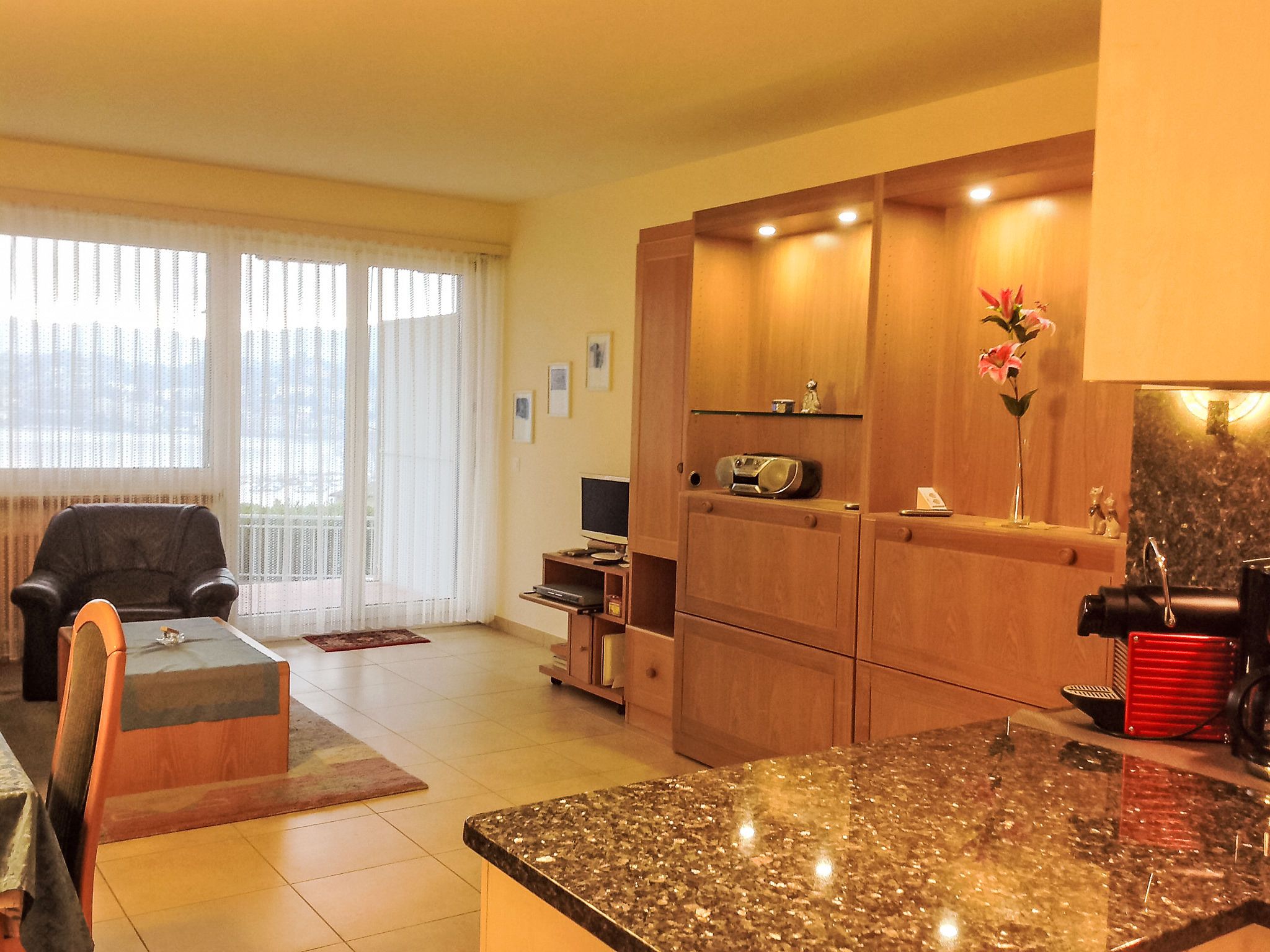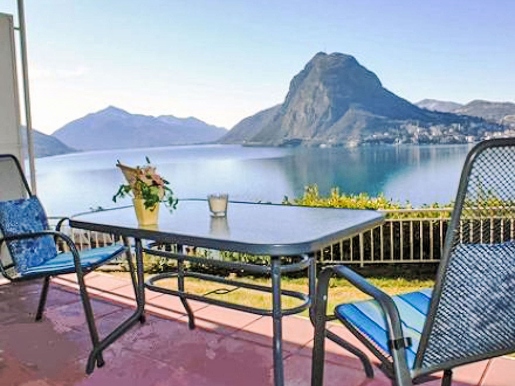 1-Zimmer-Wohnung 32 m2, Südlage. Hell, vollständig renoviert im Jahre 2015, schön eingerichtet: offenes Wohn-/Esszimmer mit 2 Wandschrankbetten (100 cm, Länge 200 cm), Kabel-TV, Flachbildschirm, Radio und CD. Ausgang zur Terrasse. Offene Küche (Backofen, 4 Glaskeramikplatten, Mikrowelle, elektrische Kaffeemaschine, Kapseln für die Kaffeemaschine (Nespresso) extra, Racletteofen, Fondue Set (Käse)) mit Esstisch. Dusche/WC. Heizung. Grosser Gartensitzplatz teilweise überdacht. Terrassenmöbel. Herrliche Panoramasicht auf den See, die Berge, die Landschaft und die Ortschaft. Zur Verfügung: Haartrockner. Internet (Wireless LAN, gratis). Bitte beachten: für Kleinkinder nicht geeignet. Nichtraucher-Unterkunft. TIPP:Terrasse mit atemberaubender Sicht auf den San Salvatore und die Bucht von Lugano, Traumhaft! NL-