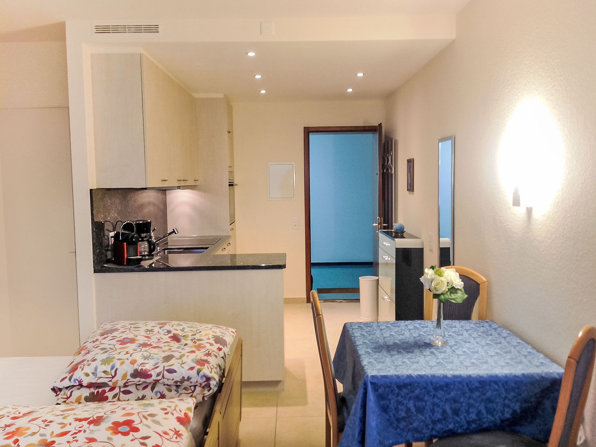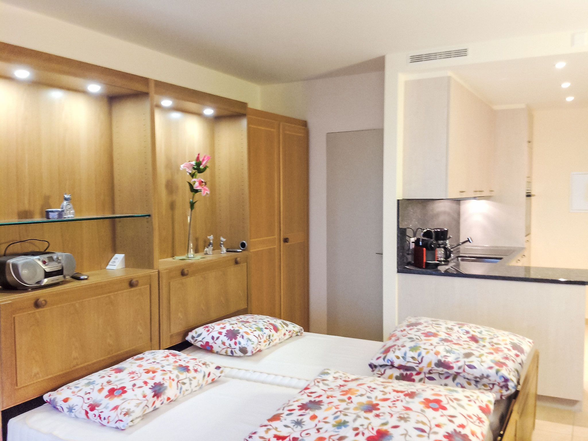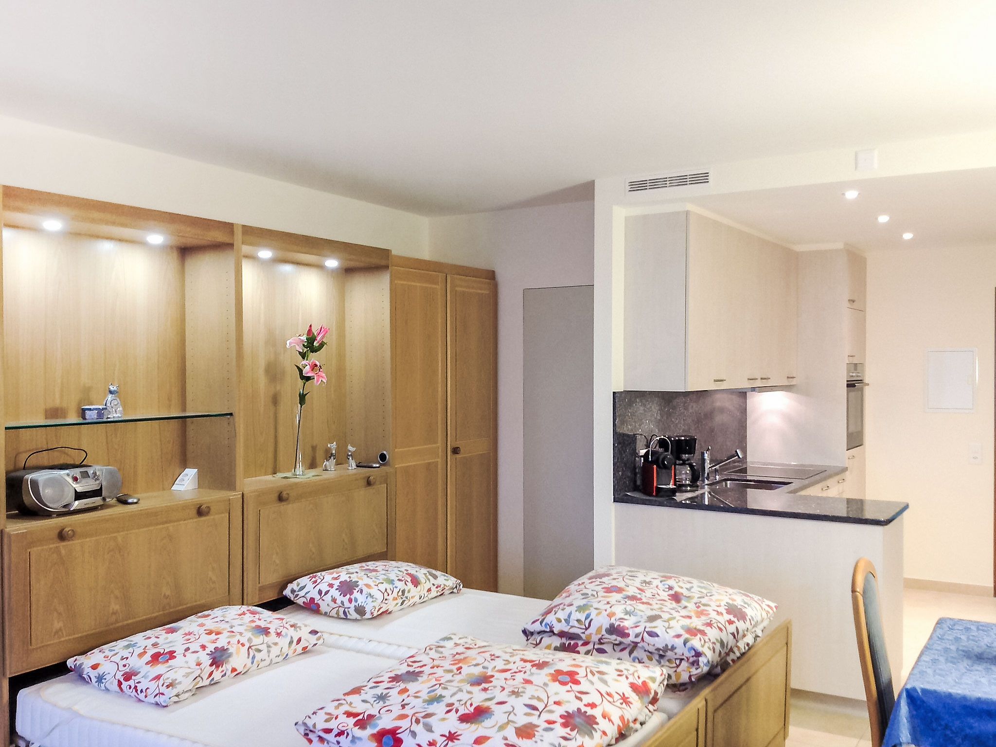 1-Zimmer-Wohnung 32 m2, Südlage. Hell, vollständig renoviert im Jahre 2015, schön eingerichtet: offenes Wohn-/Esszimmer mit 2 Wandschrankbetten (100 cm, Länge 200 cm), Kabel-TV, Flachbildschirm, Radio und CD. Ausgang zur Terrasse. Offene Küche (Backofen, 4 Glaskeramikplatten, Mikrowelle, elektrische Kaffeemaschine, Kapseln für die Kaffeemaschine (Nespresso) extra, Racletteofen, Fondue Set (Käse)) mit Esstisch. Dusche/WC. Heizung. Grosser Gartensitzplatz teilweise überdacht. Terrassenmöbel. Herrliche Panoramasicht auf den See, die Berge, die Landschaft und die Ortschaft. Zur Verfügung: Haartrockner. Internet (Wireless LAN, gratis). Bitte beachten: für Kleinkinder nicht geeignet. Nichtraucher-Unterkunft. TIPP:Terrasse mit atemberaubender Sicht auf den San Salvatore und die Bucht von Lugano, Traumhaft! NL-