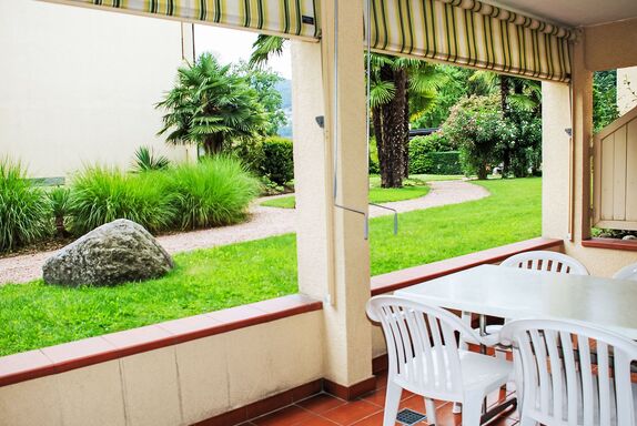 Residenza Parcolago Apt.008, 2-Zimmer-Wohnung 64 m2, im Erdgeschoss. Geräumig und hell, teilweise renoviert im Jahre 2014, schön und geschmackvoll eingerichtet: offenes grosses Wohn-/Esszimmer mit 1 Doppeldiwanbett (160 cm), Esstisch, Kabel-TV, Flachbildschirm und Radio. Ausgang zur Terrasse. 1 Doppelzimmer mit 1 Doppelbett (2 x 90 cm, Länge 200 cm). Ausgang zur Terrasse. Offene Küche (Backofen, Geschirrspüler, 4 Glaskeramikplatten, elektrische Kaffeemaschine, Kapseln für die Kaffeemaschine (Nespresso mitbringen) extra). Bad/WC, Doppelwaschbecken. Grosser Gartensitzplatz teilweise überdacht. Terrassenmöbel, Liegestühle (4). Zur Verfügung: Internet (Wireless LAN, gratis). Garage Nr. App. 008 auf dem Grundstück, Höhe 180 cm. Bitte beachten: Nichtraucher-Unterkunft. Sonnenstoren. Nutzung des Tennisplatzes bereits im Mietpreis inbegriffen. Reservierung vor Ort nach Verfügbarkeit. NL-
