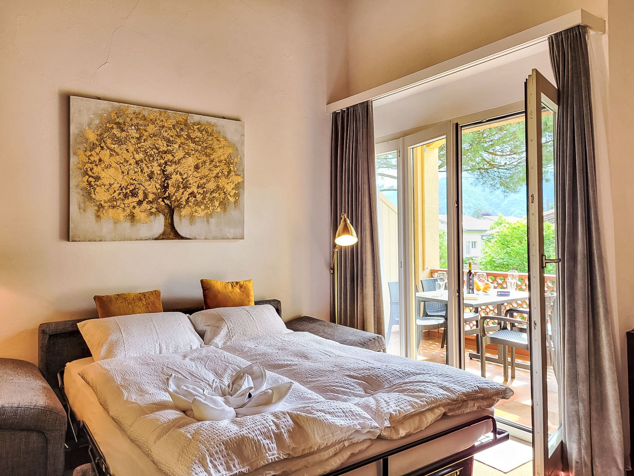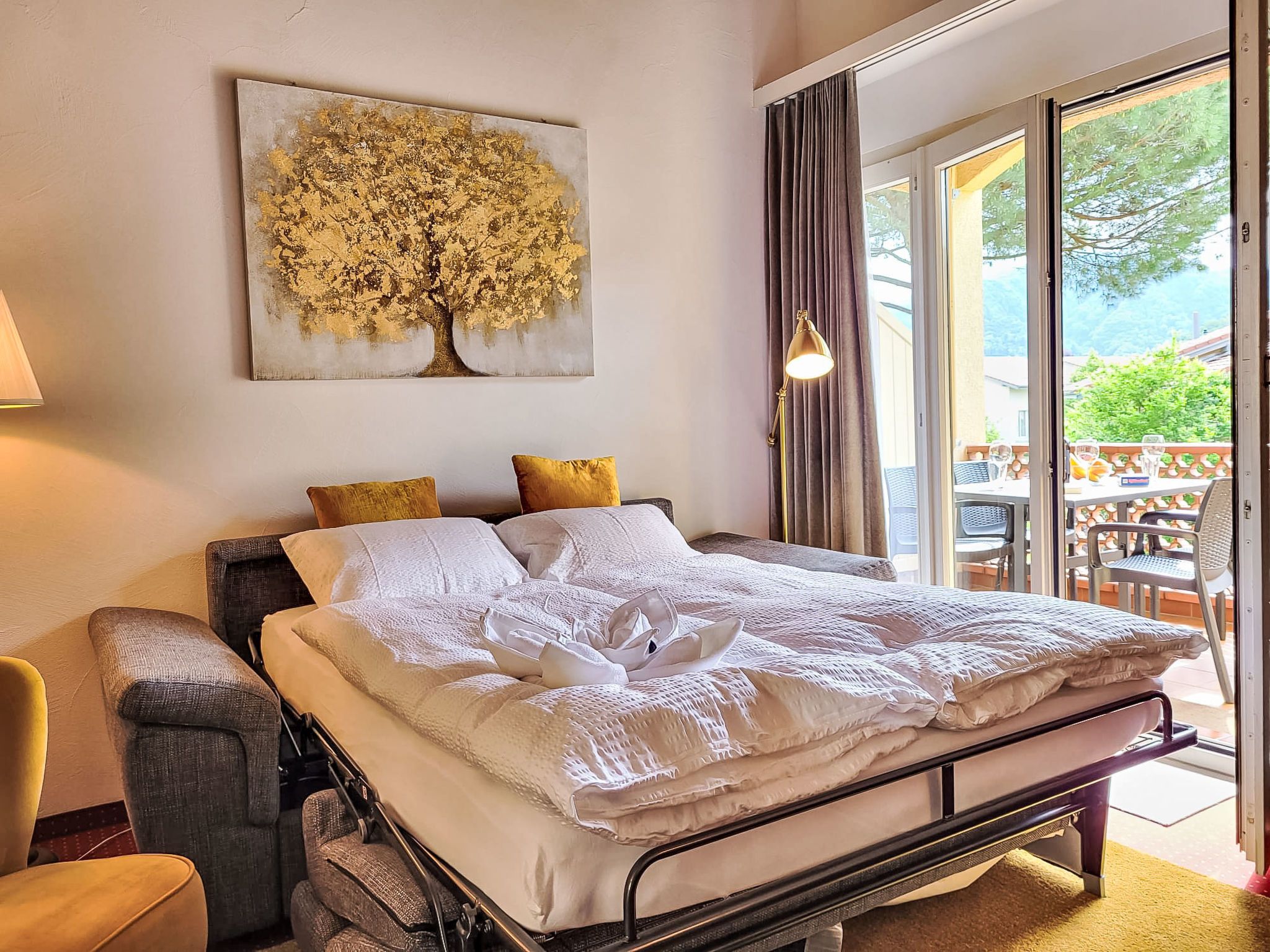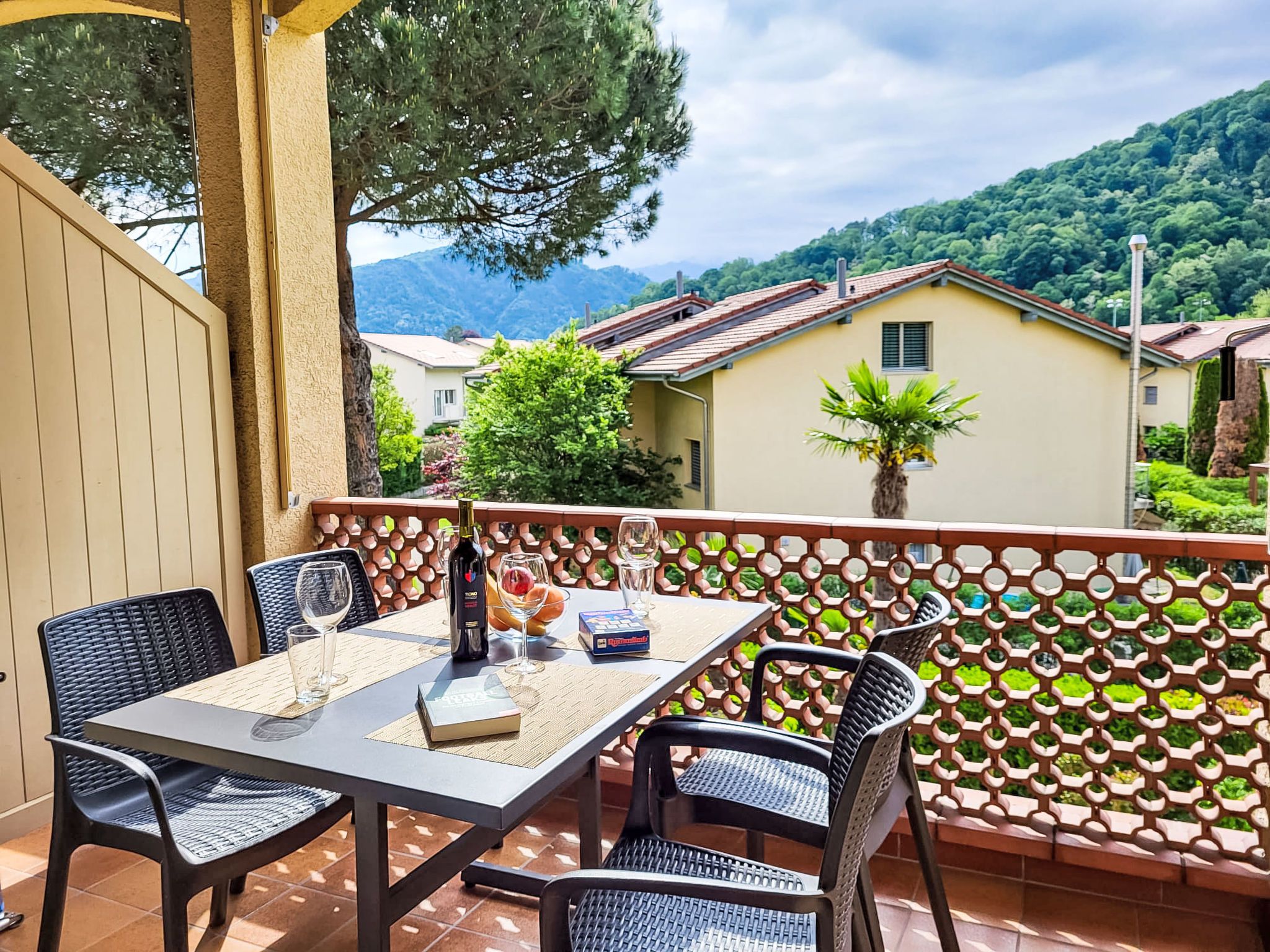 Residenza Parcolago Apt.212, 2-Zimmer-Wohnung 53 m2 auf 2 Stockwerken im 2. Stock. Geräumig, teilweise renoviert im Jahre 2024, komfortabel und gemütlich eingerichtet: offenes Wohn-/Esszimmer mit 1 Diwanbett (140 cm, Länge 200 cm), Essecke und Kabel-TV (Flachbildschirm), Radio. Ausgang zum Balkon. Offene Küche im Eingang (Backofen, Geschirrspüler, 4 Glaskeramikplatten, Toaster, Wasserkocher, elektrische Kaffeemaschine, Kapseln für die Kaffeemaschine (Dolce Gusto) extra). Bad/WC. Obergeschoss: offen mit 1 Doppelbett (160 cm, Länge 200 cm). Ausgang zur Terrasse. Balkon, Terrasse teilweise überdacht. Terrassenmöbel, Liegestühle (2). Sicht auf die Berge und den Garten. Zur Verfügung: Kinderhochstuhl, Babybett bis 2 Jahre (extra), Haartrockner. Internet (Wireless LAN, gratis). Garage Nr. App. 212, Höhe 180 cm. Bitte beachten: Nichtraucher-Unterkunft. Sonnenstoren. Neue Küche mit 4 Kochfeldern, Backofen und Geschirrspüler. Neues Doppelbett (160/200 cm) auf der Galerie und neues qualitativ hochwertiges Schlafsofa (140/200 cm) im Wohnbereich. NL-