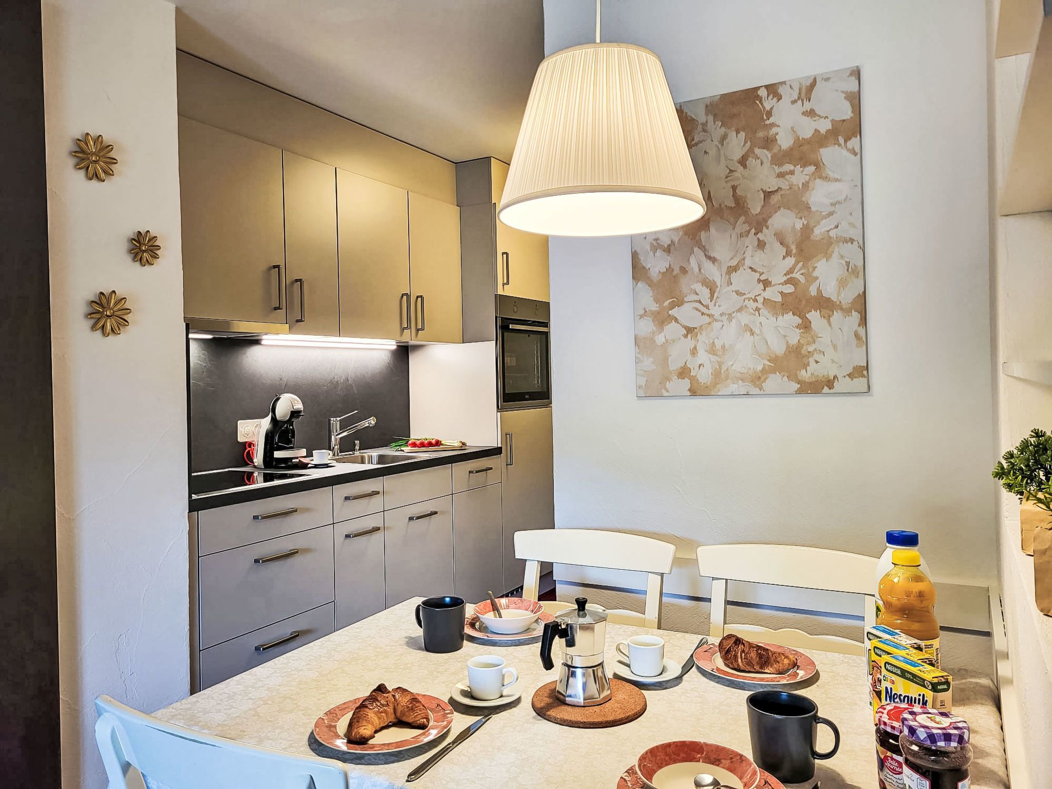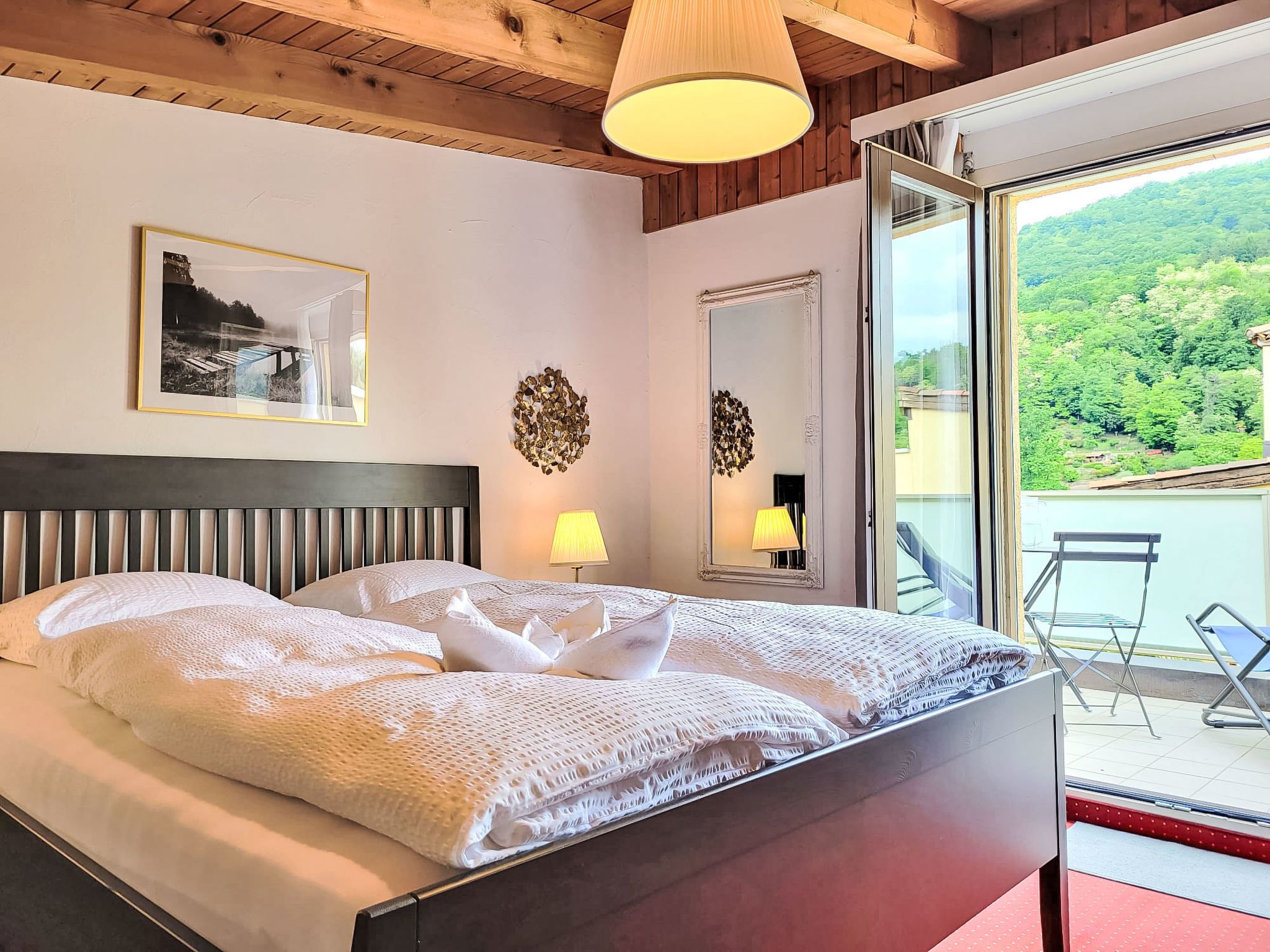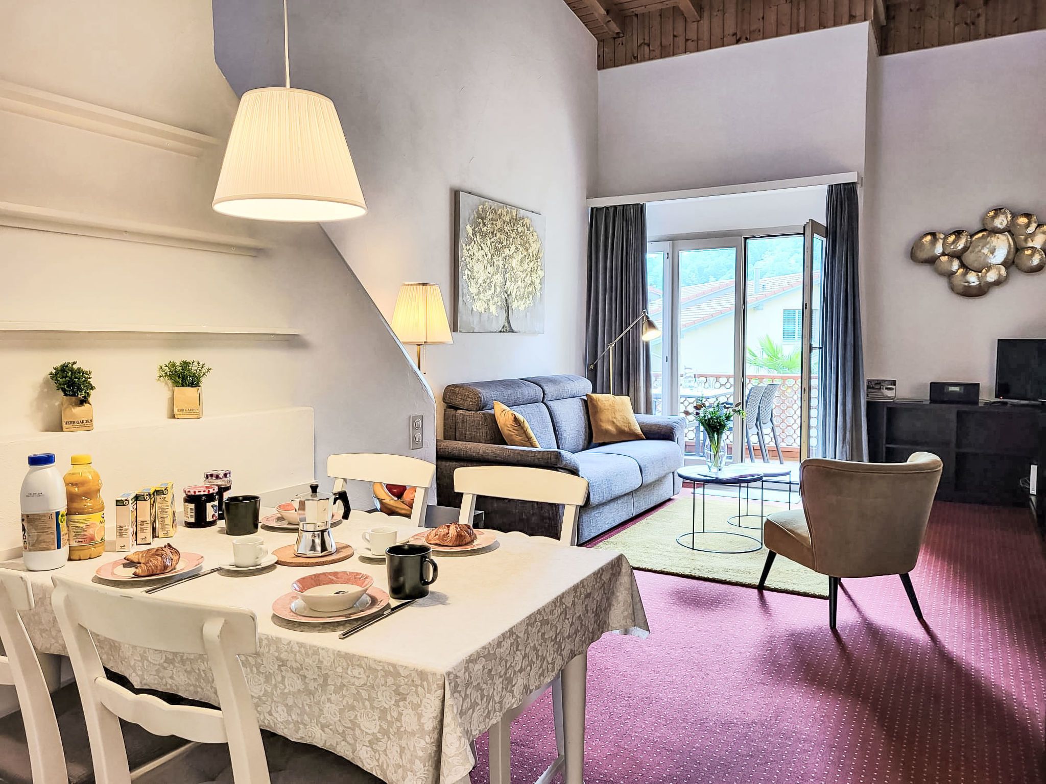 Residenza Parcolago Apt.212, 2-Zimmer-Wohnung 53 m2 auf 2 Stockwerken im 2. Stock. Geräumig, teilweise renoviert im Jahre 2024, komfortabel und gemütlich eingerichtet: offenes Wohn-/Esszimmer mit 1 Diwanbett (140 cm, Länge 200 cm), Essecke und Kabel-TV (Flachbildschirm), Radio. Ausgang zum Balkon. Offene Küche im Eingang (Backofen, Geschirrspüler, 4 Glaskeramikplatten, Toaster, Wasserkocher, elektrische Kaffeemaschine, Kapseln für die Kaffeemaschine (Dolce Gusto) extra). Bad/WC. Obergeschoss: offen mit 1 Doppelbett (160 cm, Länge 200 cm). Ausgang zur Terrasse. Balkon, Terrasse teilweise überdacht. Terrassenmöbel, Liegestühle (2). Sicht auf die Berge und den Garten. Zur Verfügung: Kinderhochstuhl, Babybett bis 2 Jahre (extra), Haartrockner. Internet (Wireless LAN, gratis). Garage Nr. App. 212, Höhe 180 cm. Bitte beachten: Nichtraucher-Unterkunft. Sonnenstoren. Neue Küche mit 4 Kochfeldern, Backofen und Geschirrspüler. Neues Doppelbett (160/200 cm) auf der Galerie und neues qualitativ hochwertiges Schlafsofa (140/200 cm) im Wohnbereich. NL-