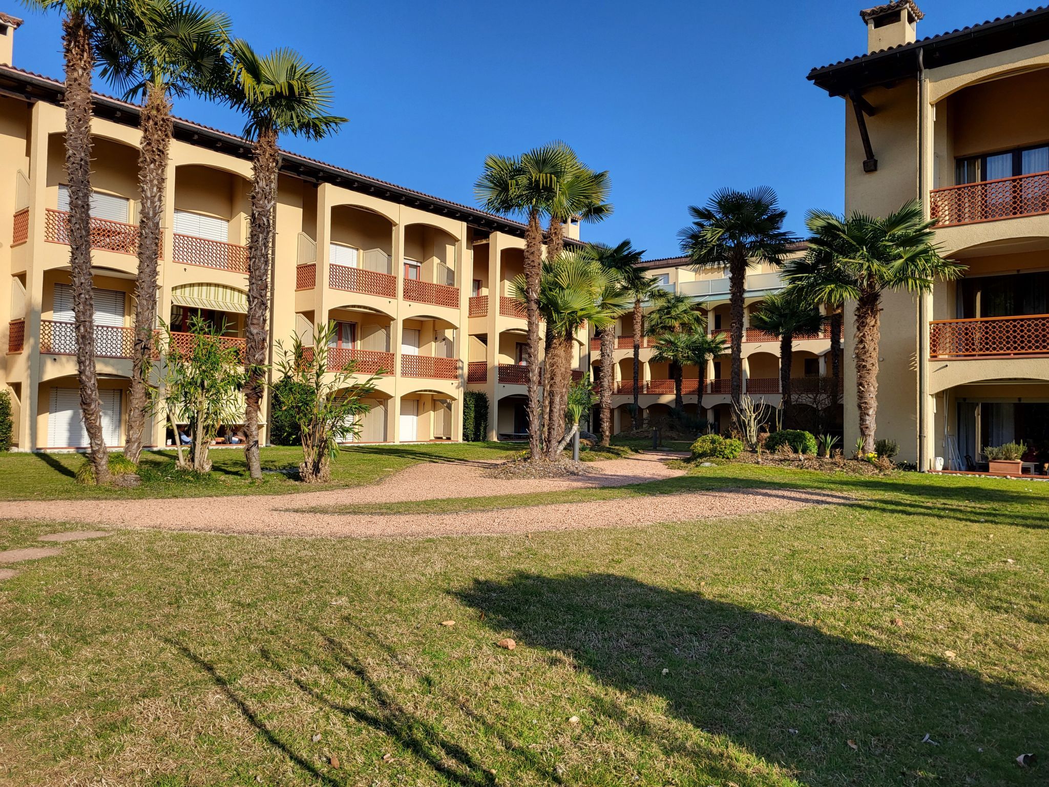 Caslano 8 km von Lugano: Die Wohnungen in der Ferienresidenz Parcolago mit direktem Seeanstoss in Caslano sind praktisch und zeitgemäss eingerichtet und verfügen über einen Balkon und/ oder eine Terrasse. Die Anlage punktet mit einer ruhigen und sonnigen Lage, einem Park, einer Liegewiese am See, einem Tennisplatz und einem Restaurant. Der Ort ist ein optimaler Ausgangspunkt für Freizeitaktivitäten wie Wandern, Bike- und Rennradtouren, Minigolf, Zoo und Golf in Magliaso. Zahlreiche Sehenswürdigkeiten, Seen und Märkte im Tessin und im grenznahen Italien ergänzen das breite Angebot. Lugano ist mit der Bahn in weniger als 30 Minuten erreichbar. Ein Tiefgaragenplatz ist inbegriffen. (Achtung Garageneinfahrt nur 1.80 m hoch!). Residenz Parcolago (Utoring), umgeben von Bäumen. Im Ort, 1 km vom Zentrum, ruhige, sonnige Lage, 50 m vom See, Strasse zu überqueren, an einer Strasse. Zur Mitbenutzung: Park, Liegewiese. Tennis (1 x Sandbelag) (extra), Tischtennis. Im Hause: Restaurant, Zentralheizung, Waschmaschine (extra), Wäschetrockner (zur Mitbenutzung, extra). Zufahrt bis zum Haus. Parkplatz, Gemeinschaftsgarage beim Haus. Einkaufsgeschäft 700 m, Restaurant 10 m, Zentrum zu Fuss in 15 Minuten erreichbar, Bushaltestelle Caslano stazione 950 m, Bahnstation Caslano stazione 950 m, Badesee Lago di Lugano 50 m, See Lago di Lugano. Golfplatz (18 Loch) 2 km, Tennis 500 m, Minigolf 1.6 km, Wanderwege ab Haus 10 m. Nahe gelegene Sehenswürdigkeiten: Mercato di Ponte Tresa (IT), Mercato di Luino (IT), Zoo, Magliaso, Swissminmiatur, Melide, Schokoladenfabrik Alprose, Caslano, Outlet Foxtown, Mendrisio. Bekannte Seen in der Umgebung sind gut erreichbar: Lago di Como, Lago Maggiore. Wandergebiete: Monte di Caslano, Alto Malcantone, Monte Lema - Monte Tamaro.