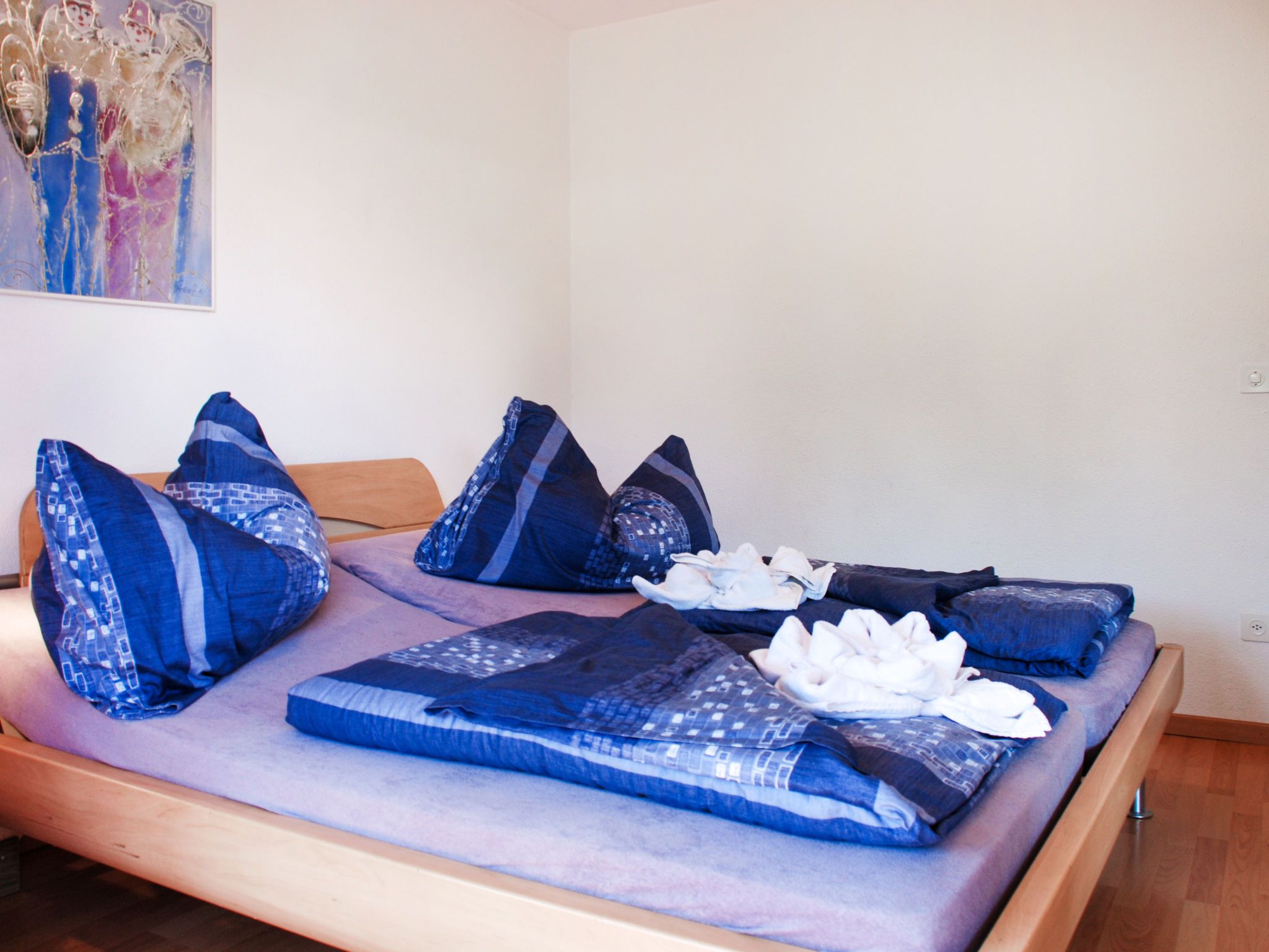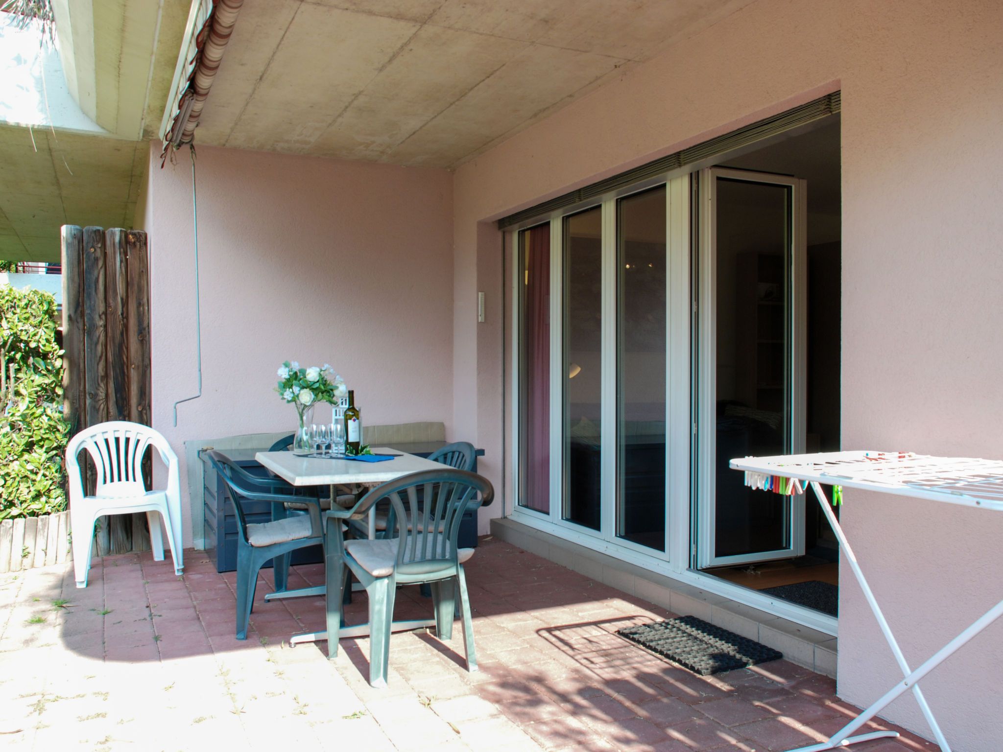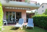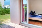 App. 17, 2-Zimmer-Wohnung 56 m2, im Erdgeschoss, Südlage. Objekt geeignet für 2 Erwachsene + 2 Kinder. Geräumig und hell, komfortabel und gemütlich eingerichtet: offenes grosses Wohn-/Schlafzimmer mit 1 Doppelwandschrankbett (2 x 90 cm, Länge 200 cm), Esstisch und Sat-TV (Flachbildschirm), Radio. Ausgang zum Garten, zum Gartensitzplatz, zum Schwimmbad. 1 Doppelzimmer mit 1 Doppelbett (2 x 90 cm, Länge 200 cm). Ausgang zur Terrasse. Offene Küche (Backofen, Geschirrspüler, 4 Glaskeramikplatten, Toaster, Wasserkocher, Mikrowelle, elektrische Kaffeemaschine, Kapseln für die Kaffeemaschine (Delizio) extra, Fondue Set (Chinoise)). Bad/WC. Heizung. Grosser Gartensitzplatz teilweise überdacht. Terrassenmöbel, Liegestühle (2). Schöne Sicht auf das Schwimmbad und den Garten. Zur Verfügung: Bügeleisen, Kinderhochstuhl, Babybett bis 2 Jahre (extra), Haartrockner. Internet (Wireless LAN). Garage Nr. 7. Bitte beachten: Nichtraucher-Unterkunft. Maximal 1 Haustier/Hund erlaubt. NL-