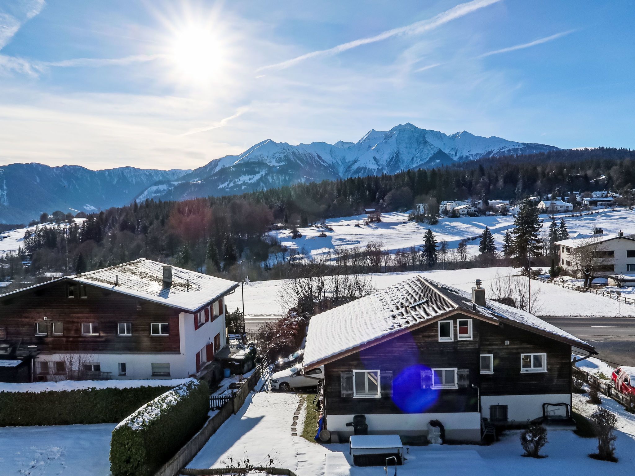 Kinderfreundliches, gemütliches, komfortables Mehrfamilienhaus Girun, 1'050 m.ü.M., Baujahr 1977, renoviert im Jahre 2008. Im Ort, ruhige, sonnige Lage, 1 km vom Skigebiet, in einer Sackgasse. Zur Mitbenutzung: Grundstück, Garten. Im Hause: Sauna (extra). Einstellraum für Fahrräder, Skiraum, Zentralheizung, Waschmaschine, Wäschetrockner (zur Mitbenutzung, extra). Zufahrt bis zum Haus. Parkplatz beim Haus. Einkaufsgeschäft, Lebensmittelgeschäft 500 m, Restaurant 300 m, Bushaltestelle 200 m, Hallenbad 4 km. Bergeisenbahn 1 km, Skilift 1 km, Skibushaltestelle 20 m, Skischule 1 km, Schlittelbahn 1 km, Langlaufloipe 500 m, Eisfeld 3 km. Bekannte Skigebiete sind gut erreichbar: Weisse Arena Flims/Laax 1 km. Bekannte Seen in der Umgebung sind gut erreichbar: Caumasee 3 km, Crestasee 1 km, Laaxersee 6 km.