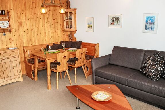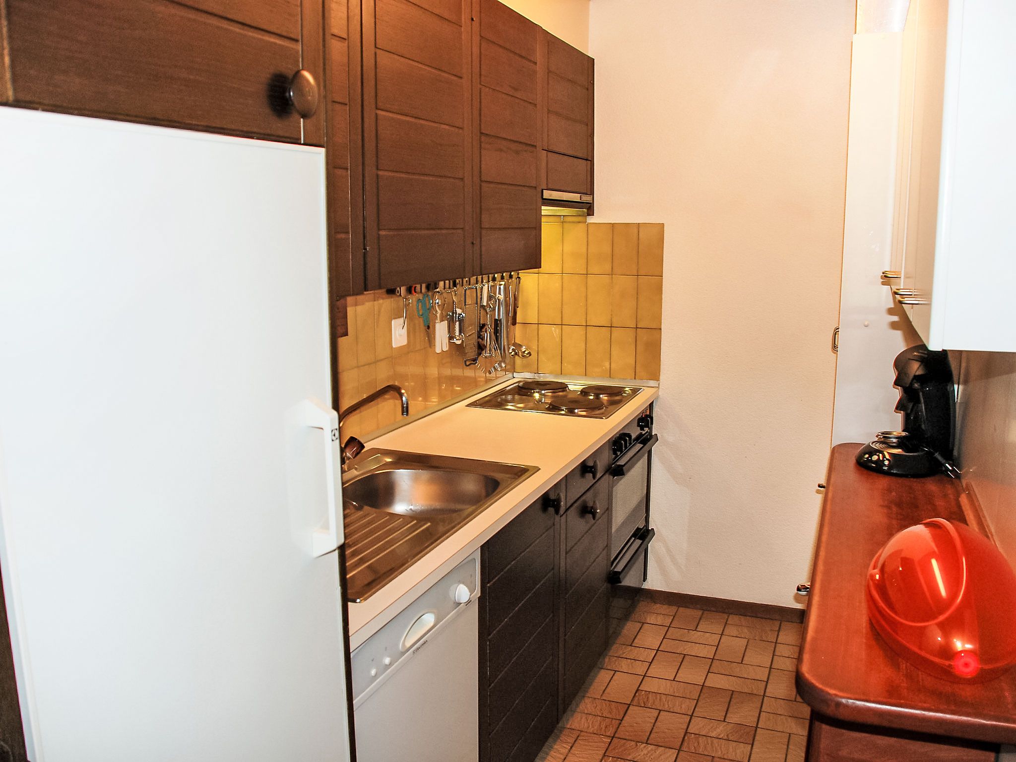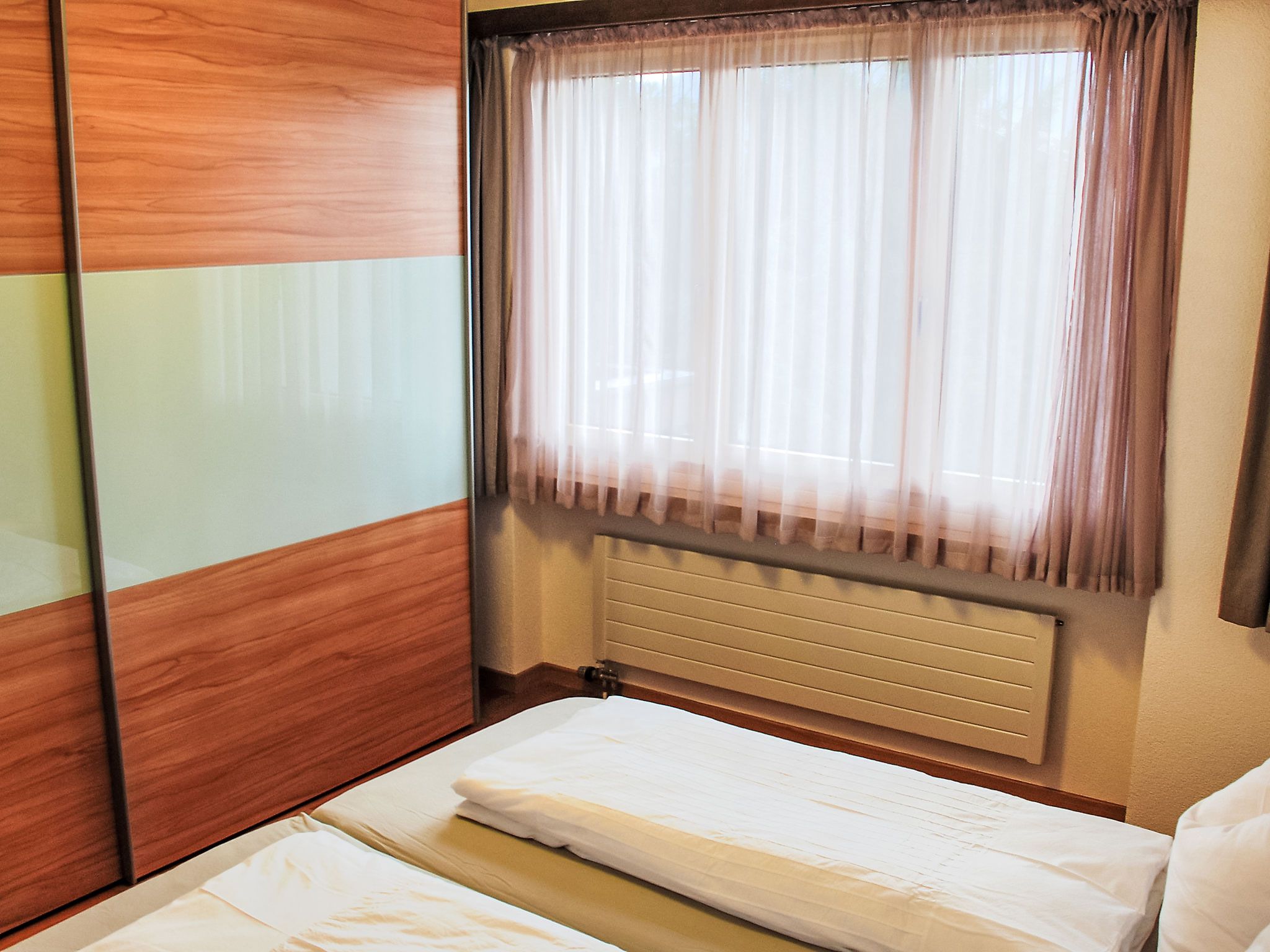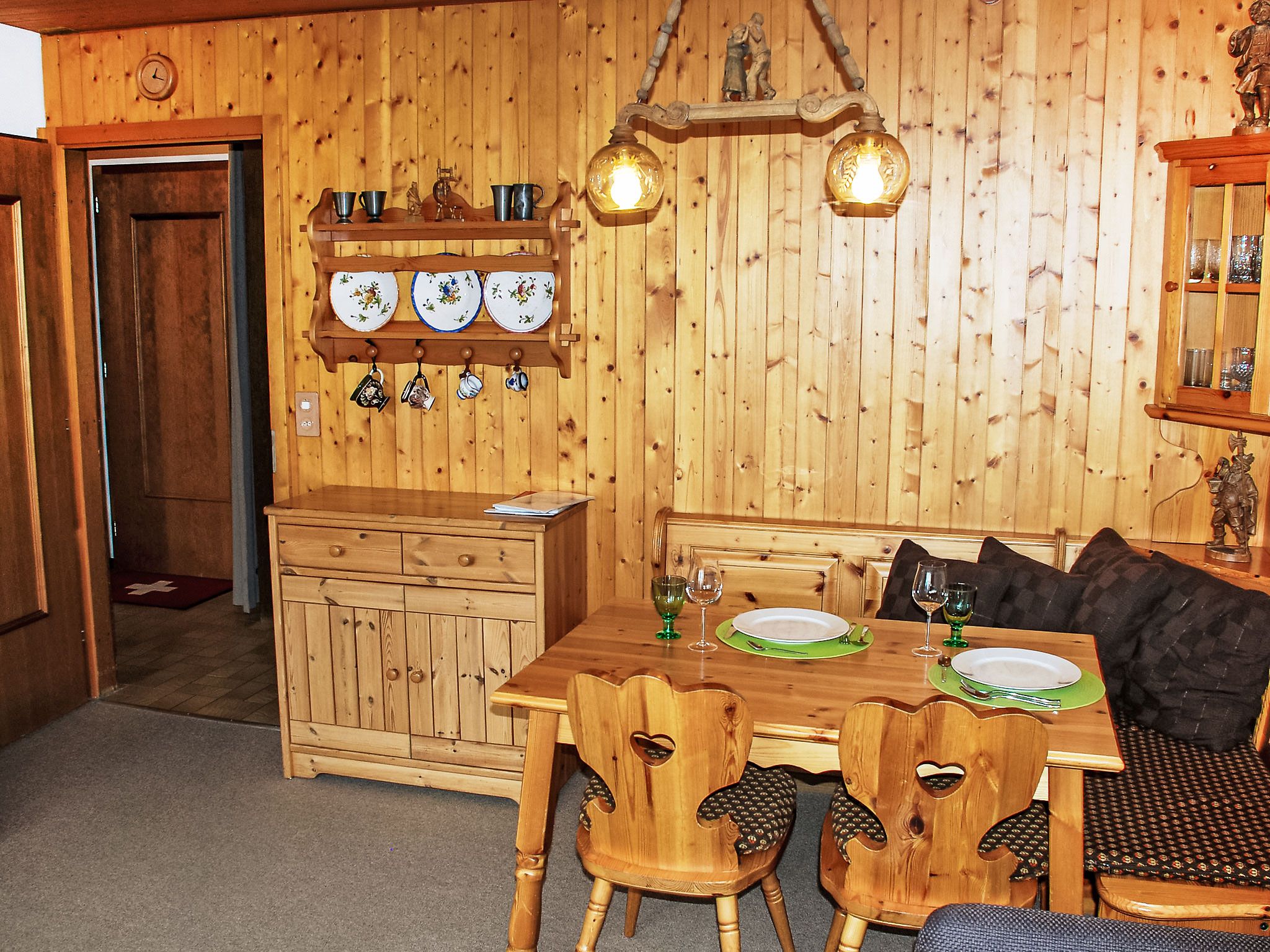 2-Zimmer-Wohnung 40 m2 im 2. Stock. Objekt geeignet für 2 Erwachsene + 2 Kinder. Zweckmässig und gemütlich eingerichtet: Wohn-/Esszimmer mit 1 Doppeldiwanbett und Kabel-TV (Flachbildschirm), Radio. Ausgang zum Balkon. 1 Doppelzimmer mit 1 Doppelbett (2 x 90 cm). Kleine Küche (Backofen, Geschirrspüler, 4 Glaskeramikplatten, Wasserkocher). Bad/WC. Balkon, Südlage. Sicht auf die Berge und die Landschaft. Zur Verfügung: Internet (Wireless LAN, gratis). Garage (1 Auto) beim Haus. Bitte beachten: Nichtraucher-Unterkunft.