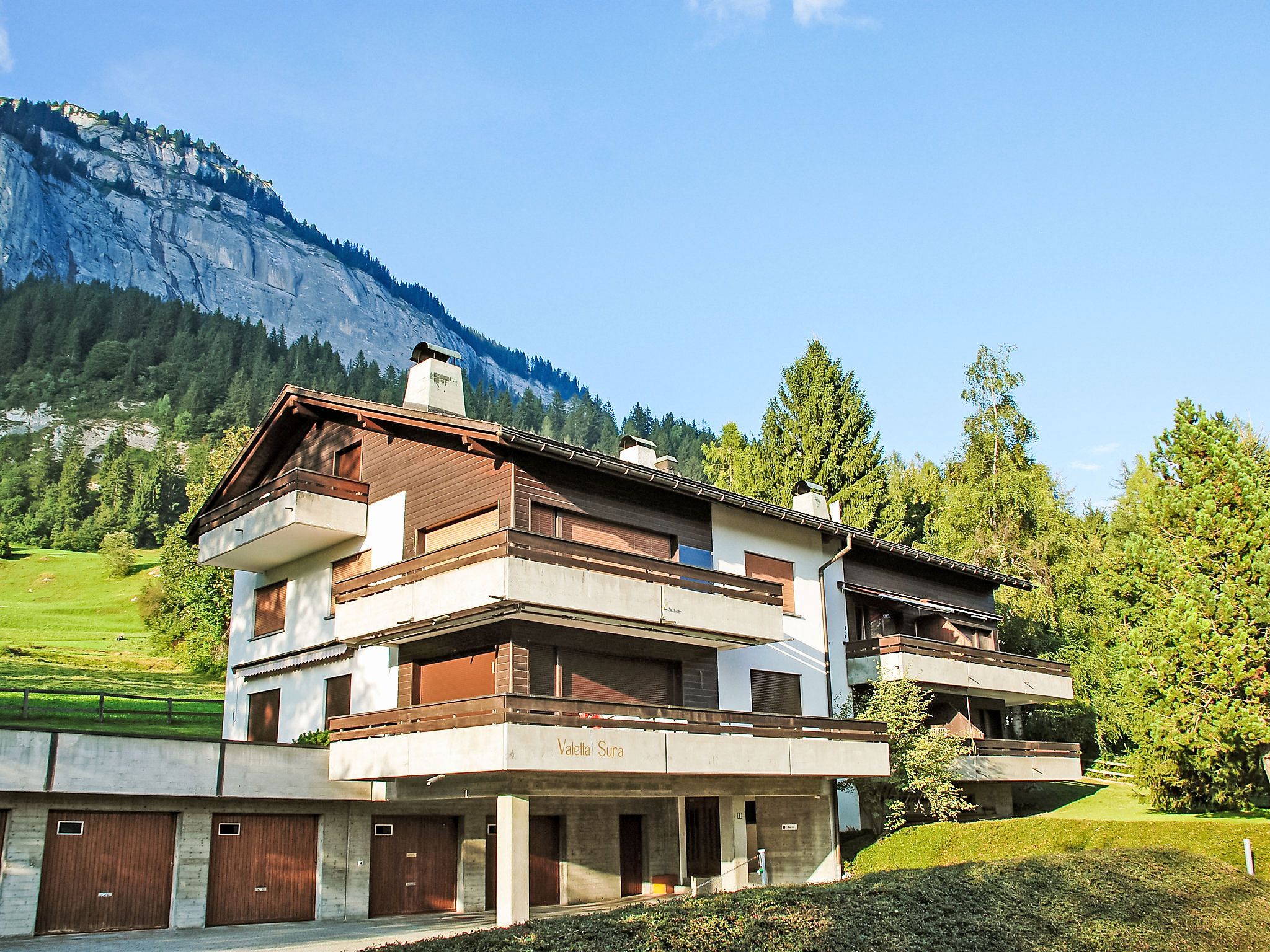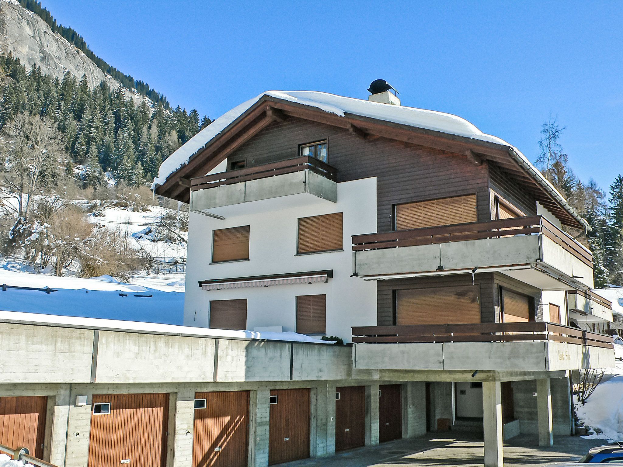 Flims 21 km von Chur: Mehrfamilienhaus Valetta Sura, auf 3 Stockwerken, umgeben von Bäumen und Wiesen. Am Ortsrand, 600 m vom Zentrum von Flims Dorf, im Bezirk Surselva, ruhige, sonnige, erhöhte Lage, 1 km vom Skigebiet, in einer Sackgasse, im Grünen. Zur Mitbenutzung: Grundstück. Im Hause: Skiraum, Zentralheizung, Waschmaschine (zur Mitbenutzung). Steile Zufahrt bis zum Haus. Im Winter 4x4 empfohlen. Einzelgarage beim Haus, öffentliche Parkplätze 300 m. Parkplatz/Garage nur für kleine - mittlere Fahrzeuge geeignet. Maße: Höhe 195 cm Breite 235 cm. Einkaufsgeschäft, Lebensmittelgeschäft, Restaurant 500 m, Bäckerei, Café 600 m, Zentrum zu Fuss in 3 Minuten erreichbar, Bushaltestelle Flims Dorf, Post 450 m, Bahnstation Chur 24 km. Golfplatz (18 Loch) 9.1 km, Wanderwege ab Haus 100 m, Sessellift 1 km, Skisportanlagen 1 km, Skipisten 1 km, Schlittelbahn 500 m, Langlaufloipe 1 km, Eisfeld 1 km, Kinderspielplatz 500 m. Nahe gelegene Sehenswürdigkeiten: Rheinschlucht, Chur. Bekannte Skigebiete sind gut erreichbar: Flims - Laax. Bekannte Seen in der Umgebung sind gut erreichbar: Crestasee, Caumasee. Wandergebiete: Ela Parc.