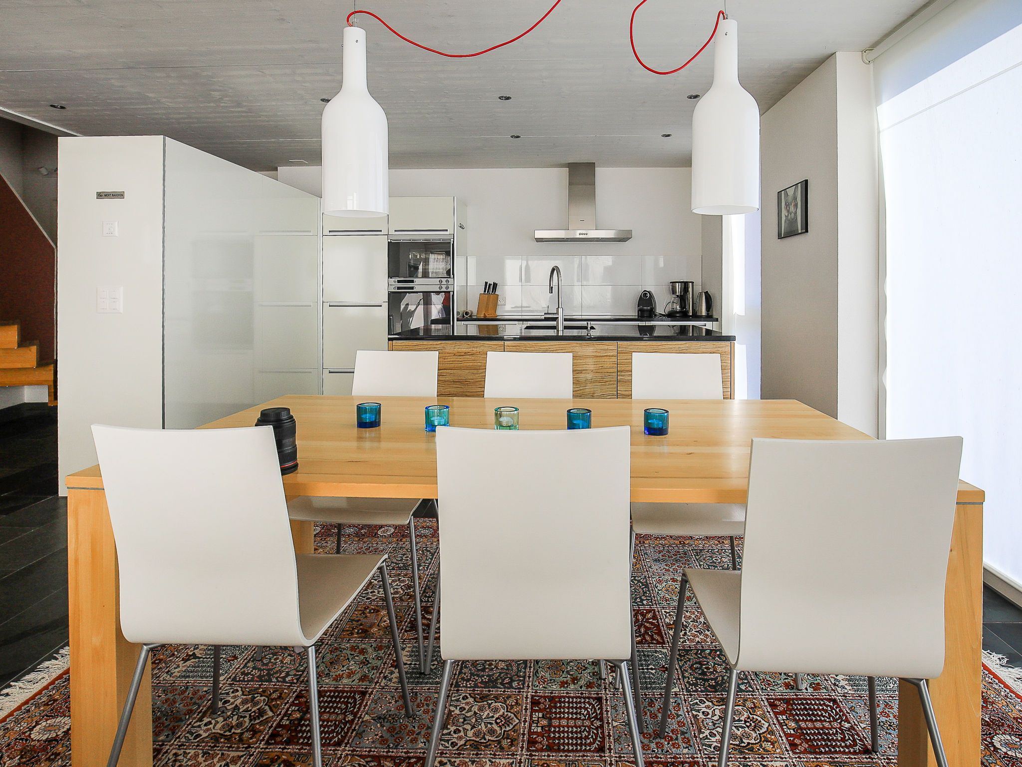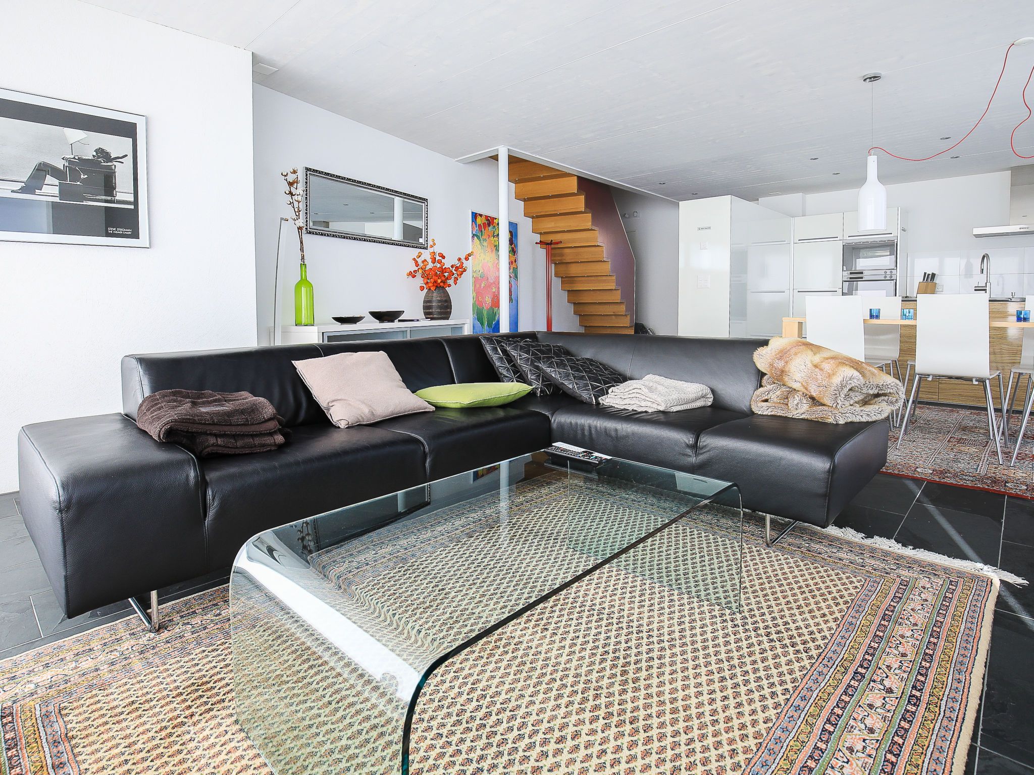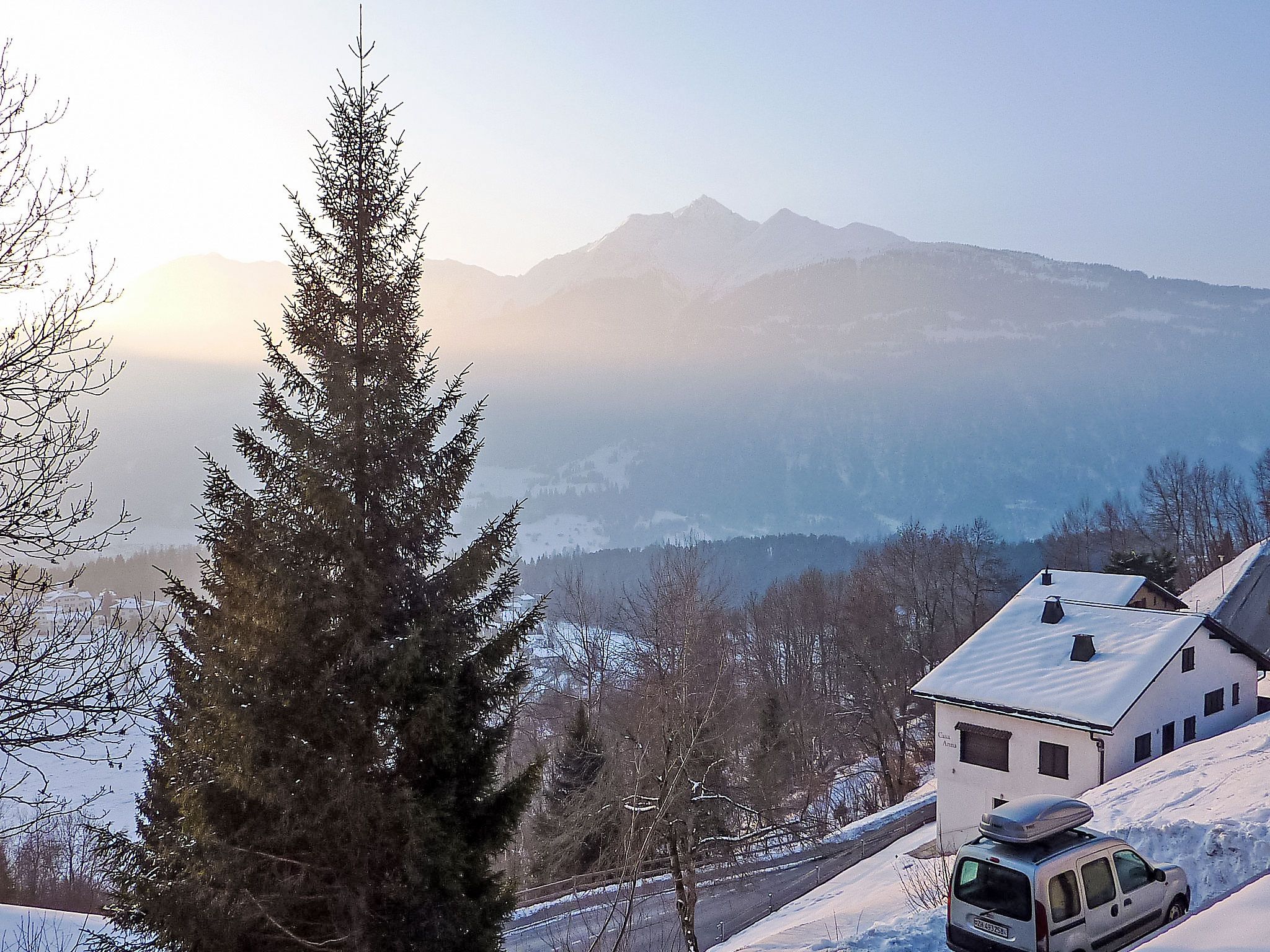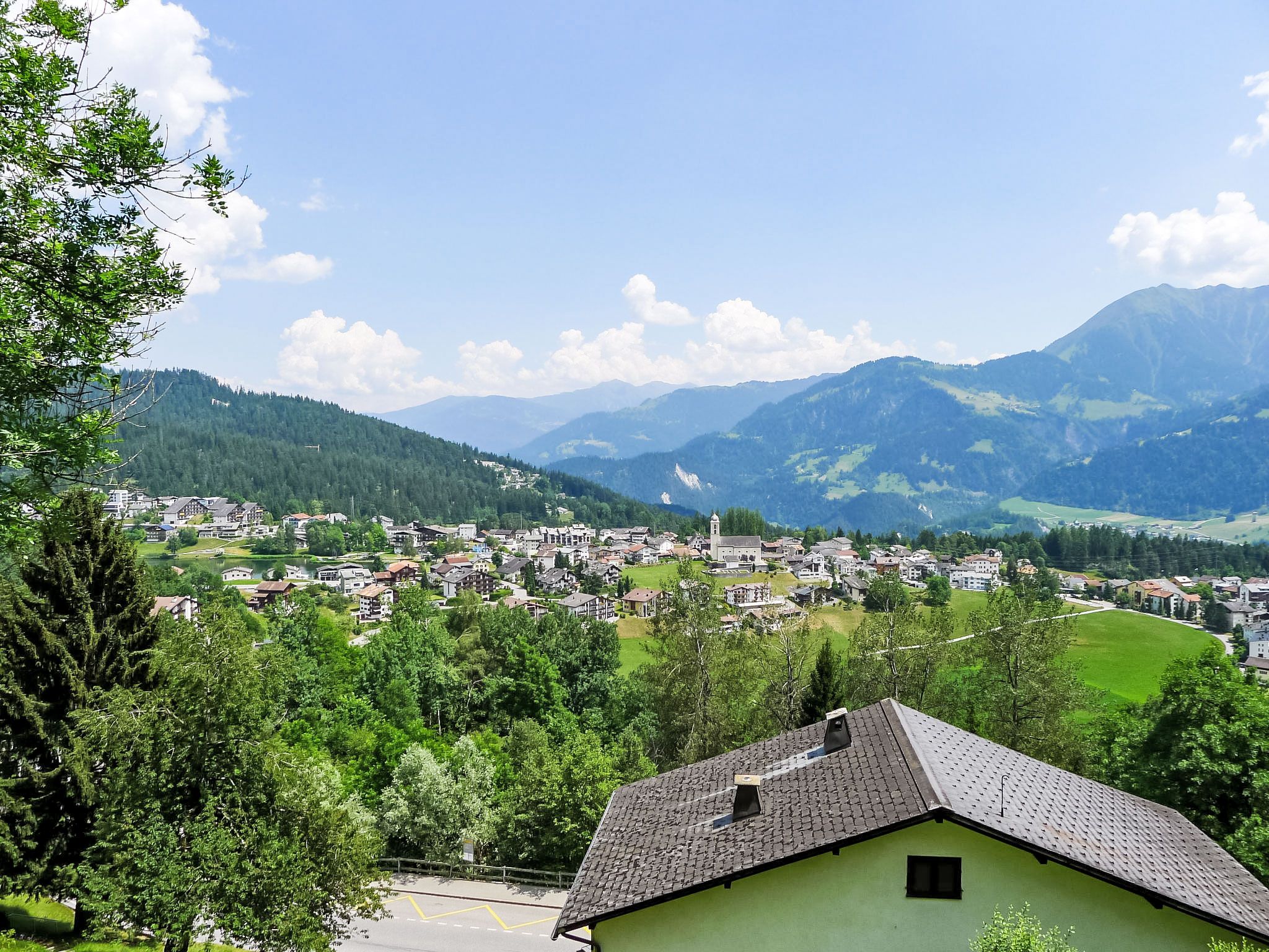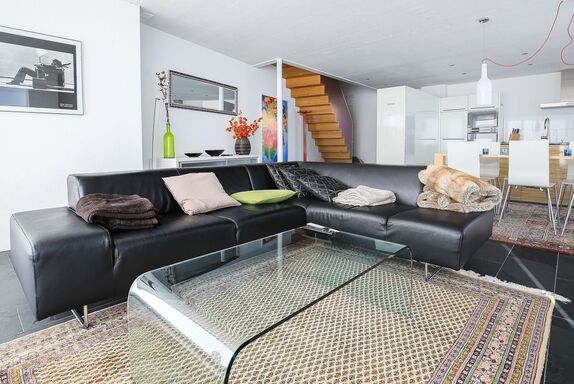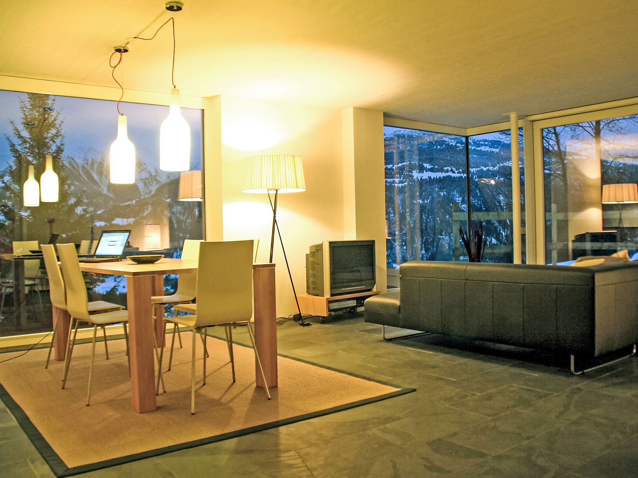 4-Zimmer-Maisonette-Wohnung 115 m2 auf 2 Stockwerken, im Obergeschoss. Komfortabel und modern eingerichtet: Wohn-/Esszimmer mit Kabel-TV und Flachbildschirm. Ausgang zum Gartensitzplatz. Offene Küche (Backofen, Geschirrspüler, 4 Glaskeramikplatten, Tiefkühler). Obergeschoss: 1 Zimmer mit 1 Doppelbett und Dusche/WC. 1 Zimmer mit 1 Doppelbett. 1 Zimmer mit 1 Bett. Bad/WC. Bodenheizung. Gartensitzplatz überdacht. Terrassenmöbel, Gartengrill. Schöne Sicht auf die Berge, das Tal und die Ortschaft. Zur Verfügung: Internet (WLAN, gratis). Parkplatz beim Haus. Bitte beachten: für Kleinkinder nicht geeignet. Nichtraucher-Unterkunft. 55408