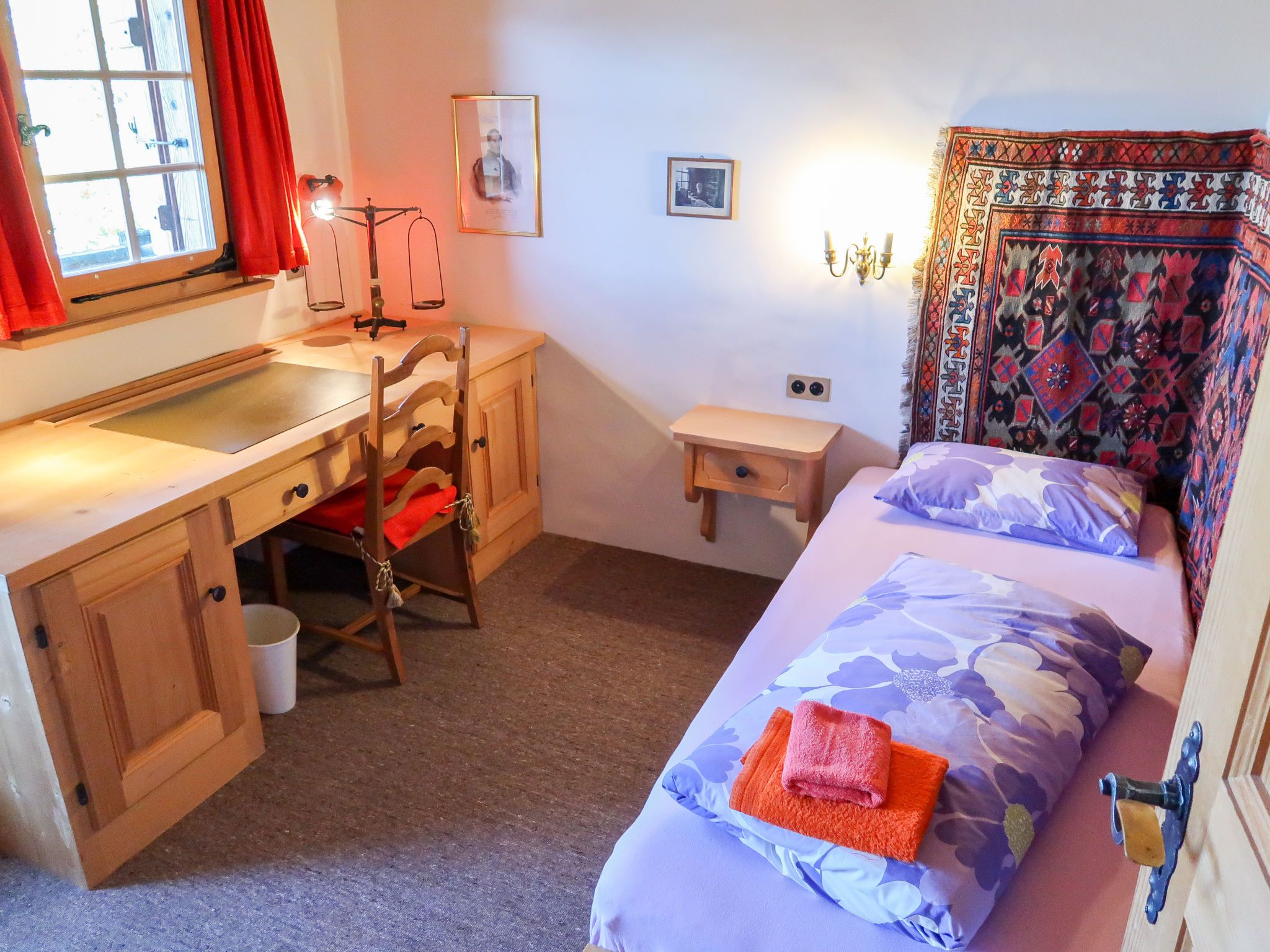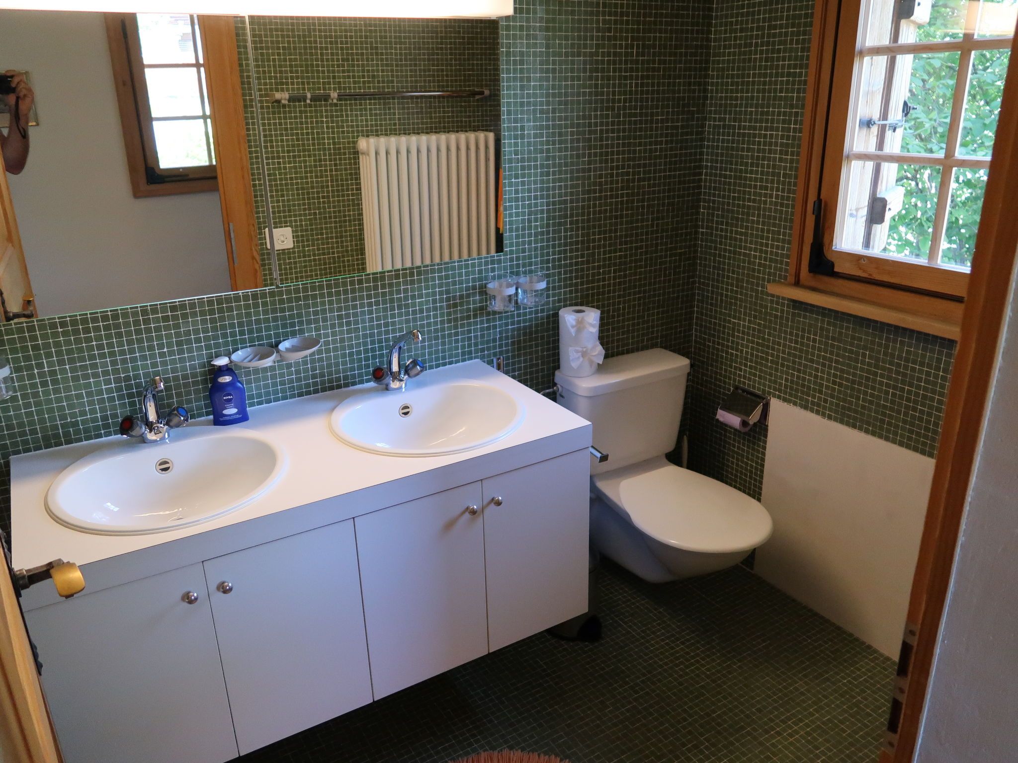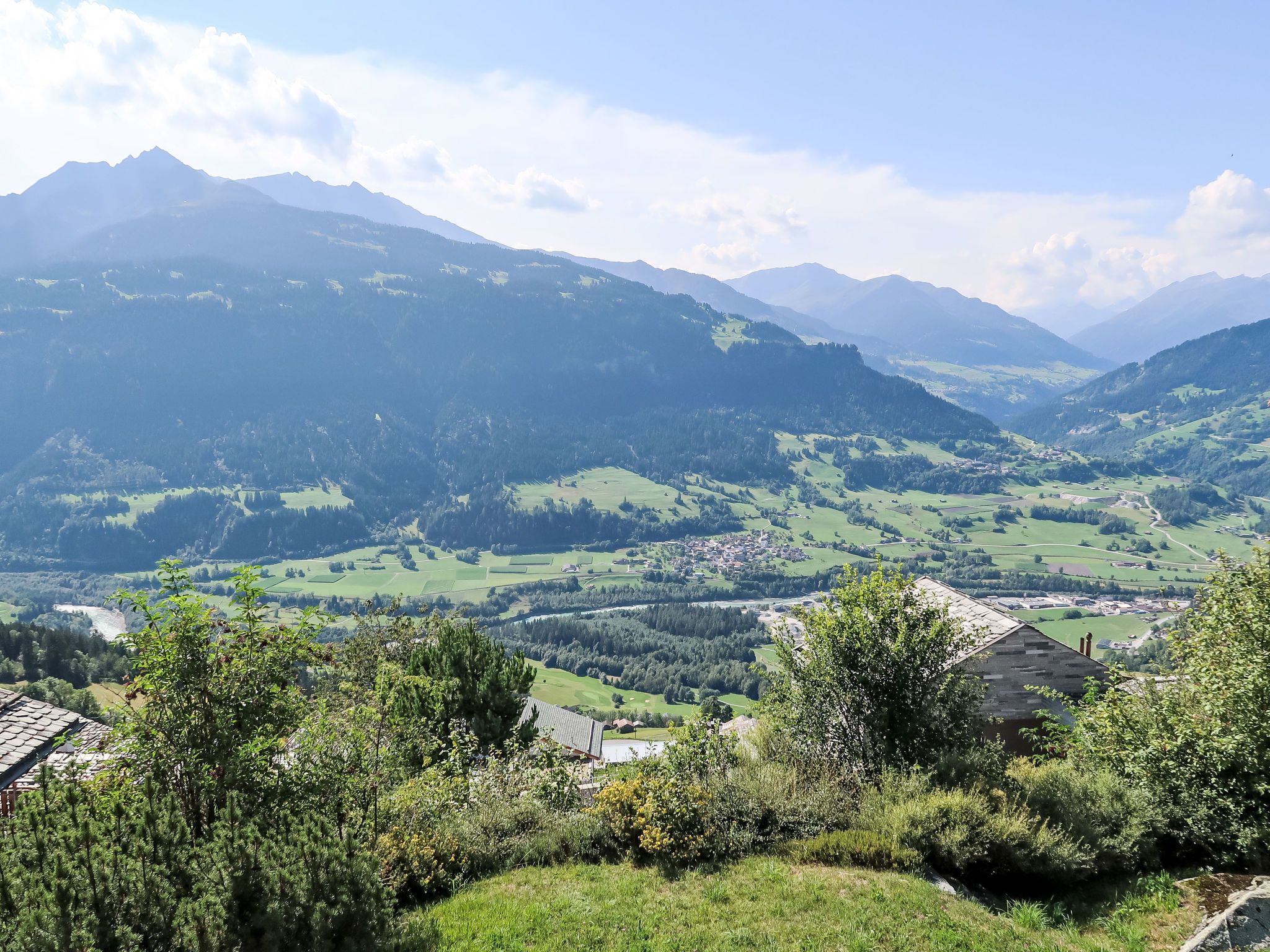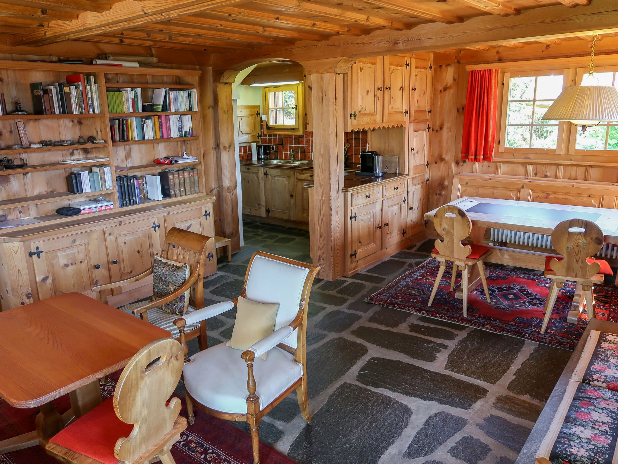 5-Zimmer-Chalet 126 m2 auf 2 Stockwerken. Rustikal und gemütlich eingerichtet: Wohn-/Esszimmer mit offenem Kamin (nur Deko), Essecke und Radio. Ausgang zum Gartensitzplatz. Offene Küche (Backofen, Geschirrspüler, 4 Glaskeramikplatten, Tiefkühler, elektrische Kaffeemaschine, Kapseln für die Kaffeemaschine (Nespresso), Racletteofen, Fondue Set (Käse)). Obergeschoss: 1 Zimmer mit 2 Betten. Ausgang zum Balkon, Richtung Süden. 1 Zimmer mit 2 Betten. Ausgang zum Balkon, Richtung Süden und Richtung Westen. 1 Zimmer mit 2 Betten. 1 Zimmer mit 1 Bett. Ausgang zum Balkon, Richtung Westen. 2 Bäder/WC, Doppelwaschbecken. 2 Balkone. Sehr schöne Panoramasicht auf die Berge, das Tal und die Landschaft. Zur Verfügung: Waschmaschine. Internet (Wireless LAN, gratis). Parkplatz, Garage beim Haus. Bitte beachten: Nichtraucher-Unterkunft.