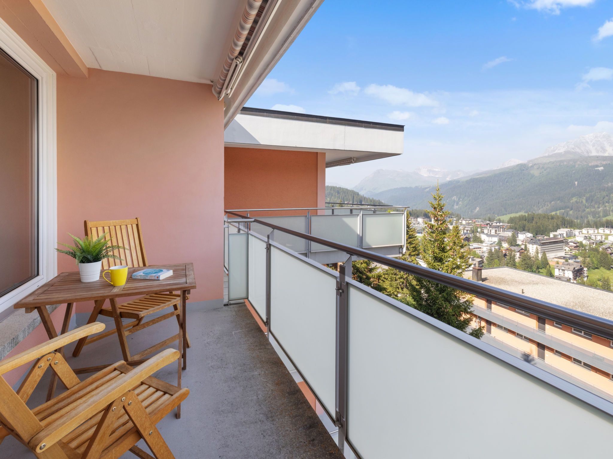 Promenade Apt 409, 1-Zimmer-Wohnung 28 m2 im 4. Stock. Gemütlich eingerichtet: Wohn-/Esszimmer mit 2 Wandschrankbetten und Sat-TV (Flachbildschirm), Radio. Ausgang zum Balkon. Kochnische (3 Kochplatten, Backofen, Geschirrspüler). Sitzbad/WC. Balkon, Ostlage. Balkonmöbel. Schöne Sicht auf die Berge, die Landschaft und die Ortschaft. Zur Verfügung: Internet (WLAN, gratis). Bitte beachten: Nichtraucher-Unterkunft.