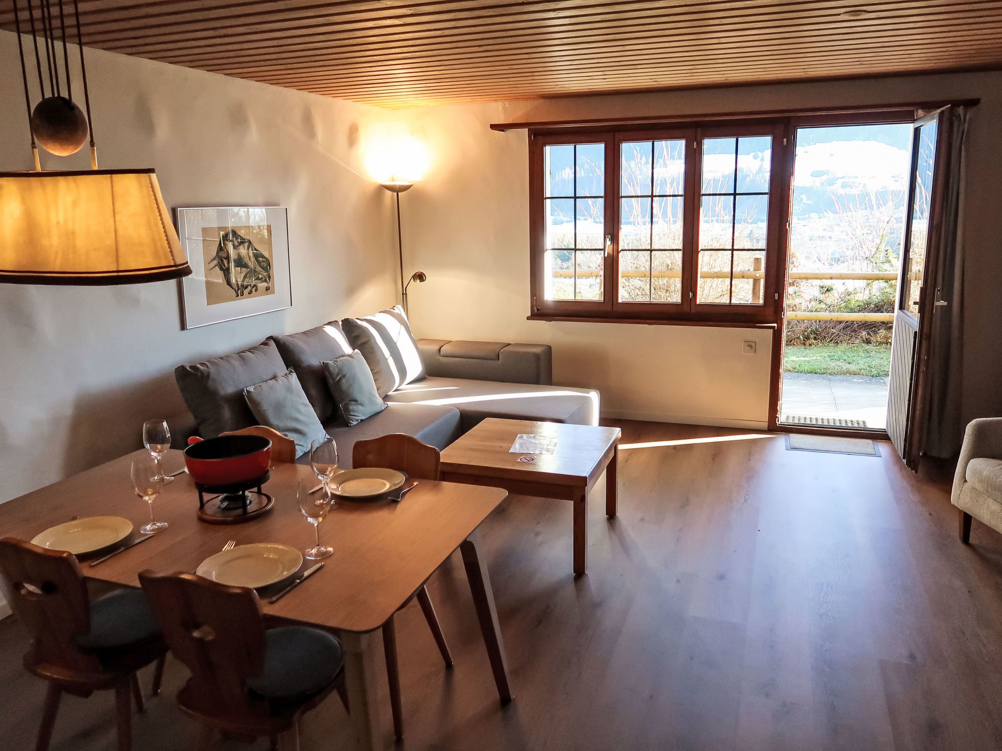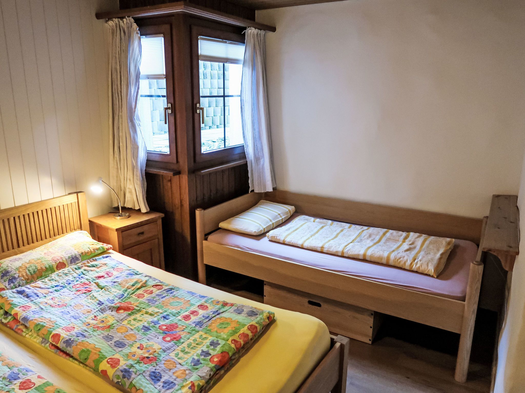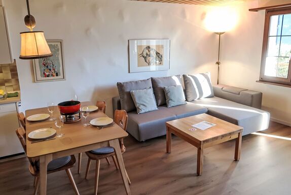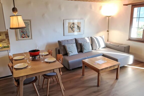 Wohnung Nr.2, 2-Zimmer-Wohnung 62 m2, im Erdgeschoss. Renoviert im Jahre 2024, komfortabel und gemütlich eingerichtet: Wohn-/Esszimmer mit 1 Doppeldiwanbett und Sat-TV (Flachbildschirm). Ausgang zum Gartensitzplatz. 1 Zimmer mit 3 Betten. Offene Küche (Backofen, Geschirrspüler, 4 Glaskeramikplatten, Toaster, Wasserkocher, elektrische Kaffeemaschine, Kapseln für die Kaffeemaschine (Nespresso) extra, Racletteofen, Fondue Set (Käse)). Dusche/WC. Gartensitzplatz. Terrassenmöbel, Abstellkammer. Schöne Sicht auf die Berge, das Tal und die Landschaft. Zur Verfügung: Waschmaschine, Kinderhochstuhl, Babybett, Haartrockner. Internet (WLAN, gratis). Parkplatz beim Haus. Bitte beachten: Nichtraucher-Unterkunft. Maximal 1 Haustier/Hund erlaubt.