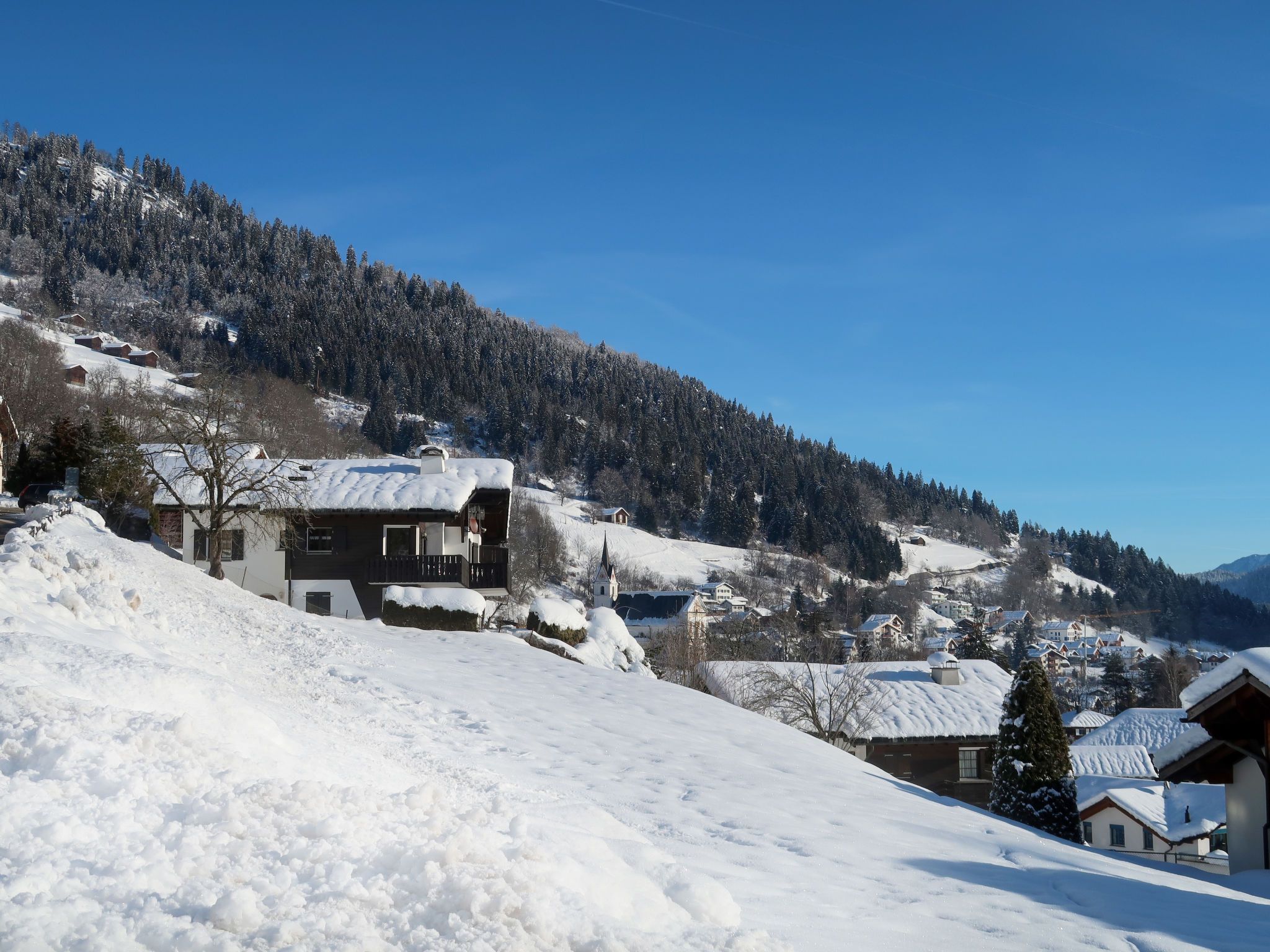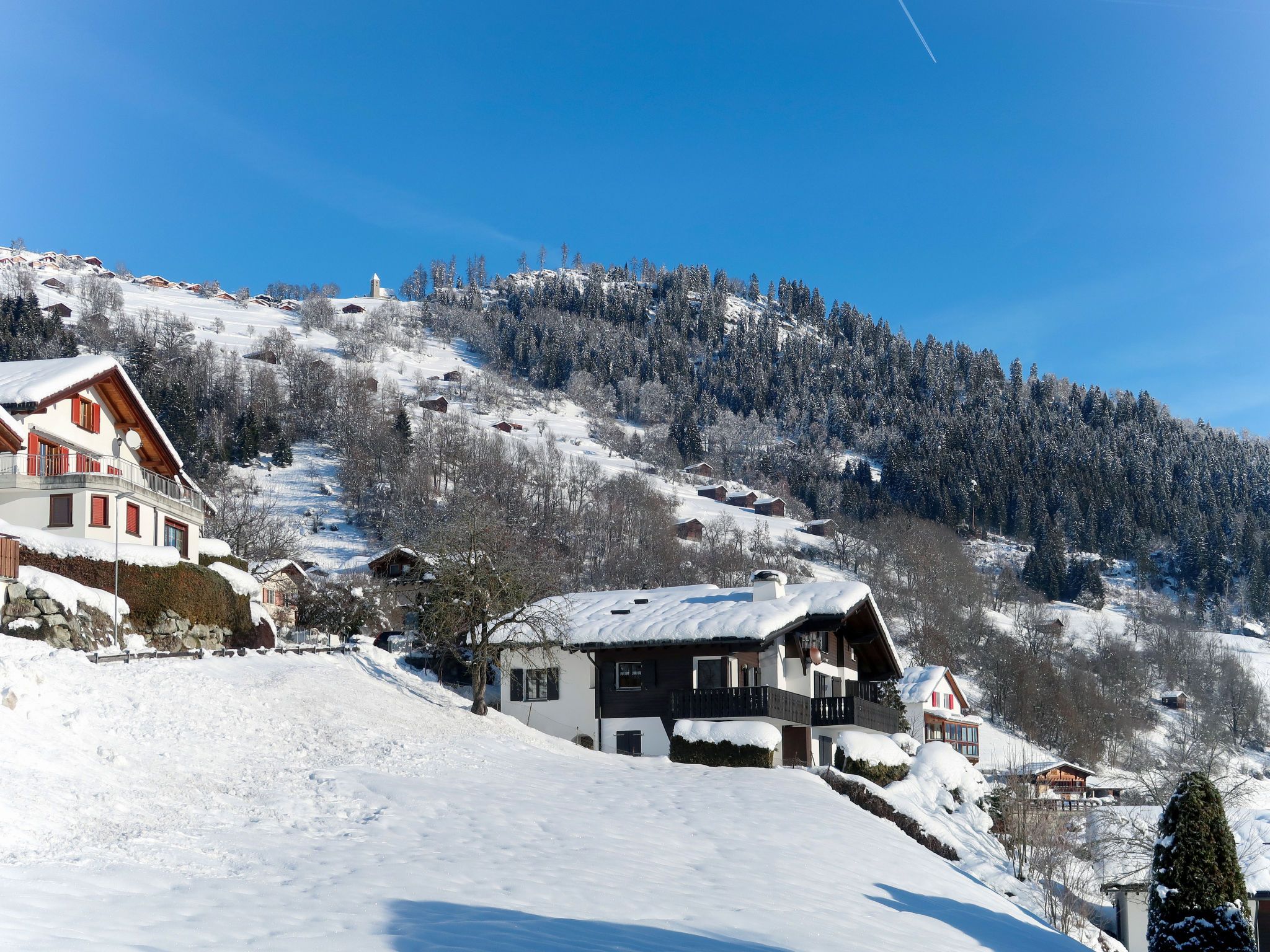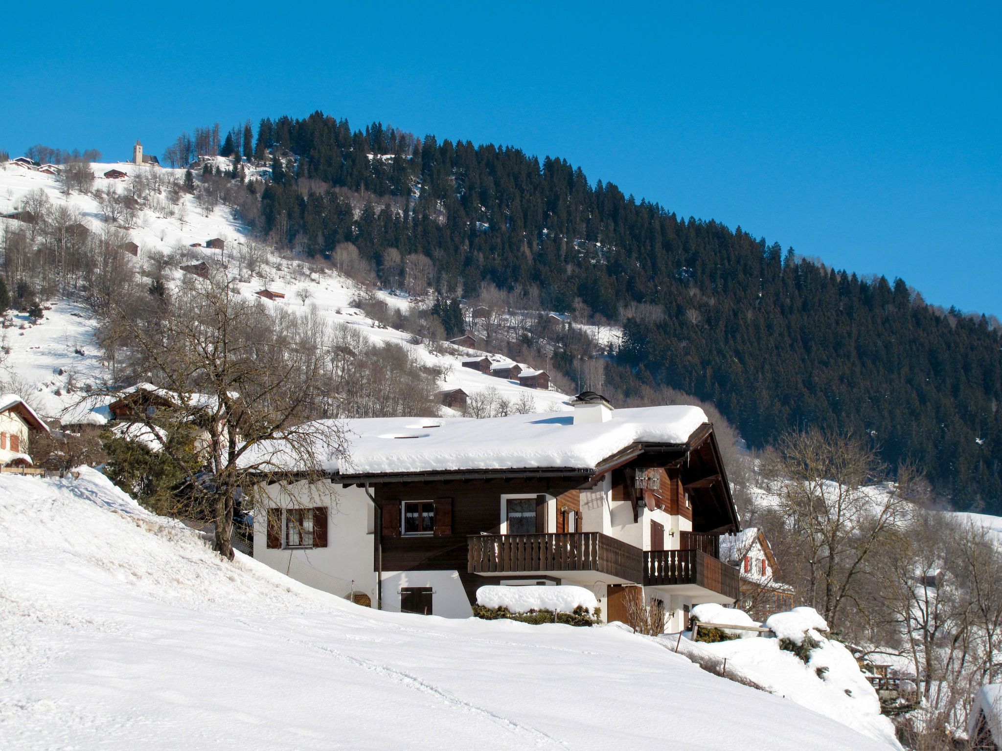 Schluein 4 km von Laax: Gemütliches Mehrfamilienhaus Muotta Sulegl, 770 m.ü.M., auf 3 Stockwerken. Im Ort, 400 m vom Zentrum von Schluein, ruhige, sonnige Lage am Hang, 6 km vom Skigebiet. Zur Mitbenutzung: Grundstück. Im Hause: Sauna (extra). Skiraum, Zentralheizung. Zufahrt bis zum Haus. Treppenweg bis zum Haus. Parkplatz beim Haus. Einkaufsgeschäft 2 km, Supermarkt 2 km, Restaurant 400 m, Bushaltestelle 400 m, Bahnstation Ilanz 4 km. Golfplatz (18 Loch) 5 km, Luftseilbahn 6 km, Skilift 6 km, Sessellift 6 km, Skisportanlagen 6 km, Skibushaltestelle 400 m, Skischule 6 km, Schlittelbahn 6 km, Langlaufloipe 5 km, Kinderspielplatz 4 km. Nahe gelegene Sehenswürdigkeiten: Rheinschlucht 5 km. Bekannte Skigebiete sind gut erreichbar: Weisse Arena Flims/Laax 6 km. Bekannte Seen in der Umgebung sind gut erreichbar: Caumasee 10 km, Laaxersee 9 km, Crestasee 12 km.