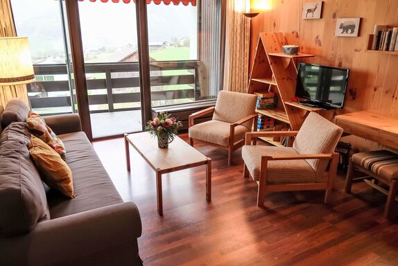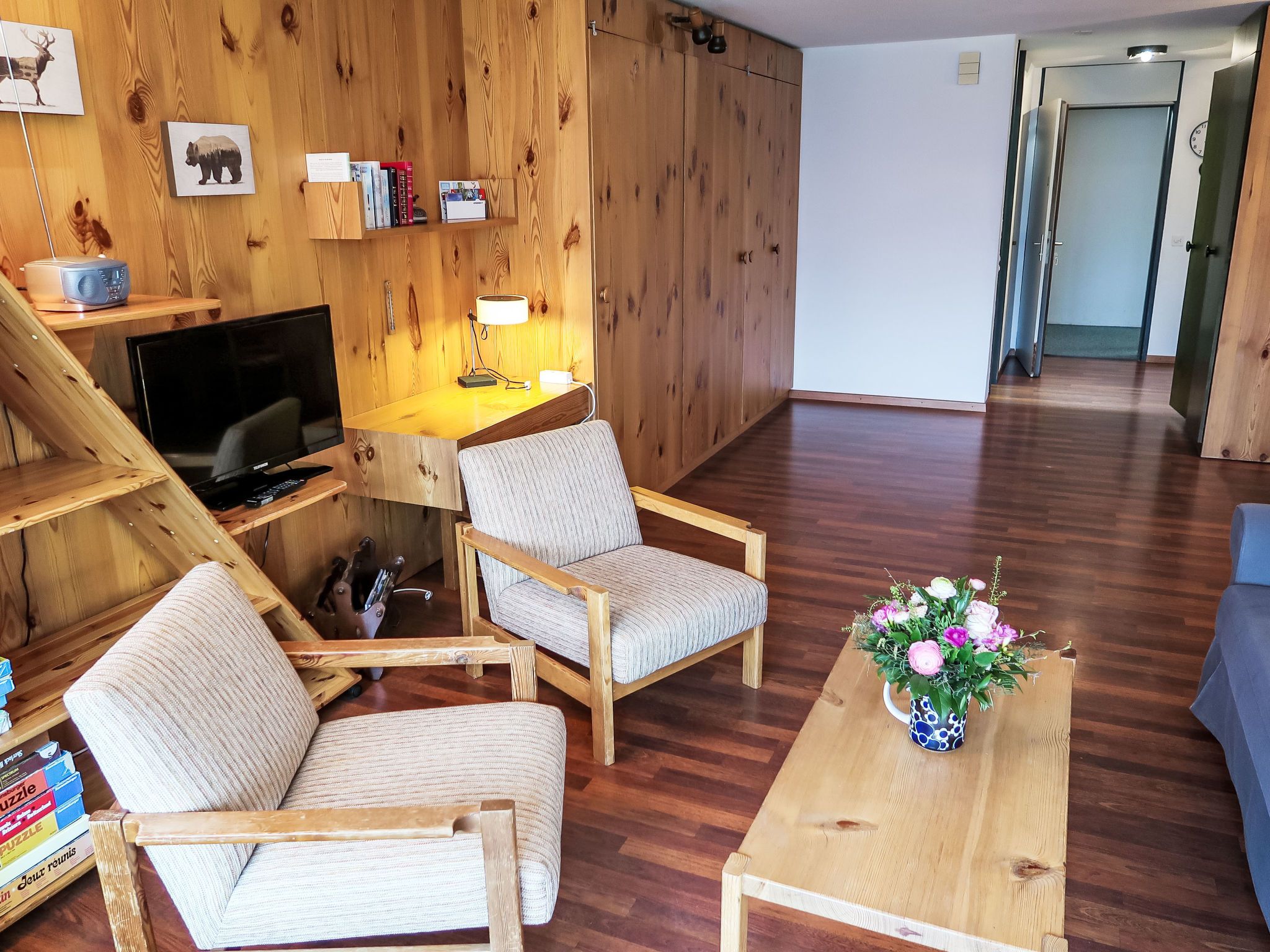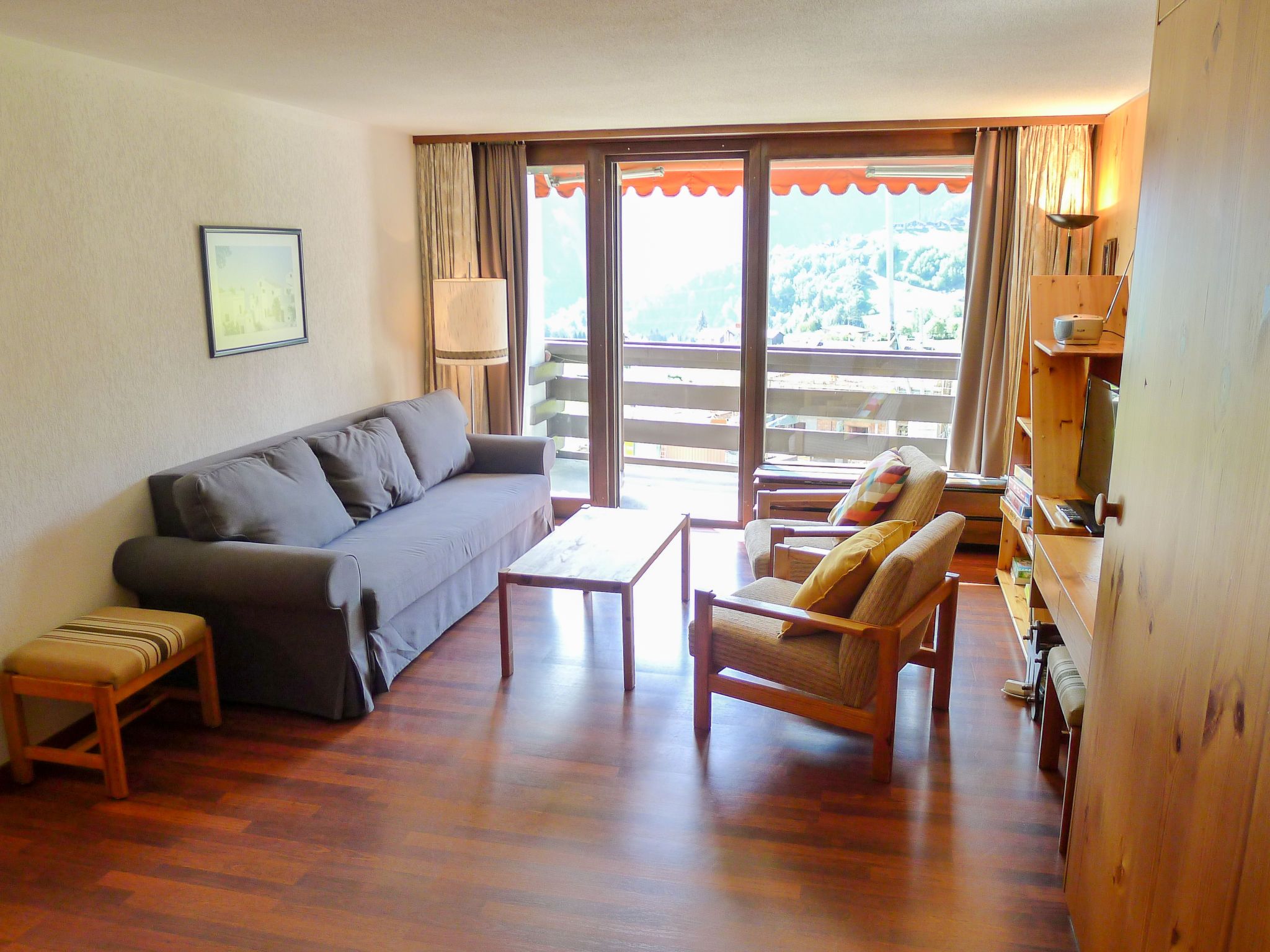 Apt B 044, 2-Zimmer-Wohnung 62 m2 im 4. Stock. Einfach und zweckmässig eingerichtet: Wohn-/Esszimmer mit 2 Wandschrankbetten und Sat-TV (Flachbildschirm). Ausgang zum Balkon. 1 Zimmer mit 2 Betten. Ausgang zum Balkon. Kleine Küche (4 Kochplatten). Bad/WC. Balkon, Südlage. Balkonmöbel. Schöne Sicht auf die Berge, die Landschaft und Medelsergletscher. Zur Verfügung: Internet (Wireless LAN, gratis). Maximal 1 Haustier/Hund erlaubt.