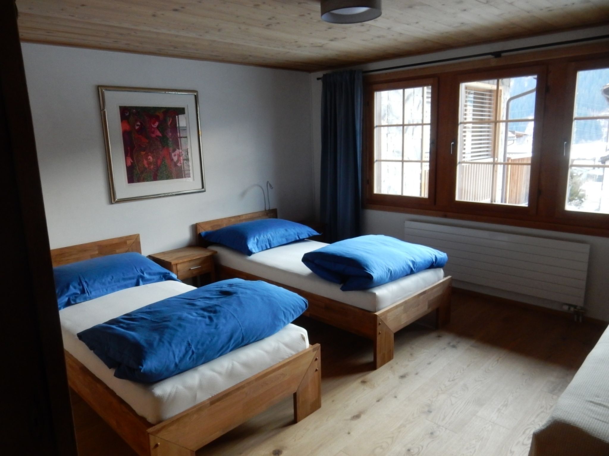 95 m2. Weitere Angaben des Anbieters: Neumöblierte und renovierte (2016) 3.5 Zimmer-Wohnung mit schöner Küche. Grosses Wohn- und Esszimmer mit cheminée, Radio/TV und WLAN. 1 Schlafzimmer mit Doppelbett, 1 Schlafzimmer mit 2 Einzelbetten und 1 Zusatzbett. Badzimmer mit Dusche und WC. Waschmaschine/Tumbler, ski- und Skischuhtrockner, Veloraum. Grosse Terrasse mit Tisch und Liegestühlen und grosser Garten. Bad-, Küchen- und Bettwäsche vorhanden und inbegriffen. Haustiere nur nach vorgängiger Absprache mit dem Vermieter möglich. Bodenbelag: Bad: Keramik, Küche+Gang: Vinyl, Rest: Holz Die Bad-, Küchen- und Bettwäsche ist vorhanden und inbegriffen. Haustiere nur nach vorgängiger Absprache mit dem Vermieter möglich.