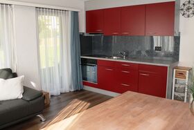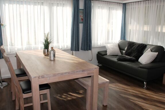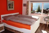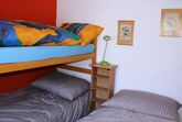 60 m2. 1 Haustier/Hund erlaubt. Weitere Angaben des Anbieters: 3 Zimmer-Wohnung im Erdgeschoss an Südlage. Gemütlich eingerichtet: Wohn-/Esszimmer mit Esstisch und Sat-TV und W-LAN. Offene Küche mit 4 Kochplatten, Backofen, Glaskeramikherd). 2 Schlafzimmer: 1 Zimmer mit Doppelbett und 1 Zimmer mit 1 Einzelbett und 1 Etagenbett (2 Betten). Badezimmer mit Badwanne mit Duschmöglichkeit /WC. Grosser Gartensitzplatz mit Terrassenmöbel. Sicht auf die Berge und die Landschaft. Parkplatz vorhanden. Kurtaxen und Bettwäsche sind im Tagespreis inbegriffen. Bad- und Küchenwäsche vorhanden und inbegriffen. Bodenbelag: Parkett The tourist tax and bed linen are included in the daily rate. Bath and kitchen towels are provided and included. In the house is 1 dog allowed.