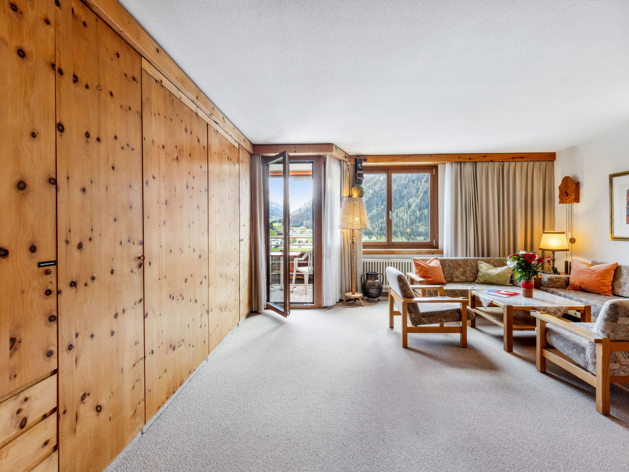 Davos: Appartementhaus Guardaval (Utoring). Im Ort, zentrale, ruhige, sonnige Lage am Hang, 1 km vom See, 300 m vom Skigebiet. Zur Mitbenutzung: Hallenbad. Im Hause: Empfang, Aufenthaltsraum mit TV, Wireless LAN, Sauna (extra). Spielzimmer, Fahrstuhl, Skiraum, Zentralheizung, Waschmaschine (zur Mitbenutzung). Brötchenservice und Getränkeservice. Schmale Zufahrt bis zum Haus. Parkplatz (überdacht, beschränkte Anzahl, extra), Gemeinschaftsgarage (extra). Einkaufsgeschäft 300 m, Restaurant 300 m, Bushaltestelle, Bahnstation Davos Dorf 400 m, Hallenbad 1 km, Badesee 1 km. Bergeisenbahn, Skisportanlagen, Skipisten, Skischule, Schlittelbahn 1.5 km, Langlaufloipe, Eisfeld 300 m. Bekannte Skigebiete sind gut erreichbar: Parsenn 300 m, Jakobshorn 1.5 km. Das Appartementhaus befindet sich oberhalb der Talstation der Parsennbahn und verfügt über eine herrliche Aussicht. Parkplatz + Garage (Reservierung bei Ankunft).
