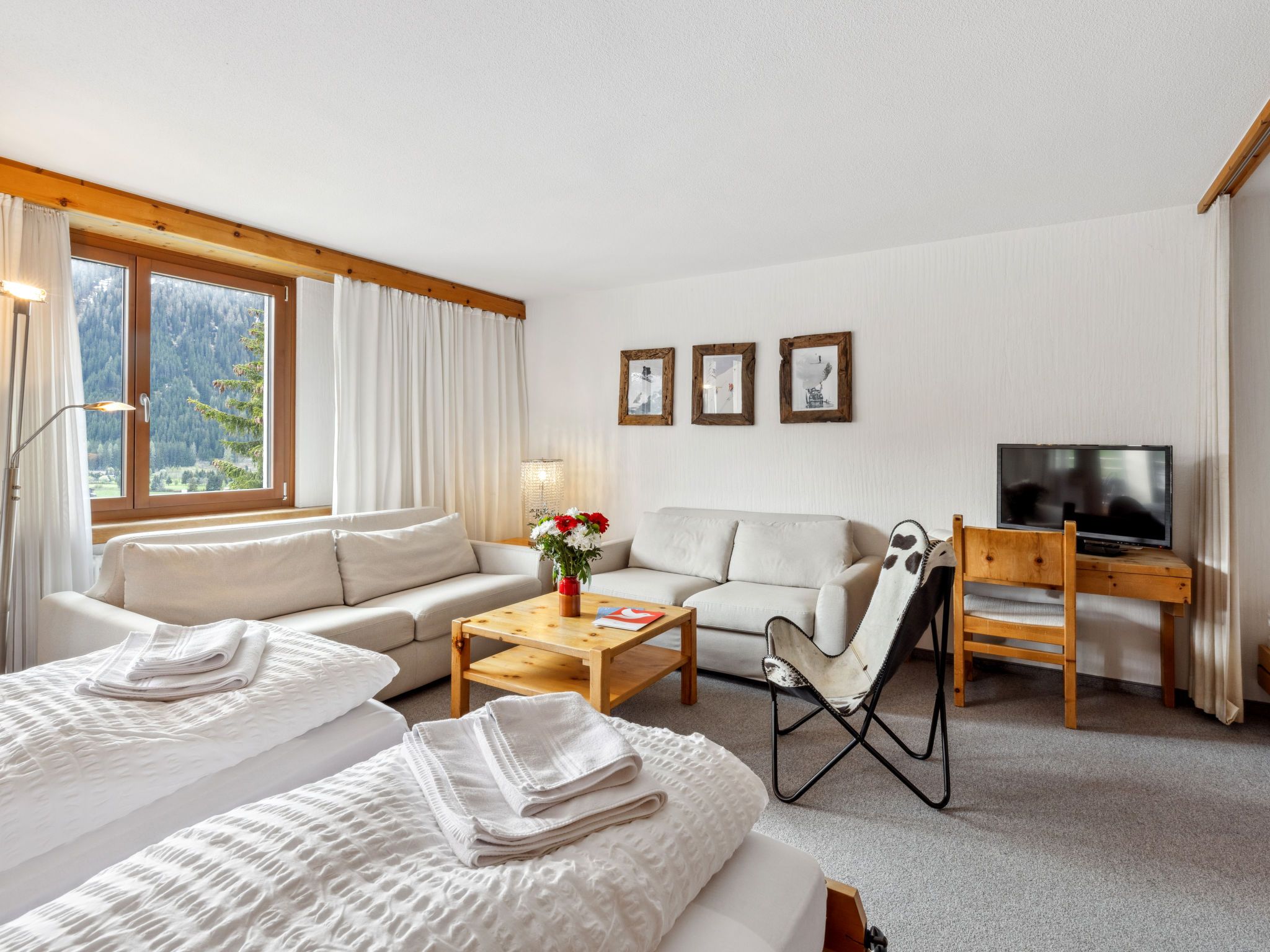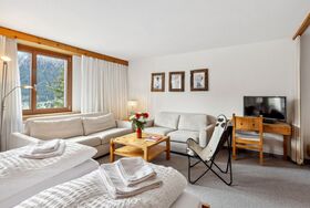 Davos: Appartementhaus Guardaval (Utoring). Im Ort, zentrale, ruhige, sonnige Lage am Hang, 1 km vom See, 300 m vom Skigebiet. Zur Mitbenutzung: Hallenbad. Im Hause: Empfang, Aufenthaltsraum mit TV, Wireless LAN, Sauna (extra). Spielzimmer, Fahrstuhl, Skiraum, Zentralheizung, Waschmaschine (zur Mitbenutzung). Brötchenservice und Getränkeservice. Schmale Zufahrt bis zum Haus. Parkplatz (überdacht, beschränkte Anzahl, extra), Gemeinschaftsgarage (extra). Einkaufsgeschäft 300 m, Restaurant 300 m, Bushaltestelle, Bahnstation Davos Dorf 400 m, Hallenbad 1 km, Badesee 1 km. Bergeisenbahn, Skisportanlagen, Skipisten, Skischule, Schlittelbahn 1.5 km, Langlaufloipe, Eisfeld 300 m. Bekannte Skigebiete sind gut erreichbar: Parsenn 300 m, Jakobshorn 1.5 km. Das Appartementhaus befindet sich oberhalb der Talstation der Parsennbahn und verfügt über eine herrliche Aussicht. Parkplatz + Garage (Reservierung bei Ankunft).