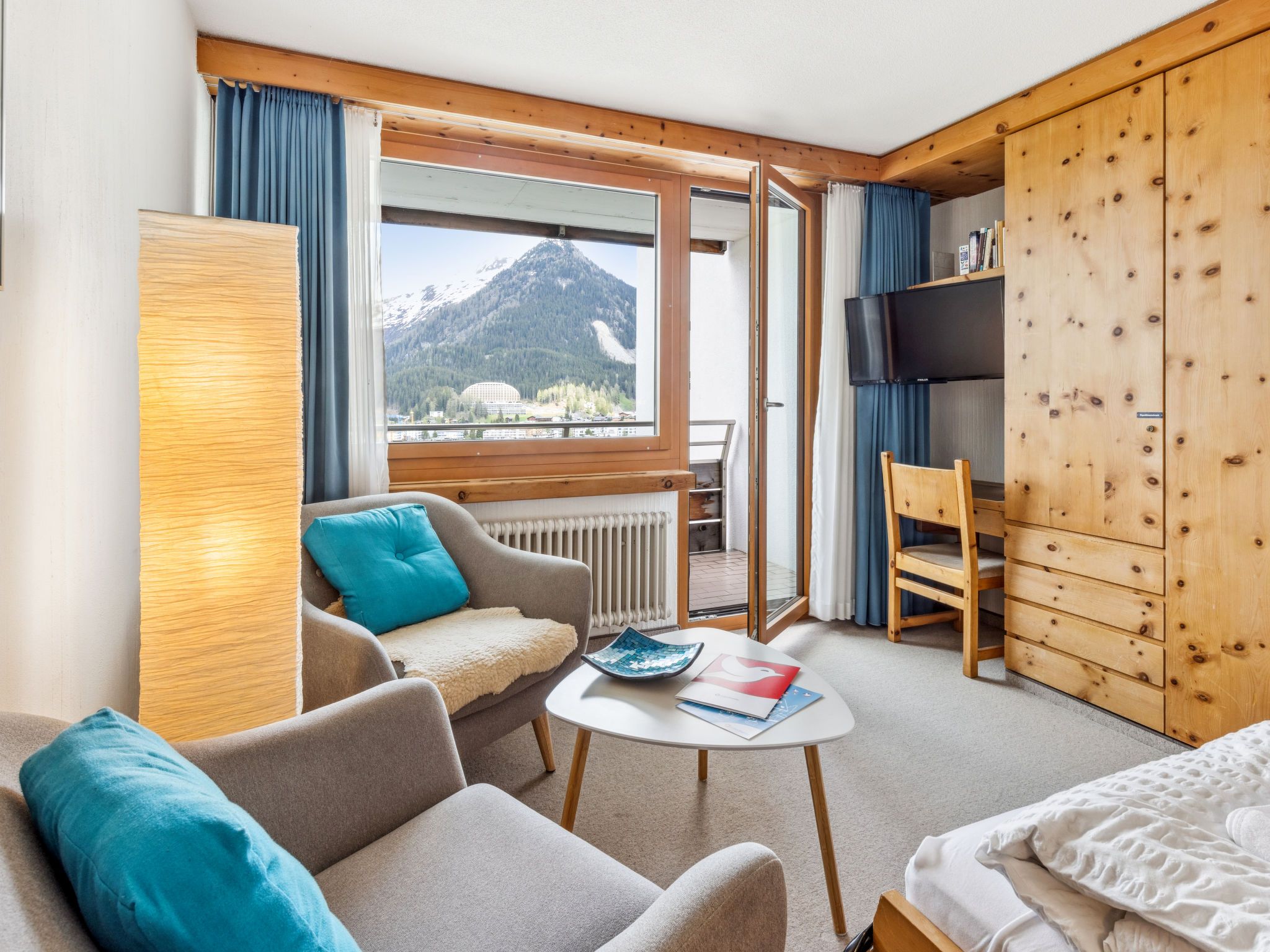Davos: Appartementhaus Guardaval (Utoring). Im Ort, zentrale, ruhige, sonnige Lage am Hang, 1 km vom See, 300 m vom Skigebiet. Zur Mitbenutzung: Hallenbad. Im Hause: Empfang, Aufenthaltsraum mit TV, Wireless LAN, Sauna (extra). Spielzimmer, Fahrstuhl, Skiraum, Zentralheizung, Waschmaschine (zur Mitbenutzung). Brötchenservice und Getränkeservice. Schmale Zufahrt bis zum Haus. Parkplatz (überdacht, beschränkte Anzahl, extra), Gemeinschaftsgarage (extra). Einkaufsgeschäft 300 m, Restaurant 300 m, Bushaltestelle, Bahnstation Davos Dorf 400 m, Hallenbad 1 km, Badesee 1 km. Bergeisenbahn, Skisportanlagen, Skipisten, Skischule, Schlittelbahn 1.5 km, Langlaufloipe, Eisfeld 300 m. Bekannte Skigebiete sind gut erreichbar: Parsenn 300 m, Jakobshorn 1.5 km. Das Appartementhaus befindet sich oberhalb der Talstation der Parsennbahn und verfügt über eine herrliche Aussicht. Parkplatz + Garage (Reservierung bei Ankunft).