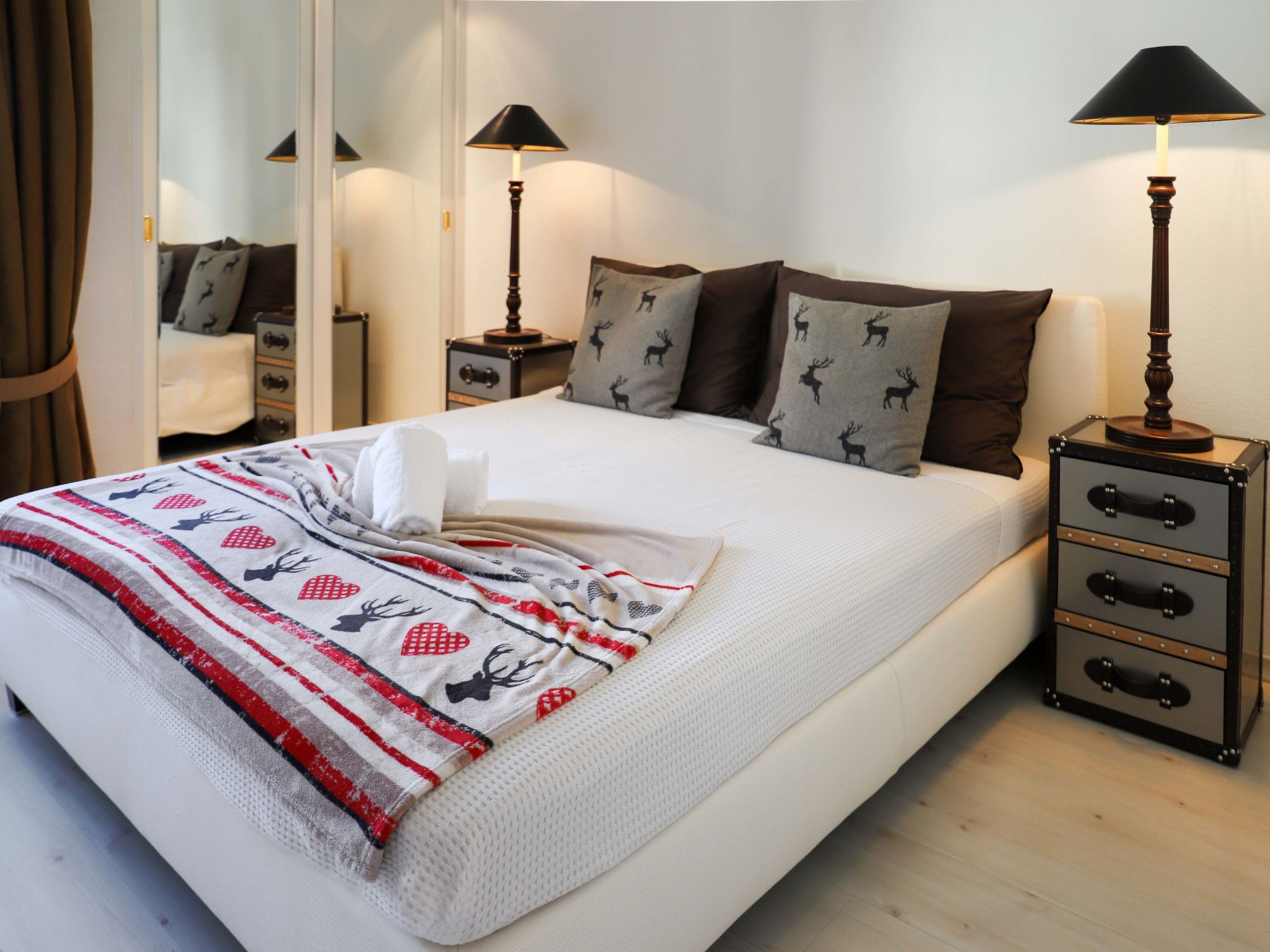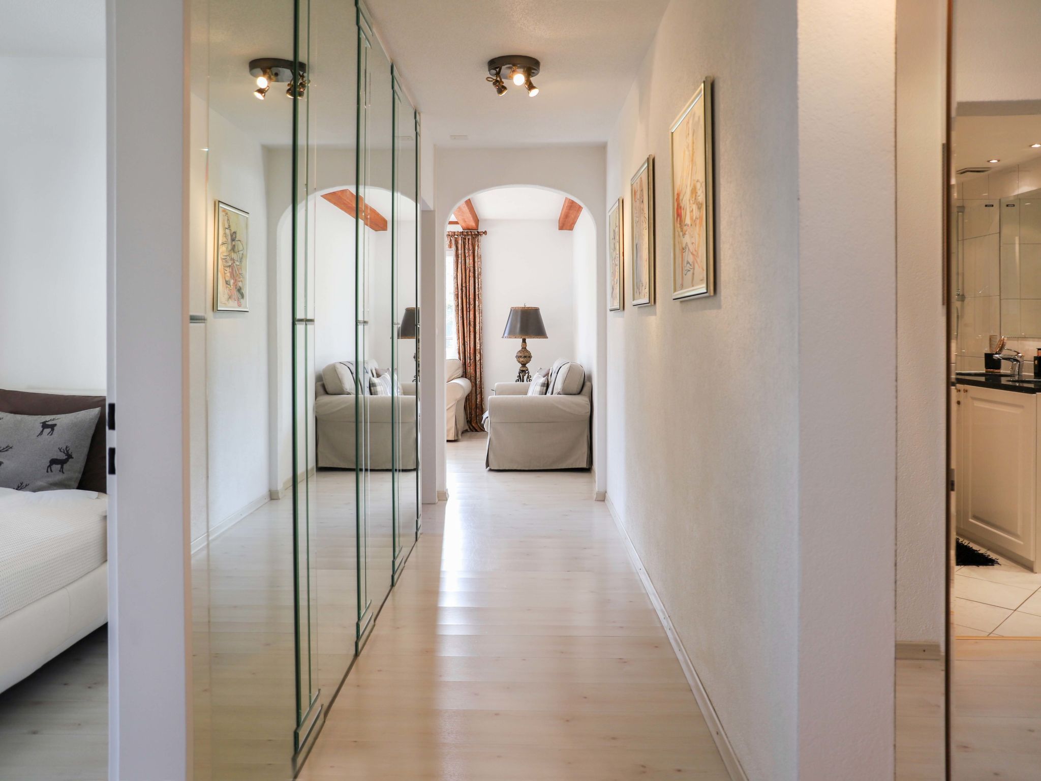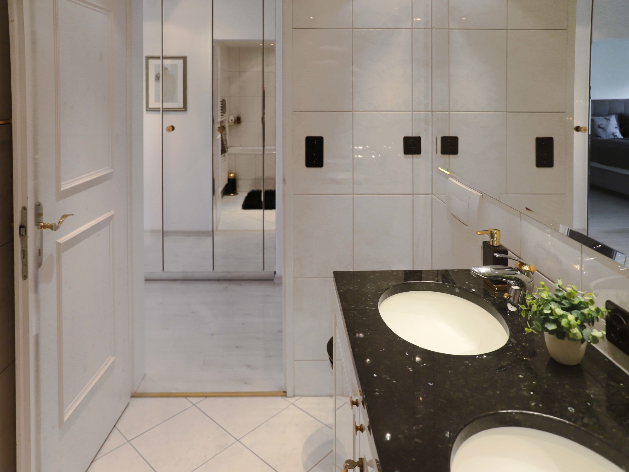 Allod Park Haus C 401, 3-Zimmer-Wohnung 80 m2 im 4. Stock, Ostlage. Sehr schön und geschmackvoll eingerichtet: Wohn-/Esszimmer mit Esstisch, Kabel-TV und Flachbildschirm. Ausgang zum Balkon, Richtung Osten. 1 Zimmer mit 1 Doppelbett (2 x 90 cm), Flachbildschirm. 1 Doppelzimmer mit 1 Doppelbett (2 x 90 cm). Küche (Backofen, Geschirrspüler, 4 Glaskeramikplatten, elektrische Kaffeemaschine, Kapseln für die Kaffeemaschine (Nespresso) extra). Bad oder Dusche/WC, Doppelwaschbecken. Parkettboden. Schöne Sicht auf die Berge und Park. Zur Verfügung: Internet (WLAN, gratis). Parkplatz (extra) beim Haus. Bitte beachten: für Kleinkinder nicht geeignet. Nichtraucher-Unterkunft. Apt Mit Rollstuhl max 70cm erreichbar. Badezimmer Türe 75cm. 12382