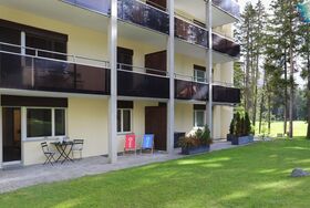 Allod Park Haus C U04, 2-Zimmer-Wohnung 55 m2, im Erdgeschoss, Südlage. Offenes Wohn-/Esszimmer mit 1 Doppeldiwanbett, Kabel-TV, Flachbildschirm und Radio. Ausgang zum Garten. 1 Zimmer mit 1 Doppelbett (2 x 90 cm). Offene Küche (Backofen, Geschirrspüler, 4 Glaskeramikplatten, Wasserkocher, elektrische Kaffeemaschine, Kapseln für die Kaffeemaschine (Nespresso) extra). Bad/WC, Doppelwaschbecken. Grosser Gartensitzplatz, Südlage. Schöne Sicht auf Park. Zur Verfügung: Internet (WLAN, gratis). Bitte beachten: Nichtraucher-Unterkunft. Maximal 1 Haustier/Hund erlaubt. Apt Mit Rollstuhl max 70cm erreichbar. Badezimmer Türe 75cm. 11607