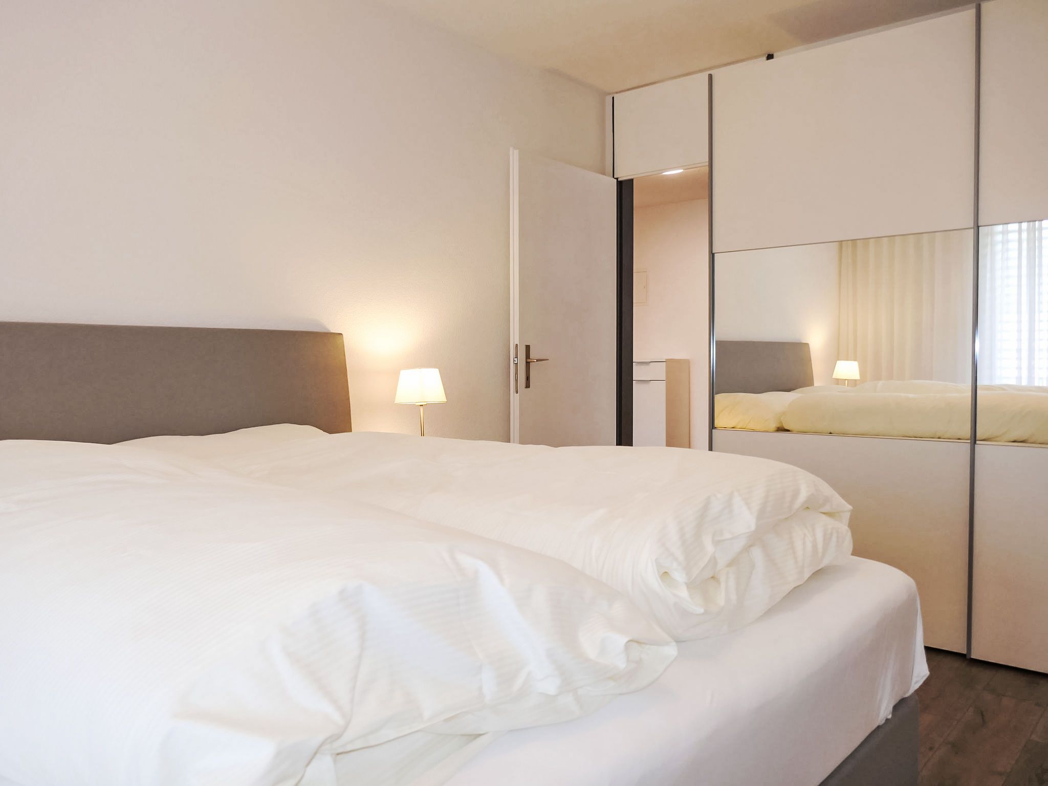 Allod Park Haus C 404, 2-Zimmer-Wohnung 55 m2 im 4. Stock, Südlage. Hell, vollständig renoviert im Jahre 2018, sehr modern und geschmackvoll eingerichtet: Wohn-/Esszimmer mit 1 Doppeldiwanbett (1 x 160 cm), Kabel-TV und Flachbildschirm. Ausgang zur Terrasse. 1 Zimmer, Richtung Süden mit 1 Doppelbett (2 x 90 cm). Ausgang zum Balkon, Richtung Süden. Offene Küche (Backofen, Geschirrspüler, 4 Glaskeramikplatten, elektrische Kaffeemaschine, Kapseln für die Kaffeemaschine (Nespresso) extra). Dusche/WC. Parkettboden. Balkon, Südlage. Herrliche Panoramasicht auf die Berge und die Stadt. Zur Verfügung: Internet (WLAN, gratis). Parkplatz (extra) beim Haus. Bitte beachten: Nichtraucher-Unterkunft. Apt Mit Rollstuhl max 70cm erreichbar. Badezimmer Türe 75cm. 41221
