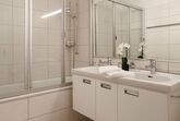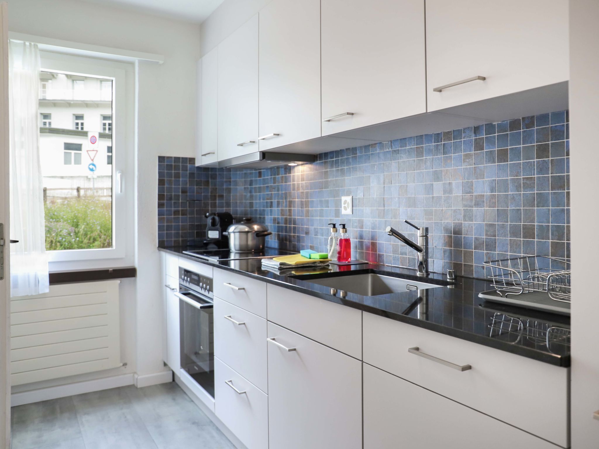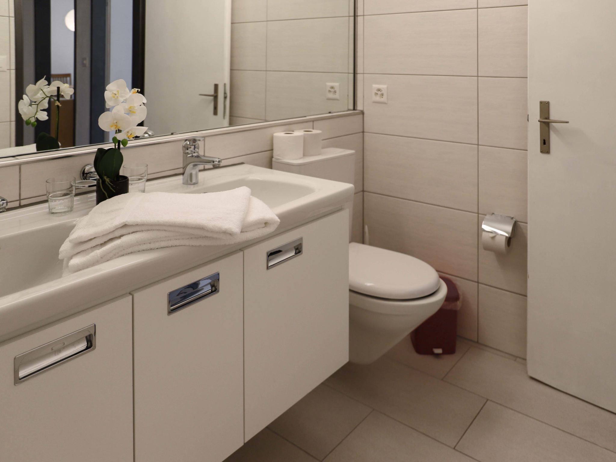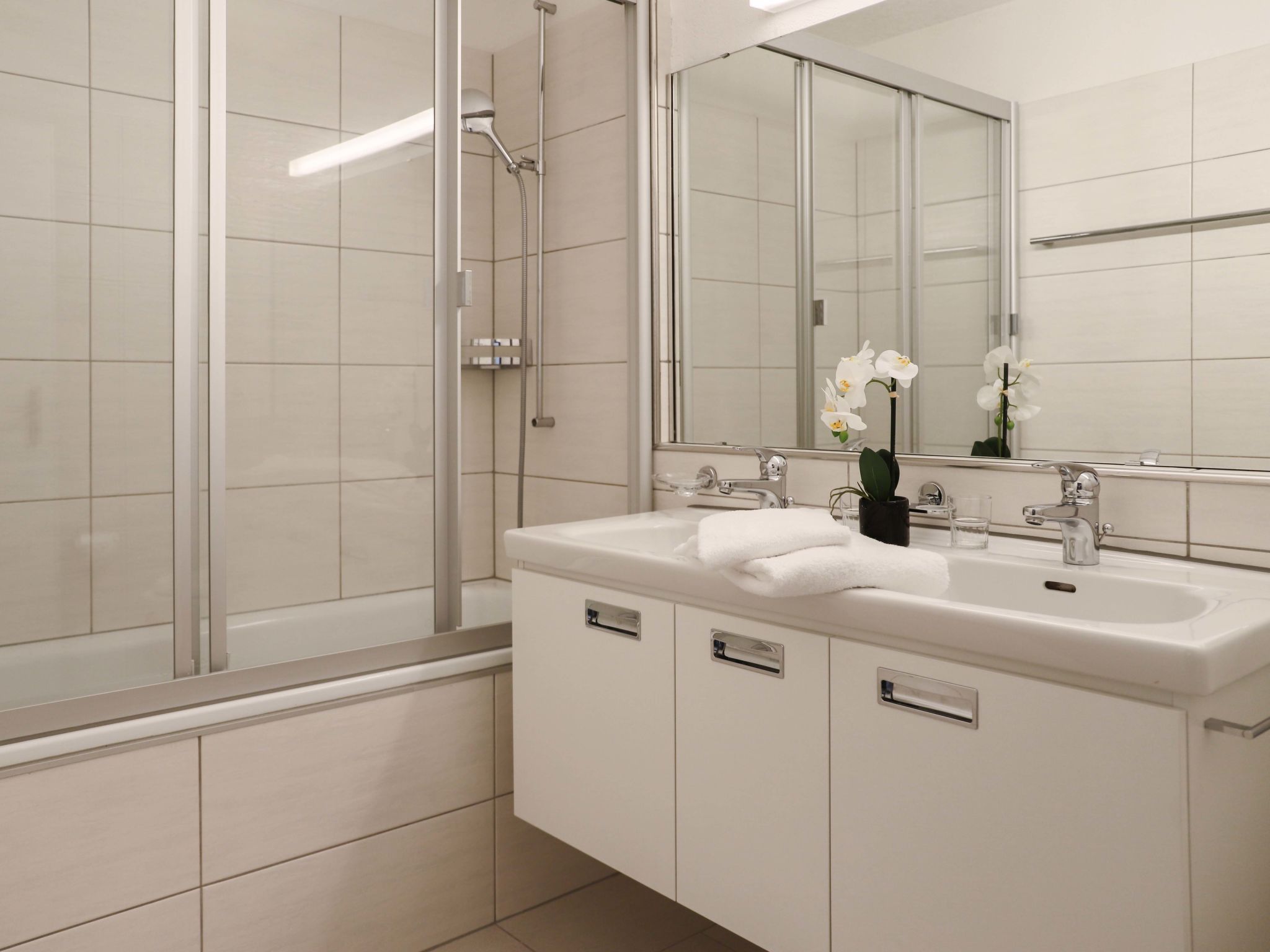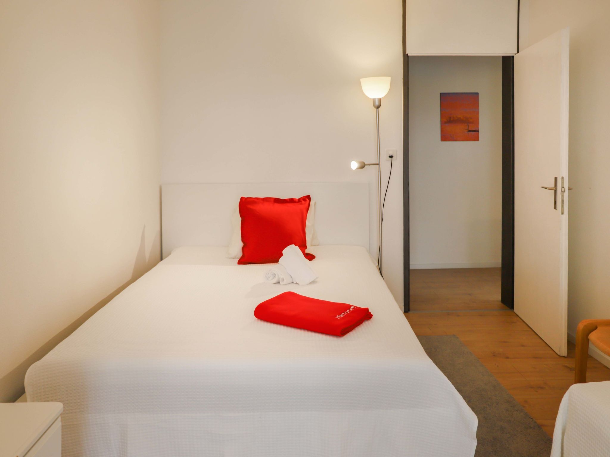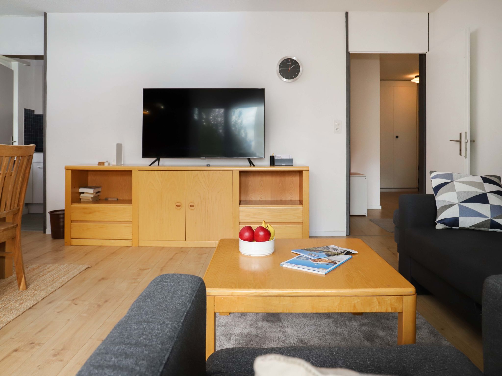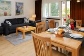 Allod Park Haus C 205, 3-Zimmer-Wohnung 80 m2 im 2. Stock, Südwestlage. Geräumig und hell, renoviert im Jahre 2020, schön und gemütlich eingerichtet: Wohn-/Esszimmer mit 1 Diwanbett und Kabel-TV. 1 Zimmer mit 1 franz. Bett (1 x 180 cm, Länge 200 cm). Ausgang zum Balkon, Richtung Süden. 1 Zimmer mit 1 Bett (80 cm, Länge 200 cm), 1 franz. Bett (1 x 140 cm, Länge 200 cm). Ausgang zum Balkon, Richtung Westen. Küche (Backofen, Geschirrspüler, 4 Glaskeramikplatten, Wasserkocher, elektrische Kaffeemaschine, Kapseln für die Kaffeemaschine (Nespresso) extra). Bad oder Dusche/WC. Holzdielenboden. Grosser Balkon, Südlage, kleiner Balkon, Westlage. Schöne Sicht auf die Berge, das Städtchen und Park. Zur Verfügung: Internet (WLAN, gratis). Parkplatz (extra) beim Haus. Bitte beachten: Nichtraucher-Unterkunft. Maximal 1 Haustier/Hund erlaubt. Apt Mit Rollstuhl max 70cm erreichbar. Badezimmer Türe 75cm. 14072