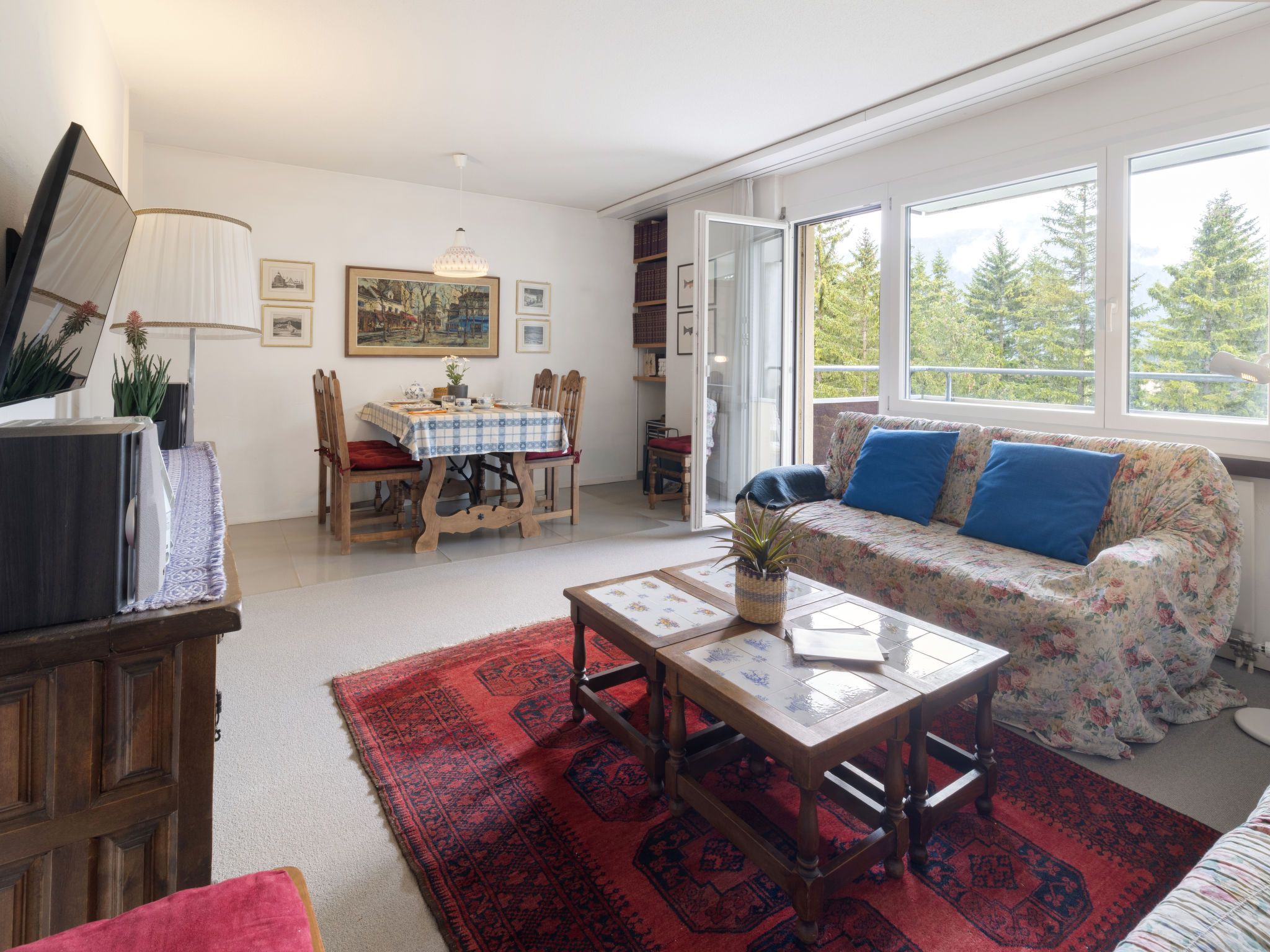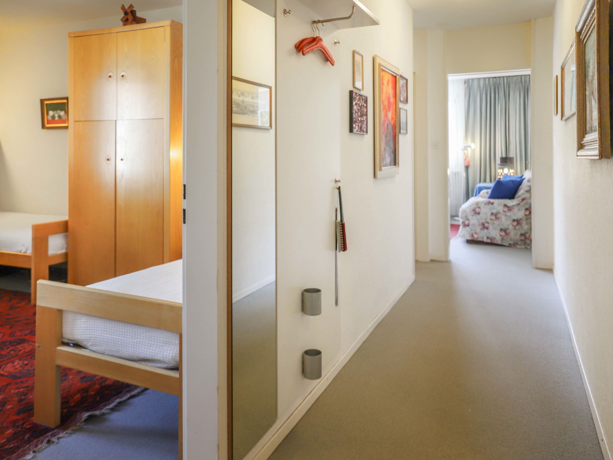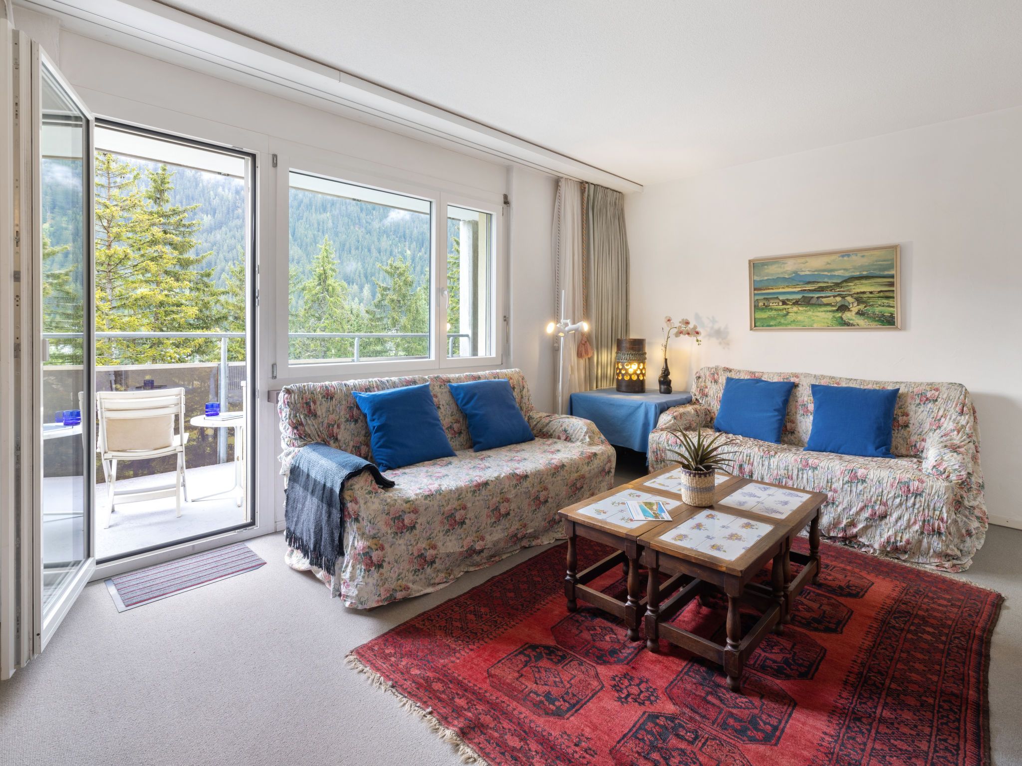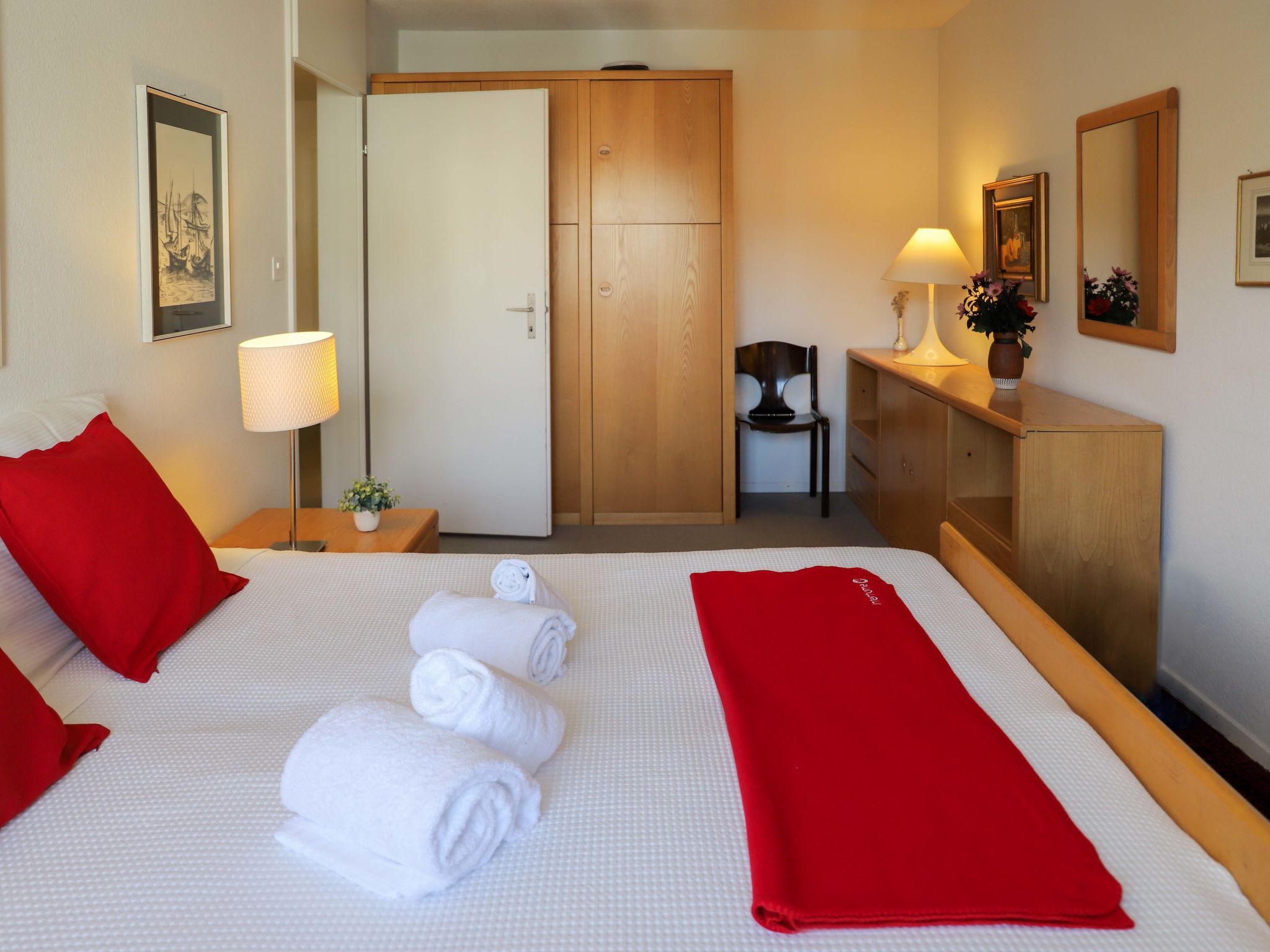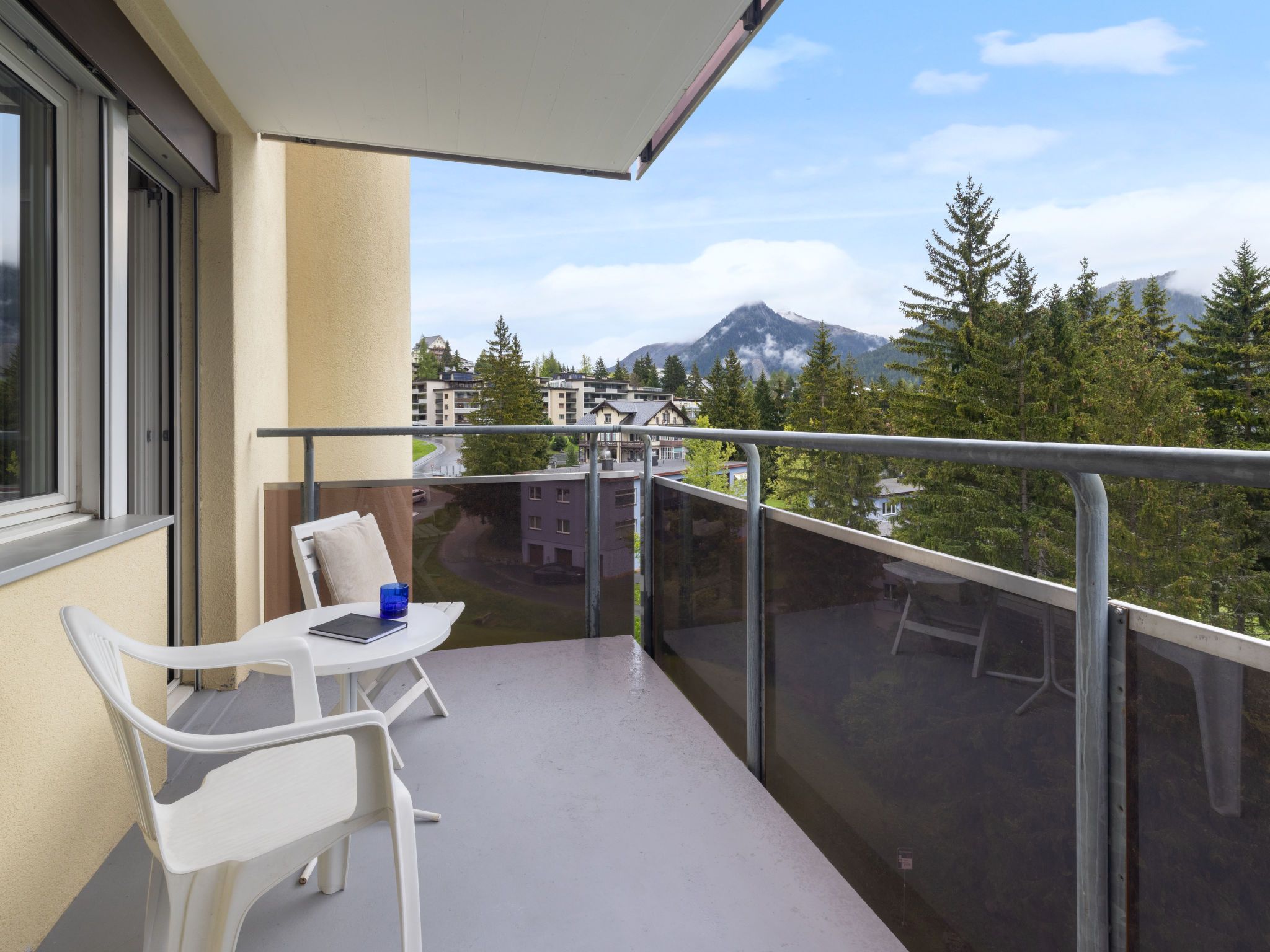 Allod Park Haus C 501, 3-Zimmer-Wohnung 79 m2 im 5. Stock, Ostlage. Schön und mit viel Holz eingerichtet: Wohn-/Esszimmer mit Kabel-TV, Flachbildschirm, Radio, CD, Stereoanlage und DVD. Ausgang zum Balkon. 1 Zimmer mit 1 Doppelbett (2 x 90 cm). 1 Zimmer mit 2 Betten (90 cm). Küche (Backofen, Geschirrspüler, 4 Glaskeramikplatten, Mikrowelle, elektrische Kaffeemaschine, Kapseln für die Kaffeemaschine (Nespresso) extra). Bad oder Dusche/WC, Doppelwaschbecken. Balkon, Ostlage. Balkonmöbel. Schöne Sicht auf die Berge, die Ortschaft und Park. Zur Verfügung: Haartrockner. Internet (WLAN, gratis). Parkplatz (extra) beim Haus. Bitte beachten: Nichtraucher-Unterkunft. Maximal 1 Haustier/Hund erlaubt. Apt Mit Rollstuhl max 70cm erreichbar. Badezimmer Türe 75cm. 13148