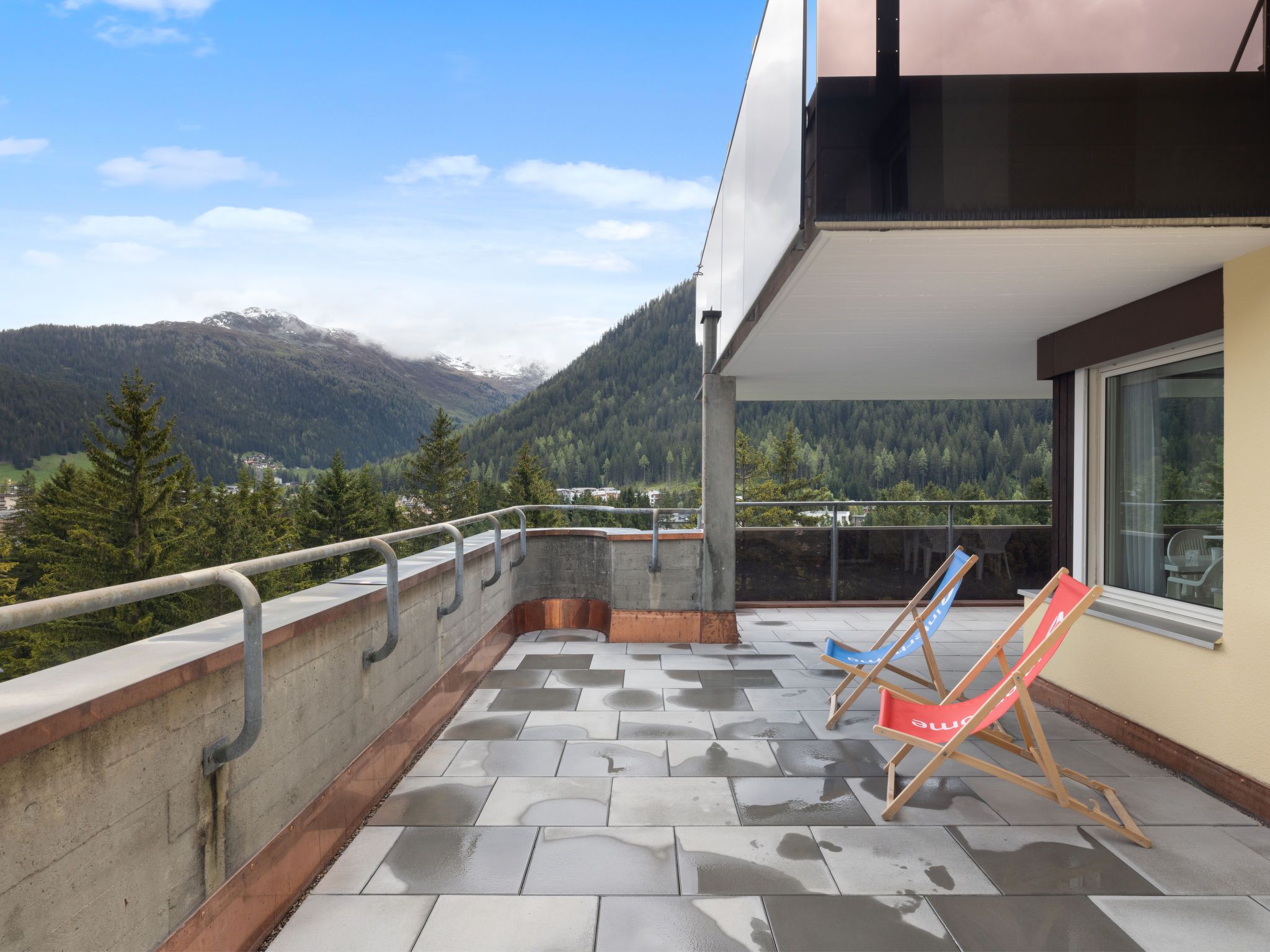Davos-Platz: Komfortables Appartementhaus Allod-Park, 1'560 m.ü.M.. Im Ortszentrum, 700 m vom Zentrum von Davos Platz, zentrale, ruhige Lage. Zur Mitbenutzung: Park. Im Hause: Empfang, Restaurant, Bar, Wireless LAN, Fahrstuhl, Skiraum, Zentralheizung, Waschmaschine (extra), Wäschetrockner (zur Mitbenutzung, extra), Trockenraum, Skischuhtrockner. Wäschewechsel (zusätzlich extra). Handtuchwechsel (zusätzlich extra). Wohnungsreinigung möglich (extra). Zufahrt bis zum Haus. Parkplatz (extra), Gemeinschaftsgarage (extra). Maße: Höhe 200 cm. Supermarkt 800 m, Einkaufszentrum 400 m, Restaurant 10 m, Bäckerei 300 m, Bushaltestelle Kongresszentrum 100 m, Bahnstation Davos-Platz 1.2 km, Park Kurpark 50 m, Freibad, Hallenbad 200 m, Strandbad 3.1 km, Badesee 2.7 km, See Davoser See 2.7 km. Golfplatz (18 Loch) 2 km, Surfschule 3.1 km, Segelschule 3.1 km, Tennis 4 km, Tennishalle 4 km, Minigolf 400 m, Reitstall 5 km, Sportzentrum 200 m, Wanderwege ab Haus, Radweg 400 m, Luftseilbahn 1.5 km, Bergeisenbahn 600 m, Sessellift 1.8 km, Gondelbahn 1.7 km, Skipisten 1.7 km, Skiverleih 1.7 km, Skibushaltestelle 50 m, Skischule 1.5 km, Kinderskischule 1.5 km, Langlaufloipe 1 km, Eisfeld 200 m, Kinderspielplatz 50 m. Nahe gelegene Sehenswürdigkeiten: Kirchner Museum 50 m. Bekannte Skigebiete sind gut erreichbar: Parsenn 1.5 km, Jakobshorn 1.2 km, Rinerhorn 8 km. Bekannte Seen in der Umgebung sind gut erreichbar: Davosersee 2.7 km. Bitte beachten: Be- und Entladen am Ferienhaus möglich. Die Mietobjekte können sich in Lage, Größe und Beschaffenheit des Grundstücks unterscheiden. Die Mietobjekte können sich in Wohnfläche, Raumaufteilung, Ausstattung und Einrichtung unterscheiden. Rodelbahn Schatzalp-Davos. Garagenplätze auf Anfrage: CHF 10.00 pro Tag. WLAN an oder in der Nähe der Rezeption. Besonderheiten: wöchentlicher Raclette- und Fondue-Abend. Mahlzeiten können im Restaurant bestellt werden. Reservierung von Eintrittskarten für Veranstaltungen.