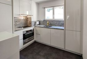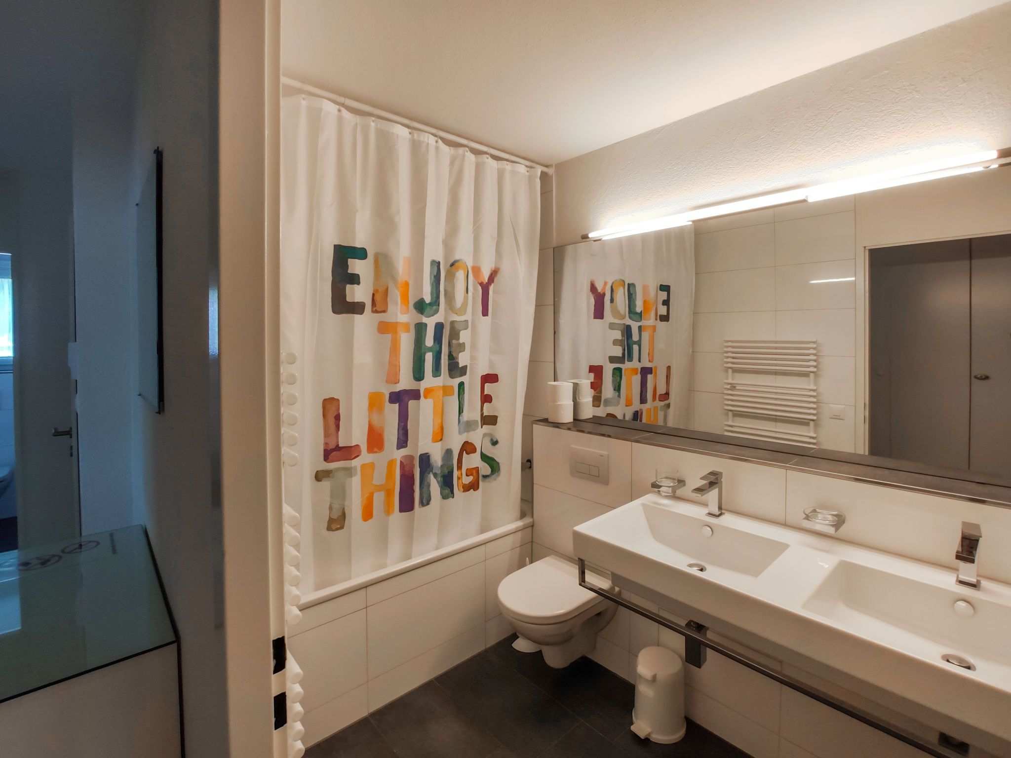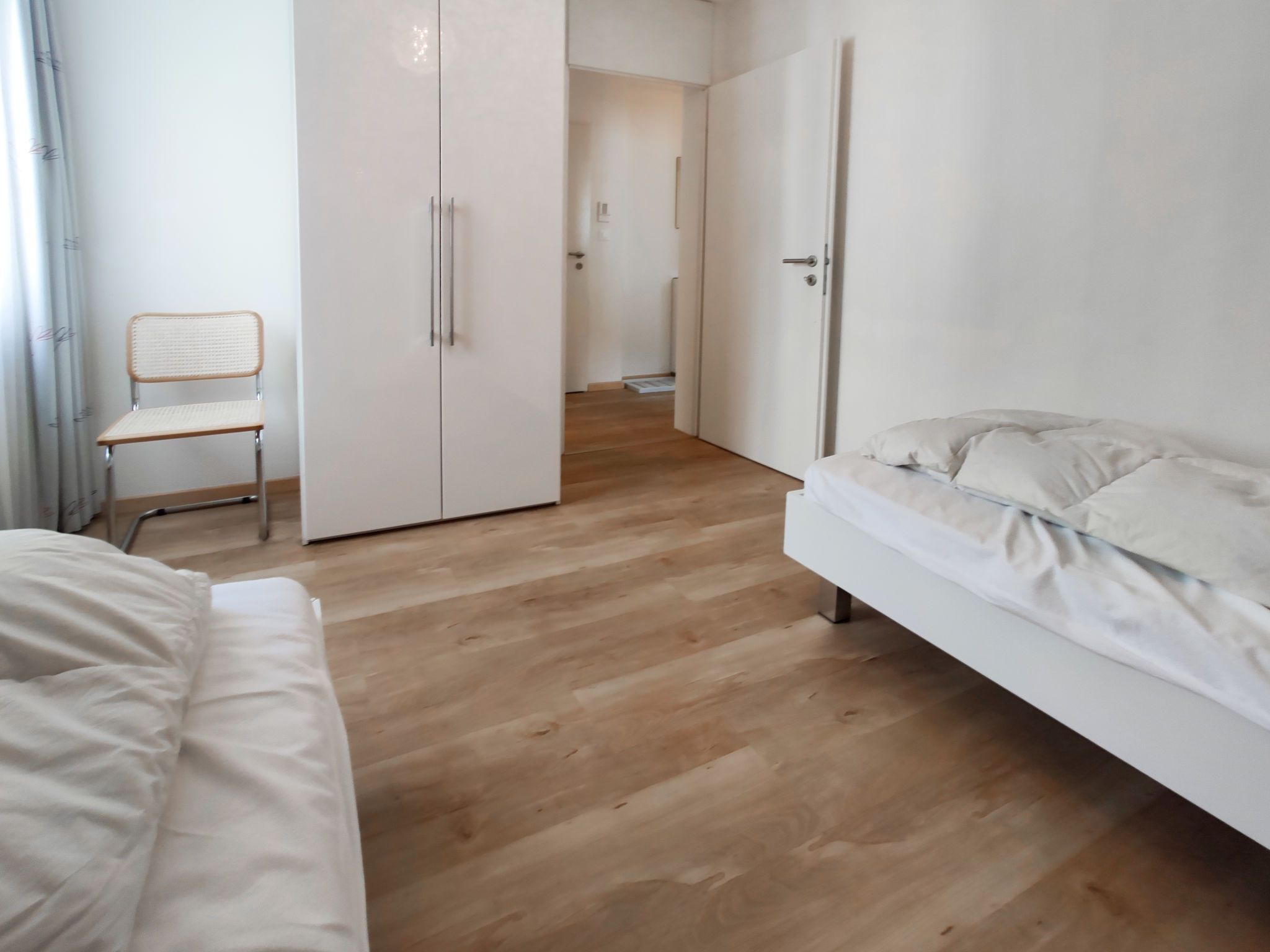 Allod Park Haus B 403, 3-Zimmer-Wohnung 80 m2 im 4. Stock, Südwestlage. Renoviert, sehr schön und geschmackvoll eingerichtet: Wohn-/Esszimmer mit Kabel-TV (Flachbildschirm). Ausgang zum Balkon. 1 Zimmer mit 2 Betten (90 cm), sep. WC. 1 grosses Zimmer mit 1 Doppelbett (180 cm). Küche (Backofen, Geschirrspüler, 4 Induktionskochplatten, elektrische Kaffeemaschine, Kapseln für die Kaffeemaschine (Delizio (Migros)) extra, Racletteofen, Fondue Set (Chinoise, Käse)). Sep. WC, Bad/Dusche/WC, Doppelwaschbecken. Grosser Balkon, Südwestlage. Balkonmöbel. Sehr schöne Sicht auf den Garten und Park. Zur Verfügung: Internet (WLAN, gratis). Garage (extra). Bitte beachten: geeignet für Familien. Nichtraucher-Unterkunft. 11836