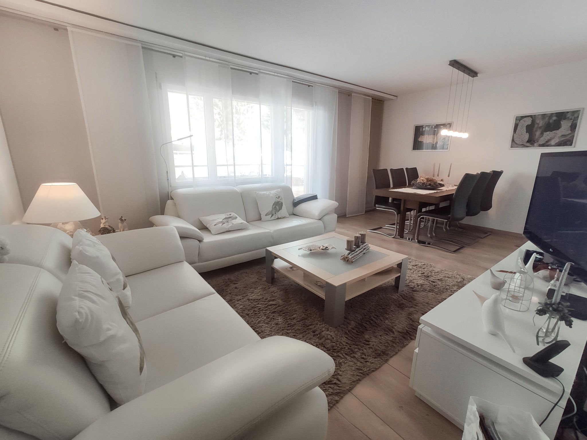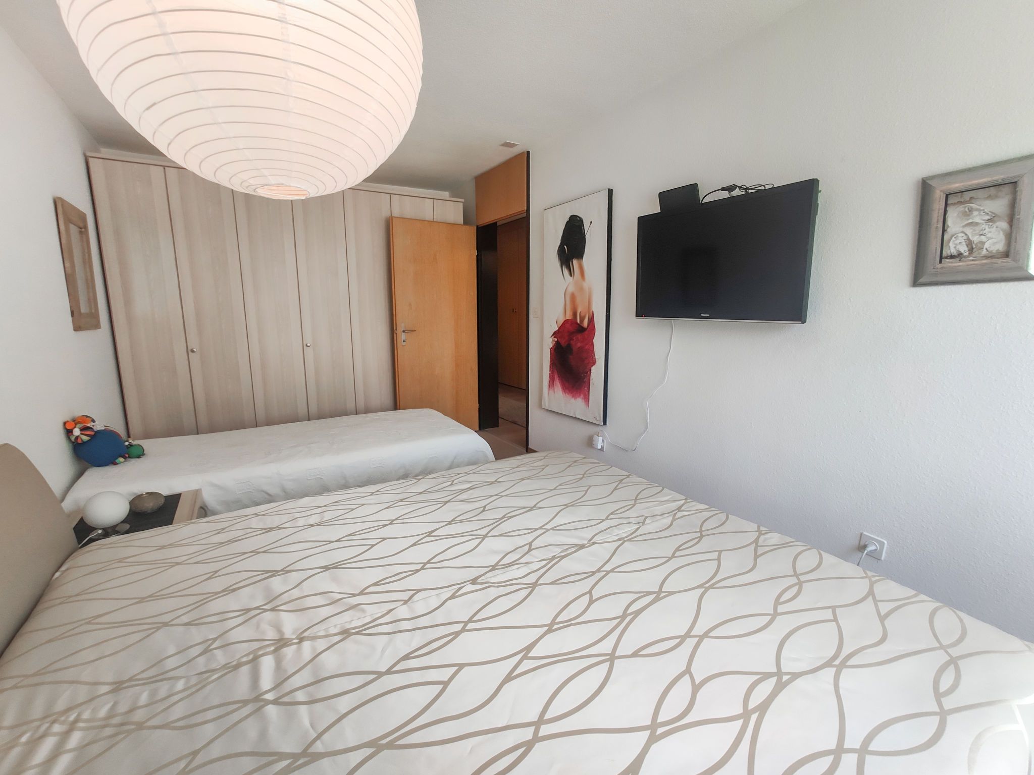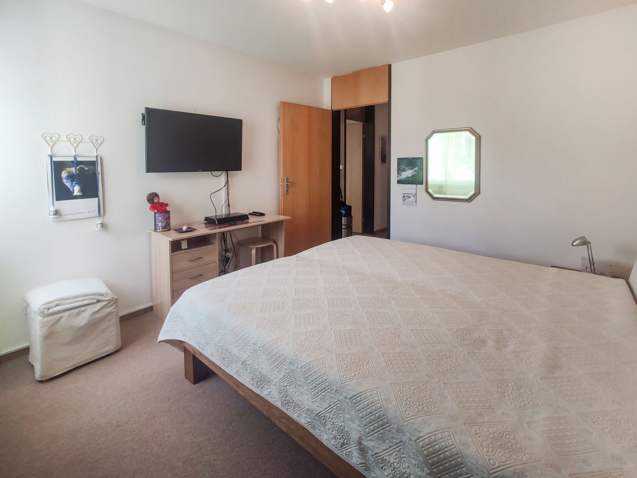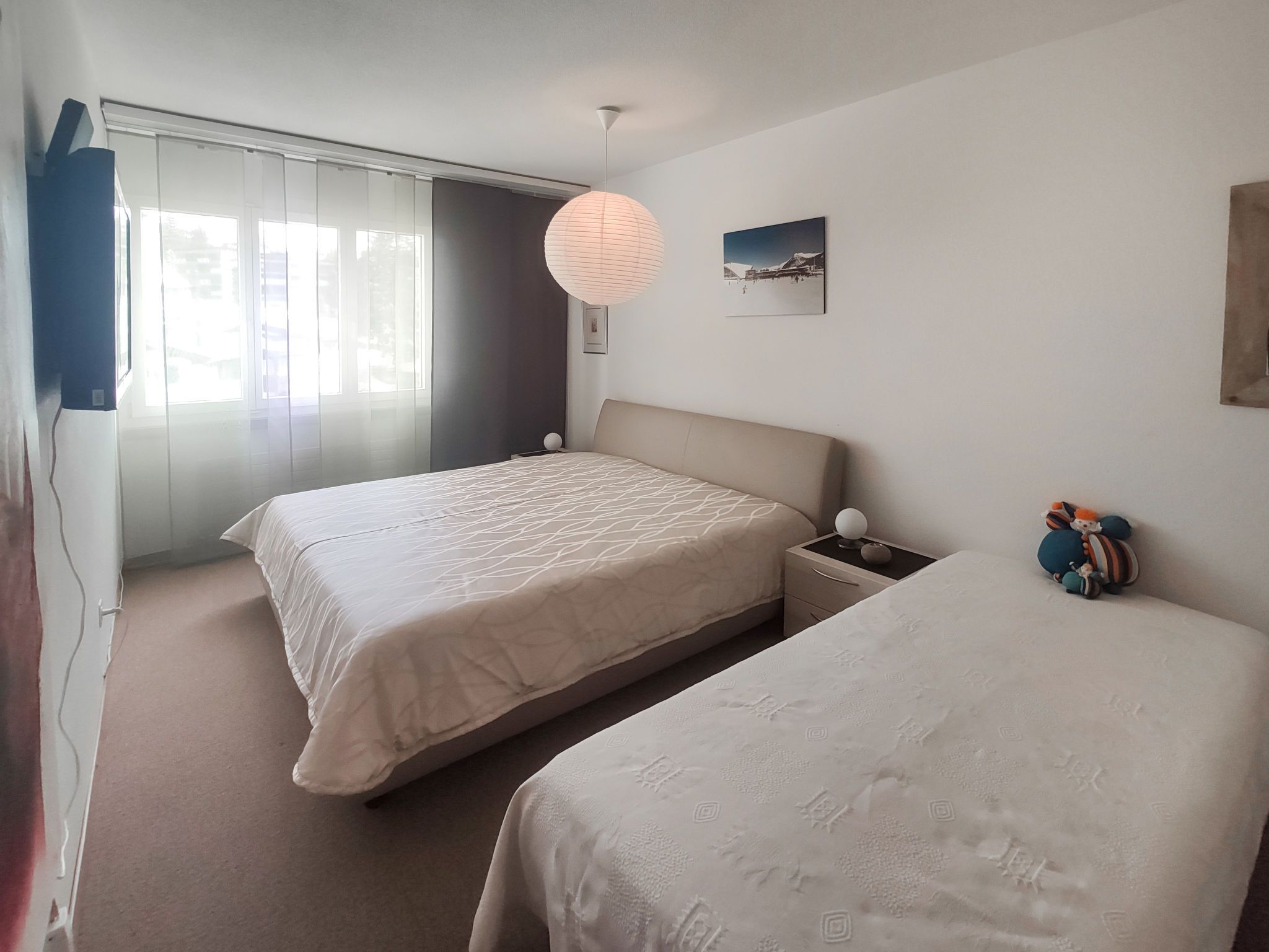 Allod Park Haus C 207, 3-Zimmer-Wohnung im 2. Stock, Nordwestlage. Geräumig und hell, renoviert, modern und geschmackvoll eingerichtet: Wohn-/Esszimmer mit Kabel-TV und Flachbildschirm. Ausgang zum Balkon, Richtung Westen. Gross, 1 Doppelzimmer mit 1 franz. Bett (2 x 90 cm, Länge 200 cm), Kabel-TV und Flachbildschirm. 1 Kinderzimmer mit 1 Diwanbett (90 cm, Länge 200 cm), 1 Doppelbett (2 x 90 cm, Länge 200 cm), Kabel-TV und Flachbildschirm. Grosse Küche (Backofen, Geschirrspüler, 4 Glaskeramikplatten, Wasserkocher, Mikrowelle, elektrische Kaffeemaschine, Kapseln für die Kaffeemaschine (Nespresso) extra, Fondue Set (Käse)). Dusche/WC, Doppelwaschbecken. Holzdielenboden. Balkonmöbel. Seitliche Sicht auf die Berge und die Stadt. Zur Verfügung: Internet (WLAN, gratis). Parkplatz (extra) beim Haus. Bitte beachten: Wohnung auf Strassenseite. Nichtraucher-Unterkunft. 14944