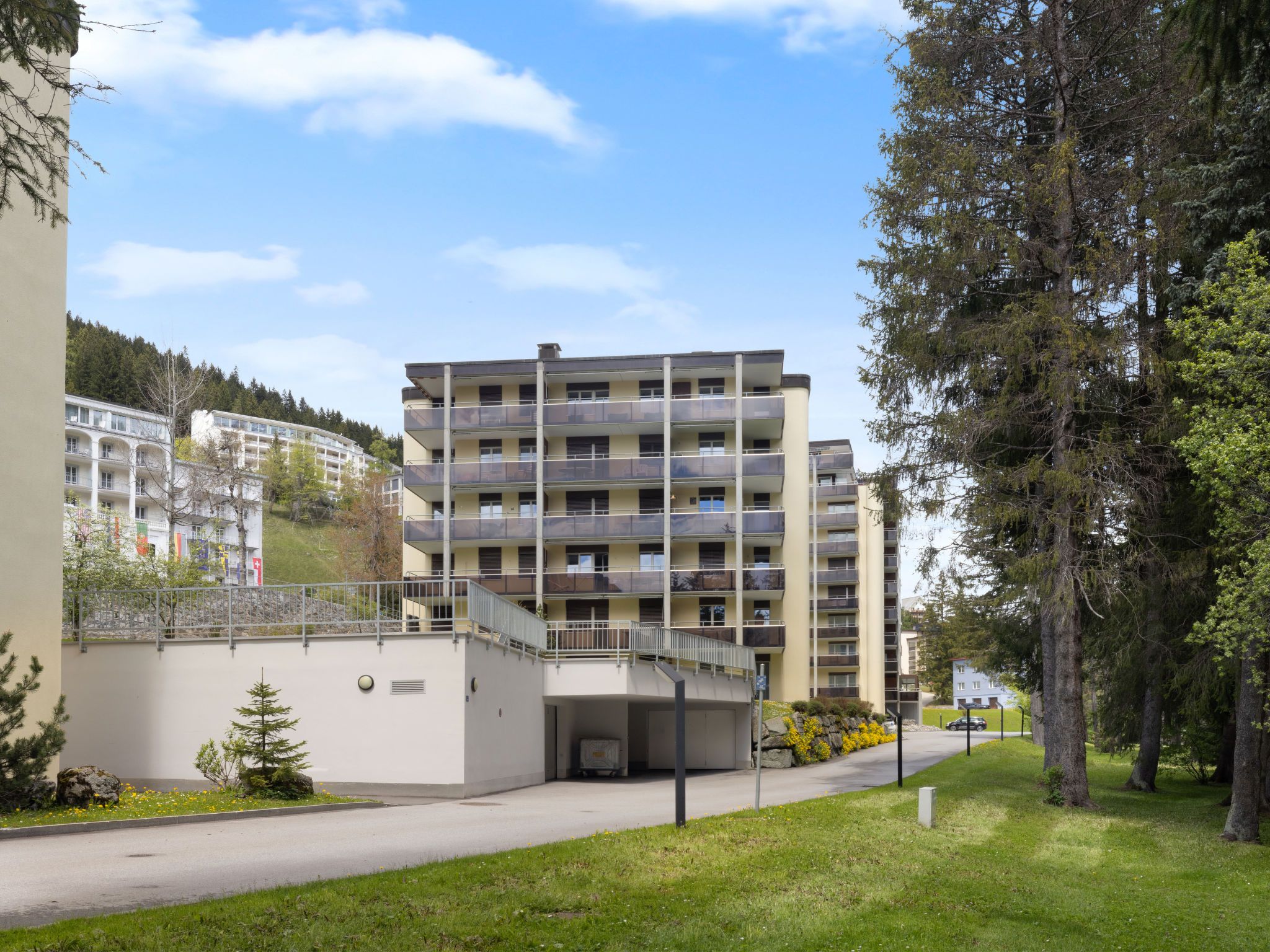 Davos-Platz: Komfortables Appartementhaus Allod-Park, 1'560 m.ü.M.. Im Ortszentrum, 700 m vom Zentrum von Davos Platz, zentrale, ruhige Lage. Zur Mitbenutzung: Park. Im Hause: Empfang, Restaurant, Bar, Wireless LAN, Fahrstuhl, Skiraum, Zentralheizung, Waschmaschine (extra), Wäschetrockner (zur Mitbenutzung, extra), Trockenraum, Skischuhtrockner. Wäschewechsel (zusätzlich extra). Handtuchwechsel (zusätzlich extra). Wohnungsreinigung möglich (extra). Zufahrt bis zum Haus. Parkplatz (extra), Gemeinschaftsgarage (extra). Maße: Höhe 200 cm. Supermarkt 800 m, Einkaufszentrum 400 m, Restaurant 10 m, Bäckerei 300 m, Bushaltestelle Kongresszentrum 100 m, Bahnstation Davos-Platz 1.2 km, Park Kurpark 50 m, Freibad, Hallenbad 200 m, Strandbad 3.1 km, Badesee 2.7 km, See Davoser See 2.7 km. Golfplatz (18 Loch) 2 km, Surfschule 3.1 km, Segelschule 3.1 km, Tennis 4 km, Tennishalle 4 km, Minigolf 400 m, Reitstall 5 km, Sportzentrum 200 m, Wanderwege ab Haus, Radweg 400 m, Luftseilbahn 1.5 km, Bergeisenbahn 600 m, Sessellift 1.8 km, Gondelbahn 1.7 km, Skipisten 1.7 km, Skiverleih 1.7 km, Skibushaltestelle 50 m, Skischule 1.5 km, Kinderskischule 1.5 km, Langlaufloipe 1 km, Eisfeld 200 m, Kinderspielplatz 50 m. Nahe gelegene Sehenswürdigkeiten: Kirchner Museum 50 m. Bekannte Skigebiete sind gut erreichbar: Parsenn 1.5 km, Jakobshorn 1.2 km, Rinerhorn 8 km. Bekannte Seen in der Umgebung sind gut erreichbar: Davosersee 2.7 km. Bitte beachten: Be- und Entladen am Ferienhaus möglich. Die Mietobjekte können sich in Lage, Größe und Beschaffenheit des Grundstücks unterscheiden. Die Mietobjekte können sich in Wohnfläche, Raumaufteilung, Ausstattung und Einrichtung unterscheiden. Rodelbahn Schatzalp-Davos. Garagenplätze auf Anfrage: CHF 10.00 pro Tag. WLAN an oder in der Nähe der Rezeption. Besonderheiten: wöchentlicher Raclette- und Fondue-Abend. Mahlzeiten können im Restaurant bestellt werden. Reservierung von Eintrittskarten für Veranstaltungen.