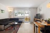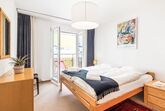 Allod Park Haus C 306, 2-Zimmer-Wohnung 55 m2 im 3. Stock, Westlage. Hell, zweckmässig eingerichtet: Wohn-/Esszimmer mit 1 Diwanbett und Kabel-TV (Flachbildschirm), Radio. Ausgang zum Balkon, Richtung Westen. 1 Zimmer mit 1 Doppelbett (2 x 90 cm). Offene Küche (4 Kochplatten, Backofen, Geschirrspüler, elektrische Kaffeemaschine, Kapseln für die Kaffeemaschine (Nespresso) extra). Bad oder Dusche/WC, Doppelwaschbecken. Teppichboden. Sicht auf die Stadt. Zur Verfügung: Internet (WLAN, gratis). Parkplatz (extra) beim Haus. Bitte beachten: Wohnung auf Strassenseite. Nichtraucher-Unterkunft. Maximal 1 Haustier/Hund erlaubt. Apt Mit Rollstuhl max 70cm erreichbar. Badezimmer Türe 75cm. 13533